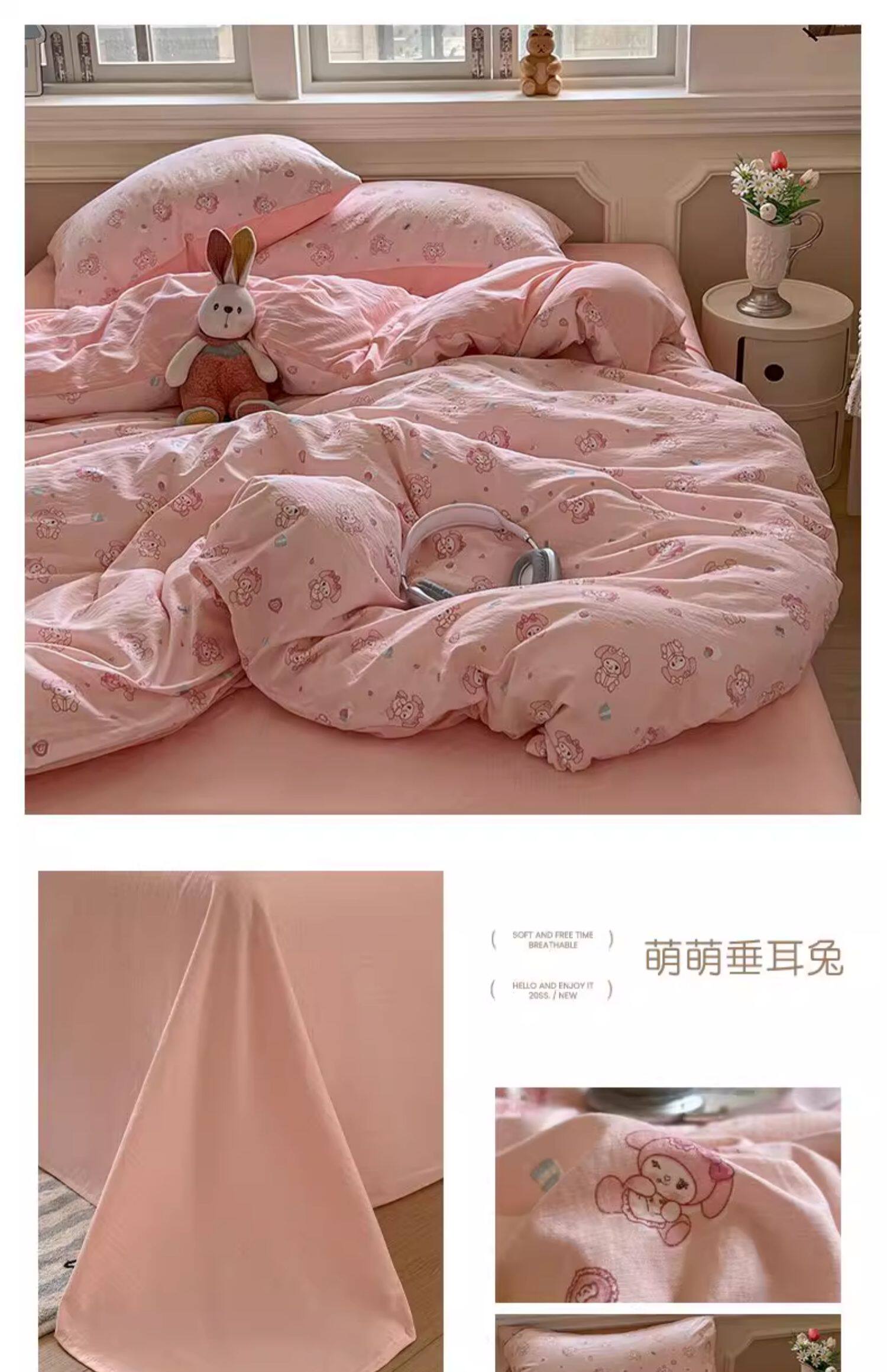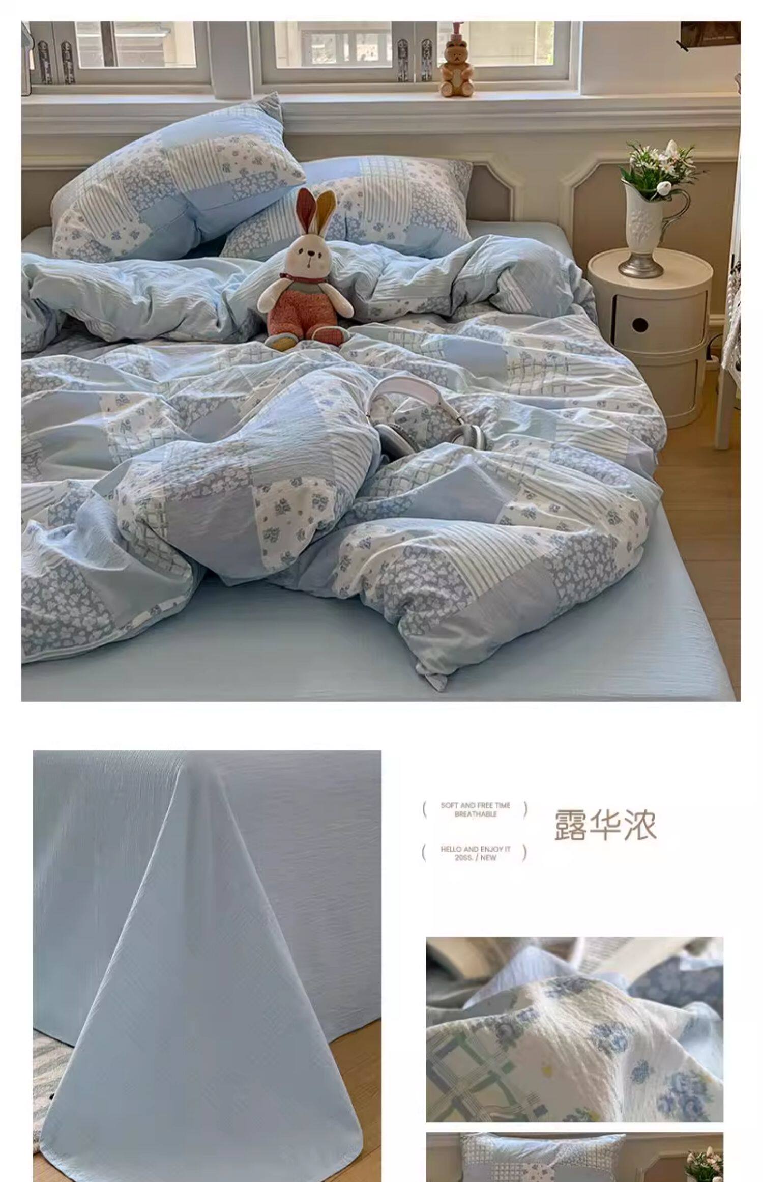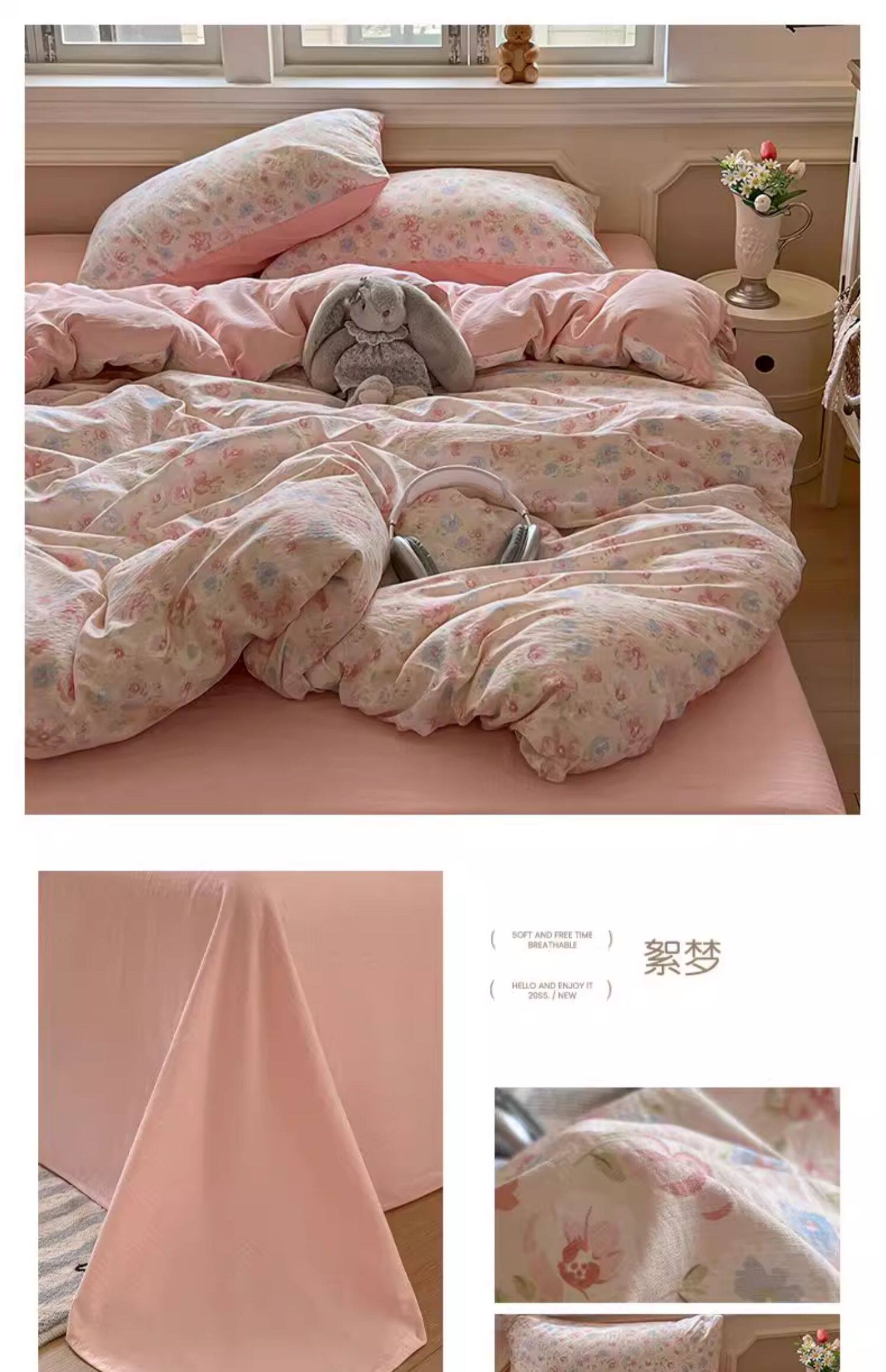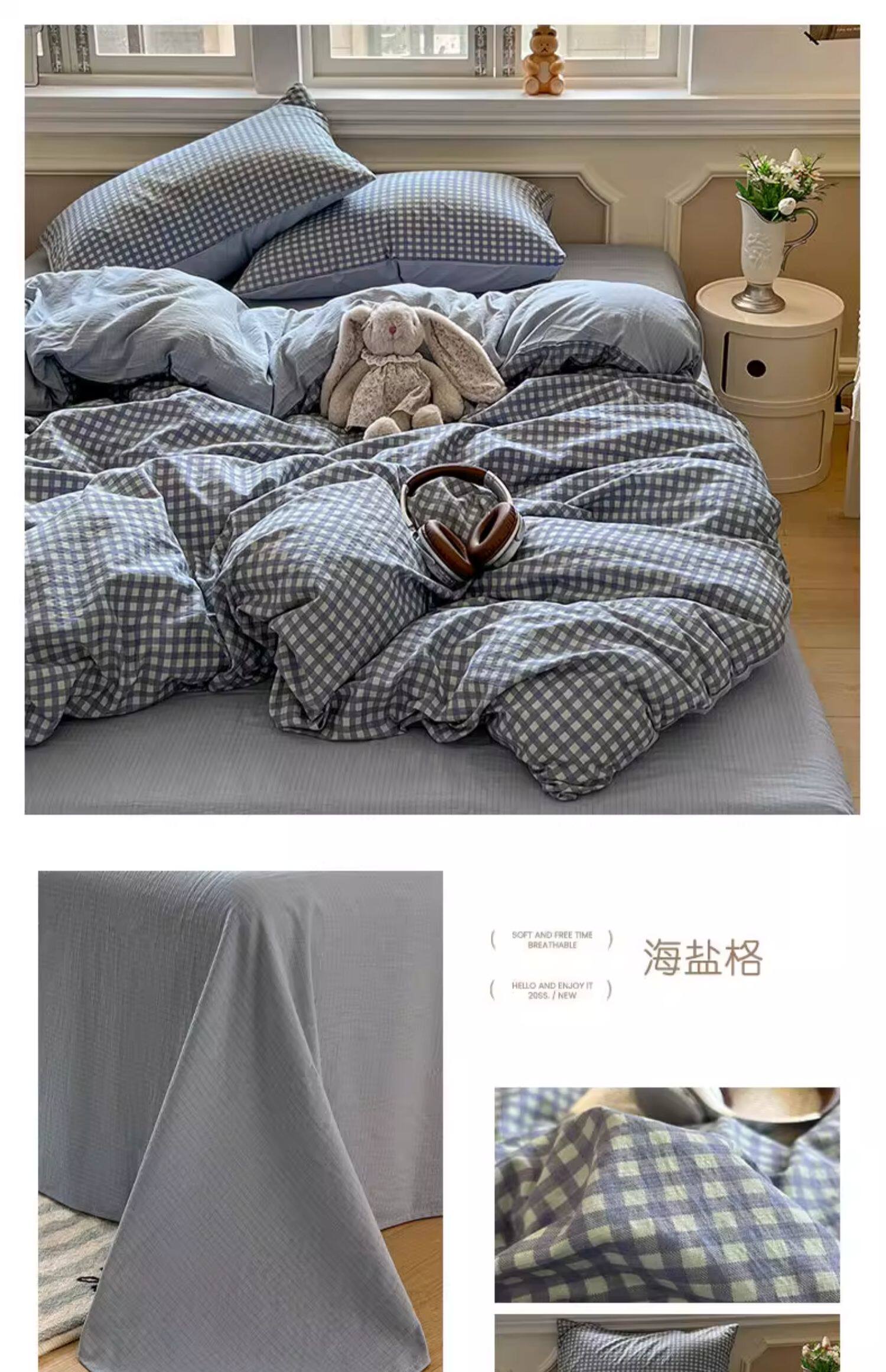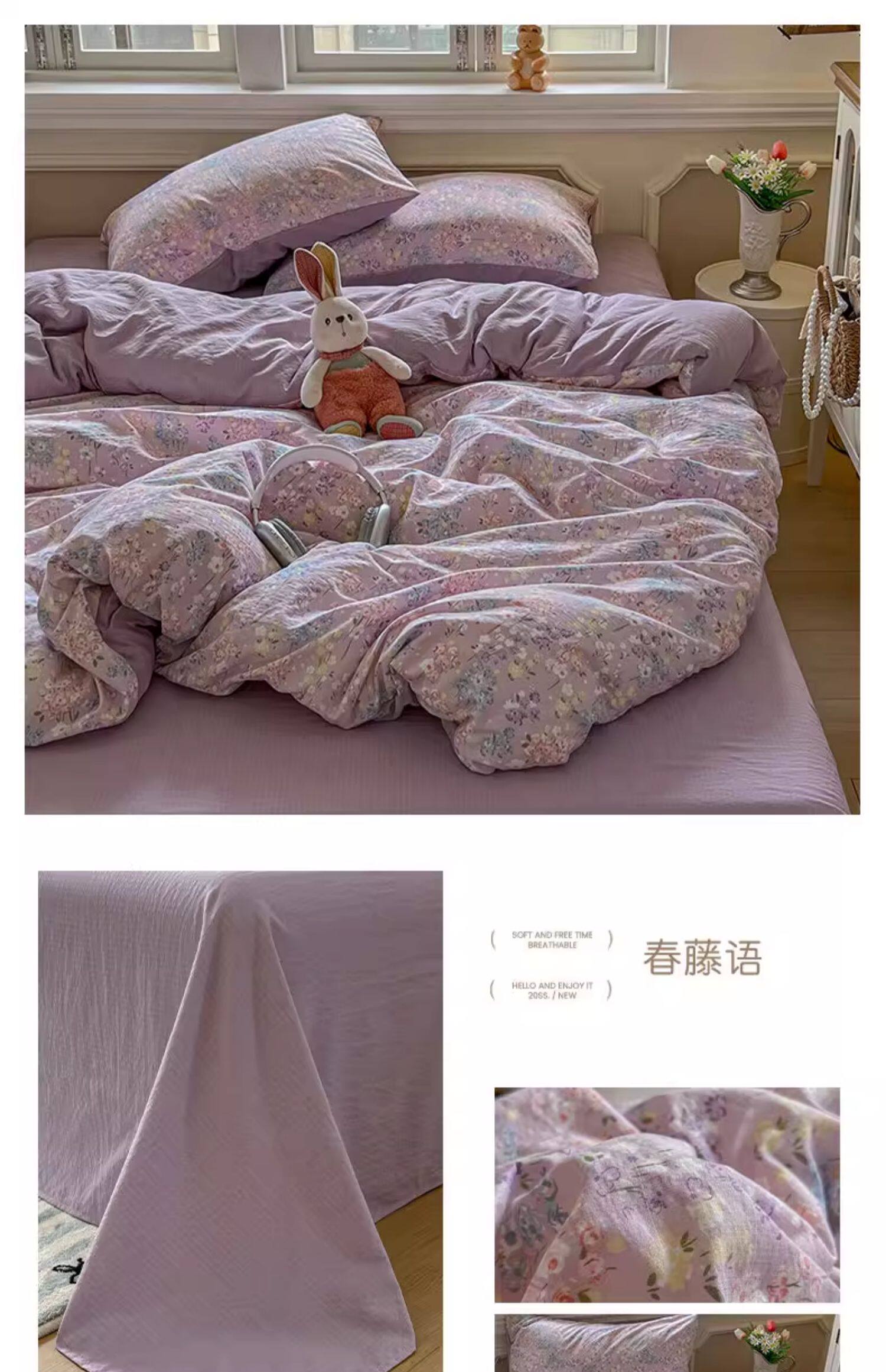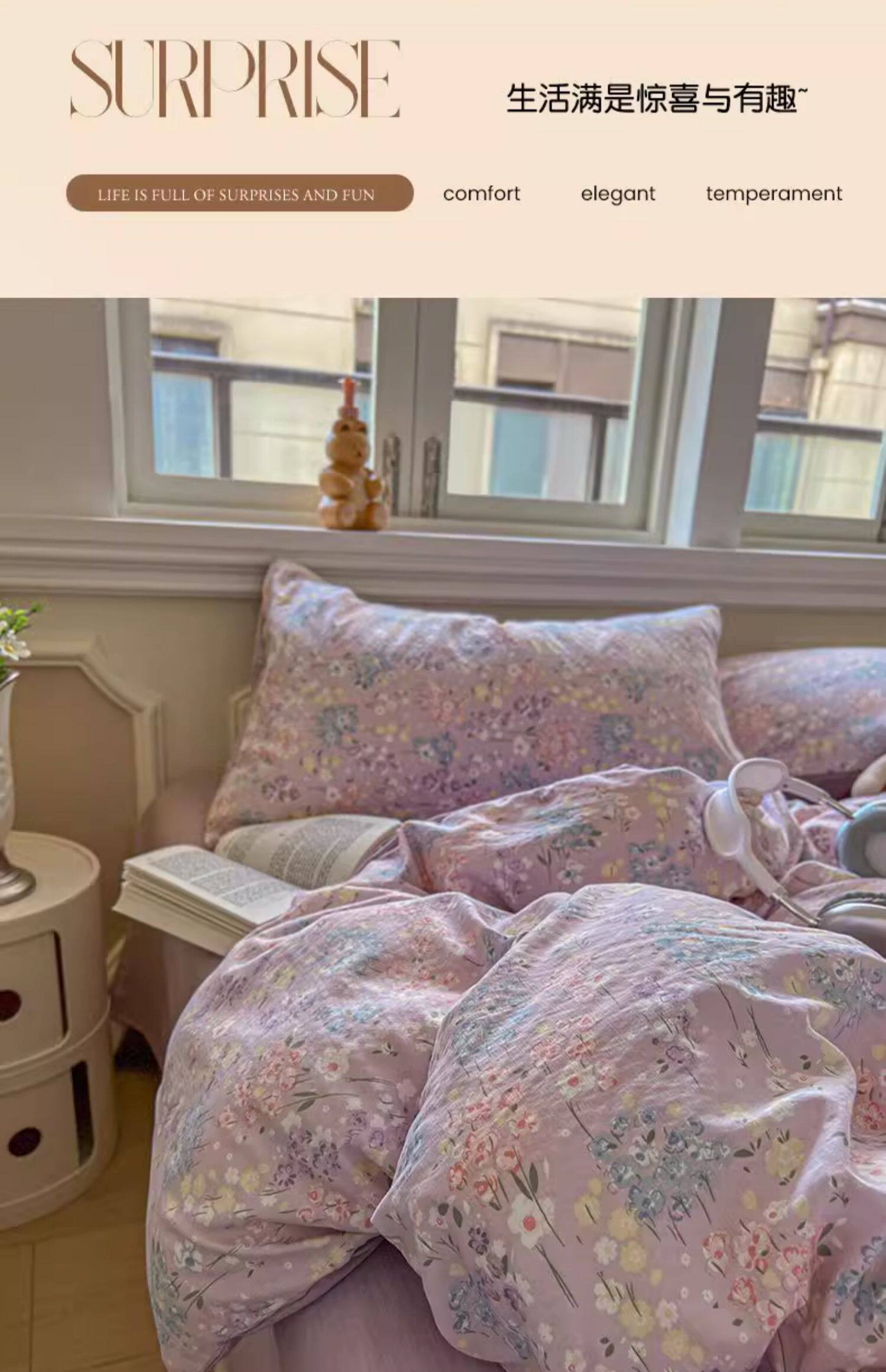 雲感褶皺風雙層紗四件套軟糯床單床包款小清新卡通學生宿捨三件套