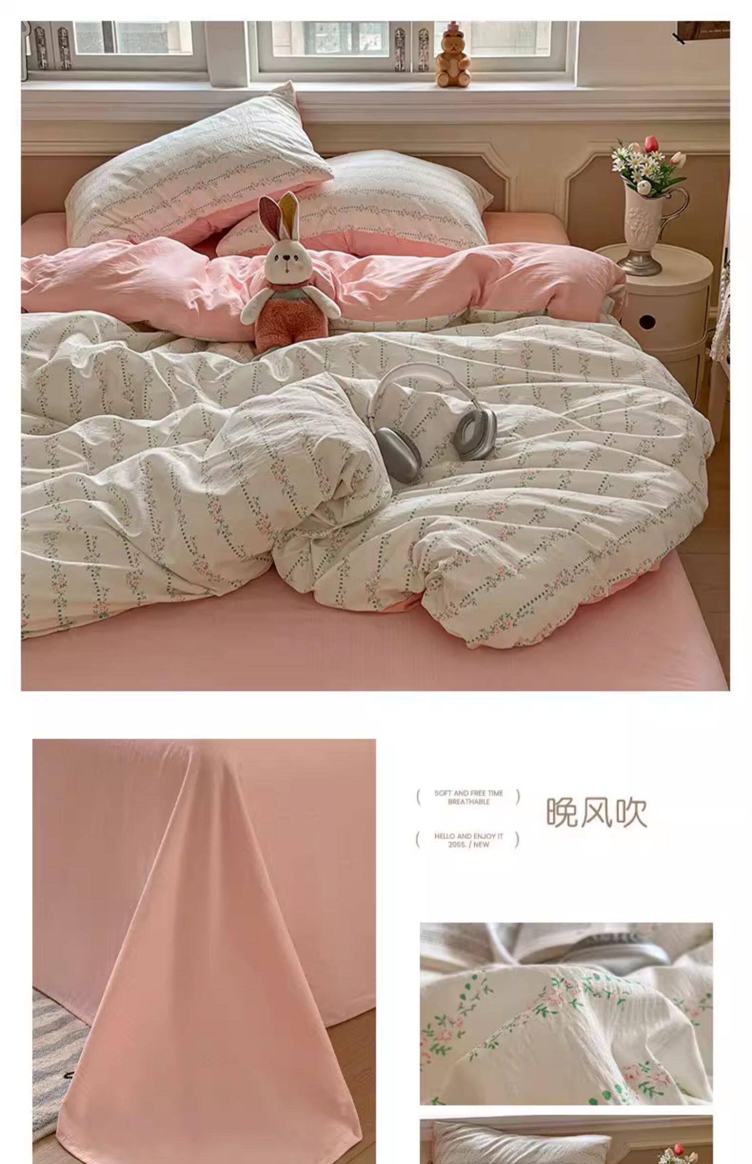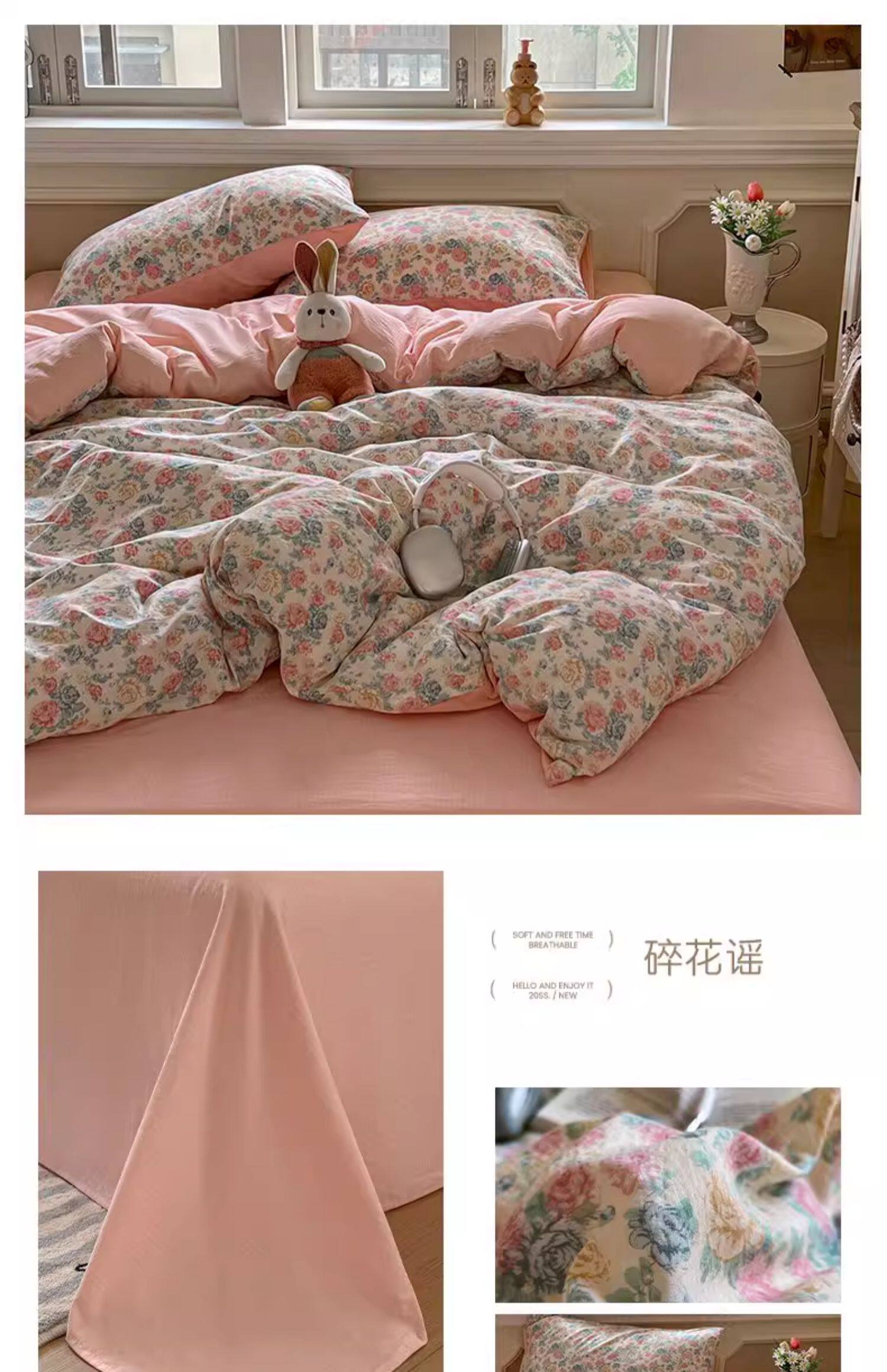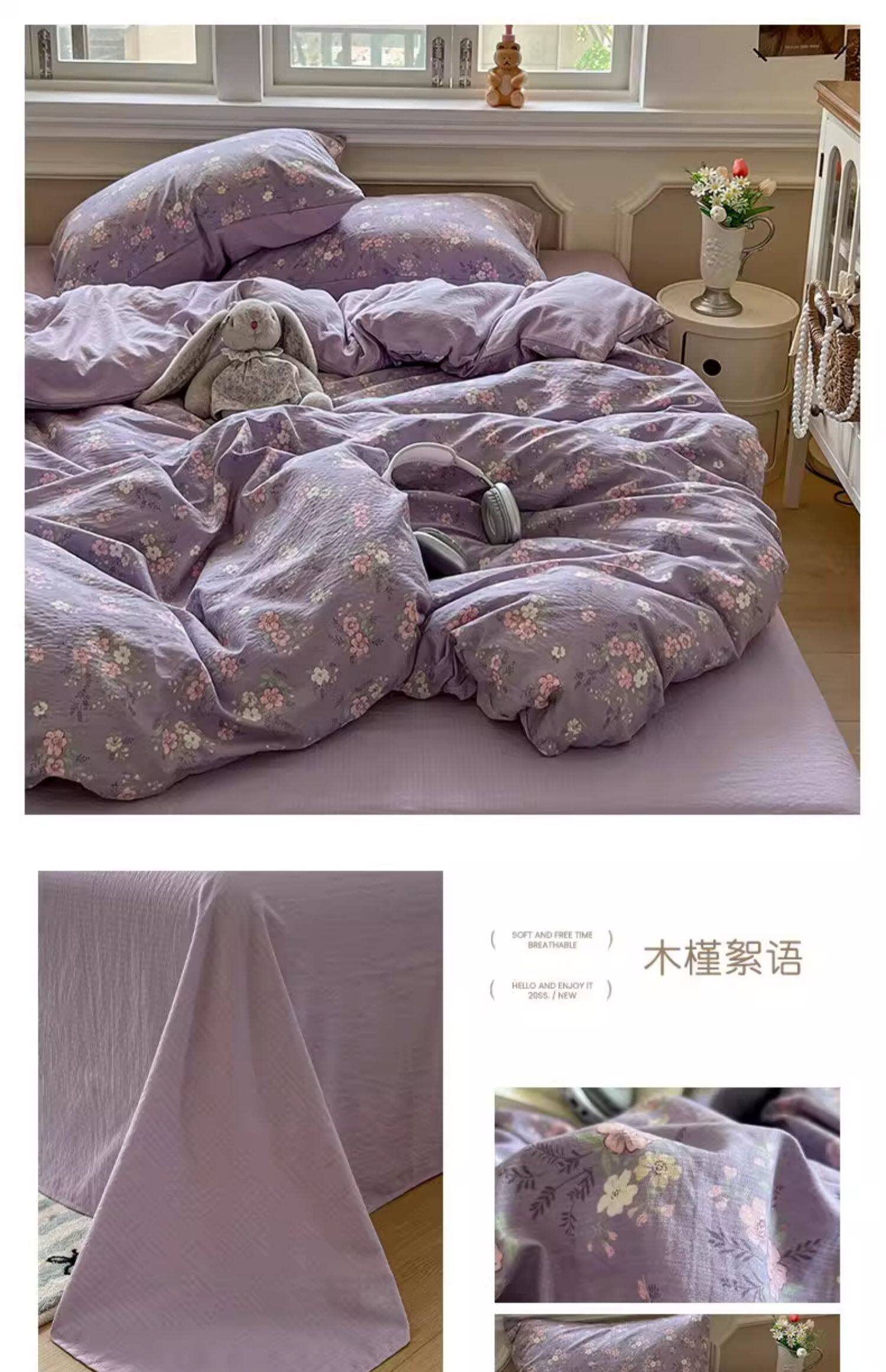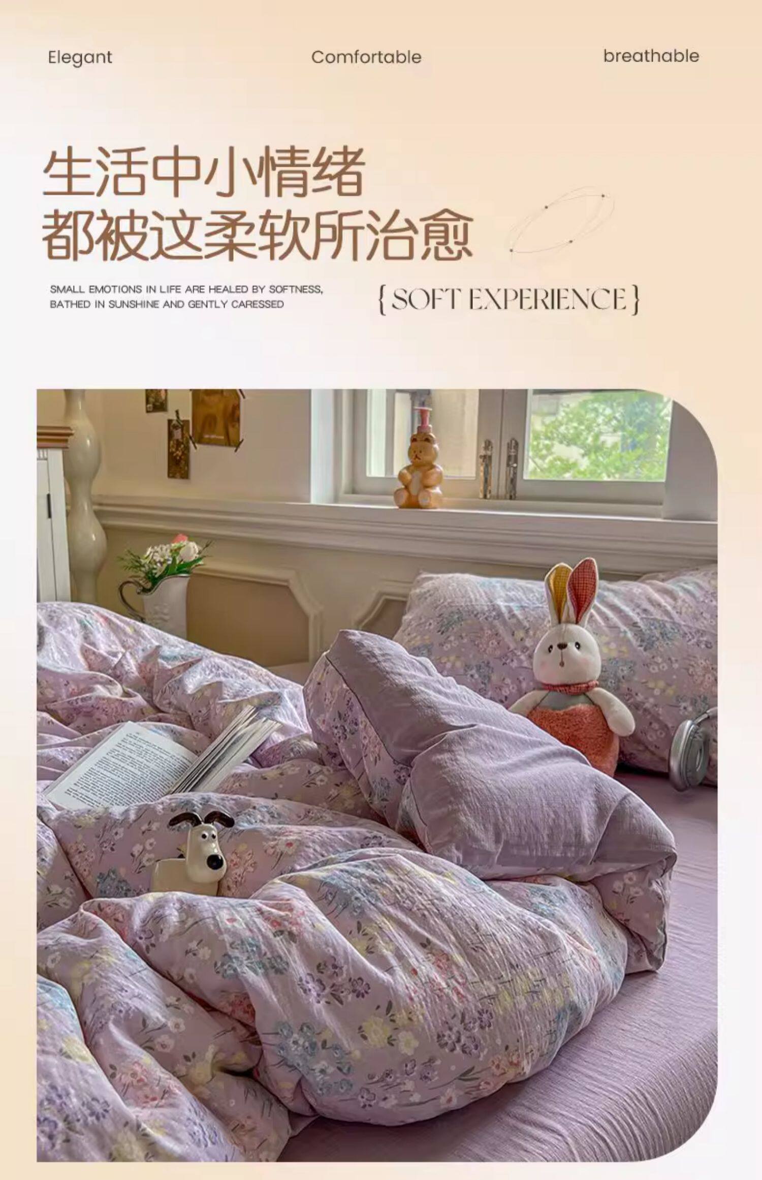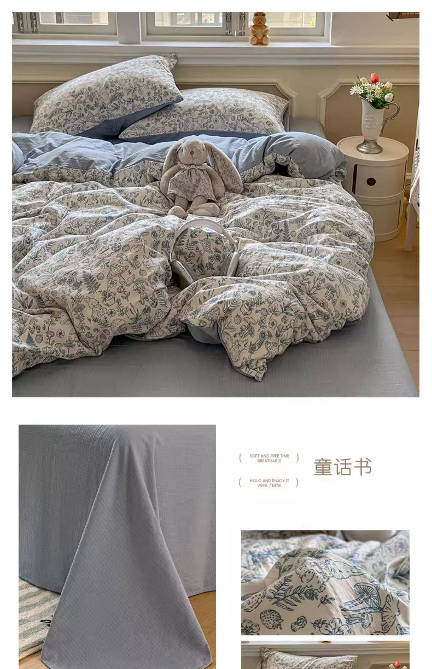 雲感褶皺風雙層紗四件套軟糯床單床包款小清新卡通學生宿捨三件套