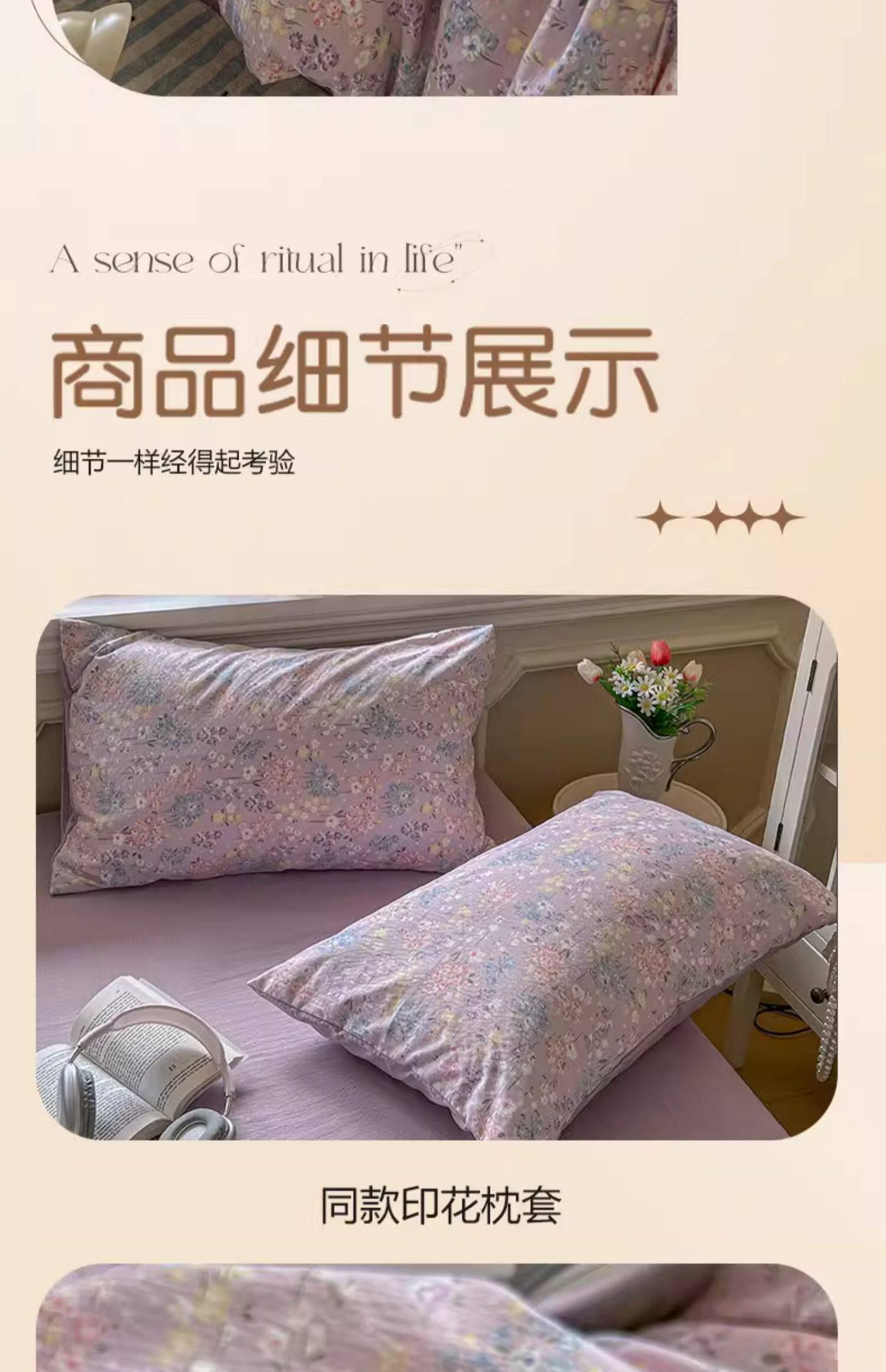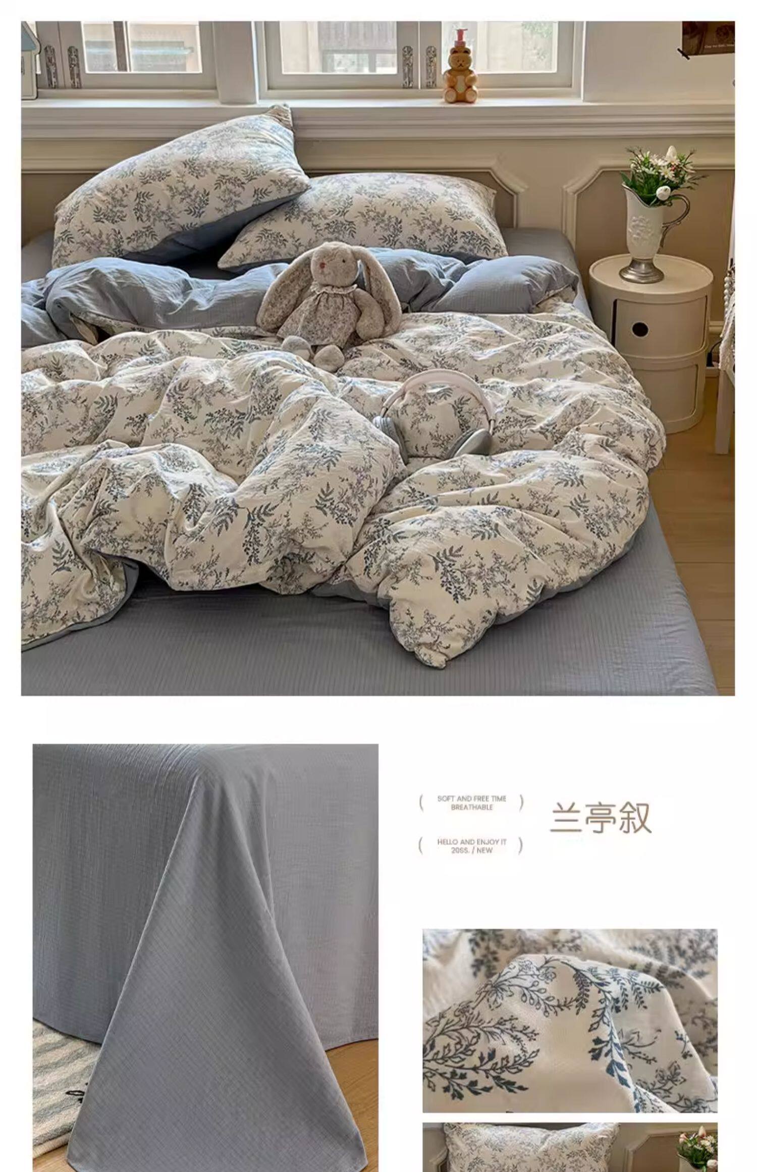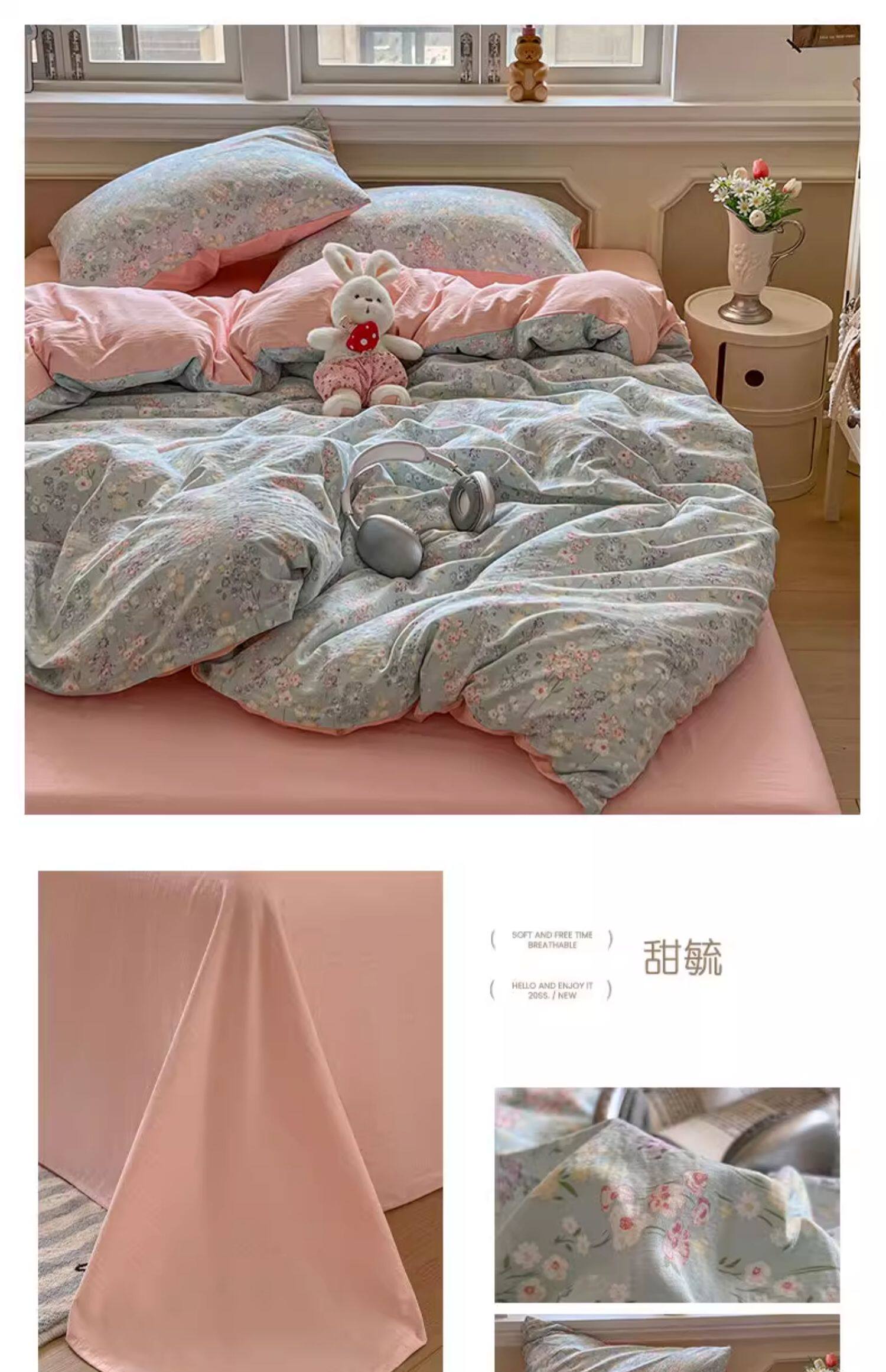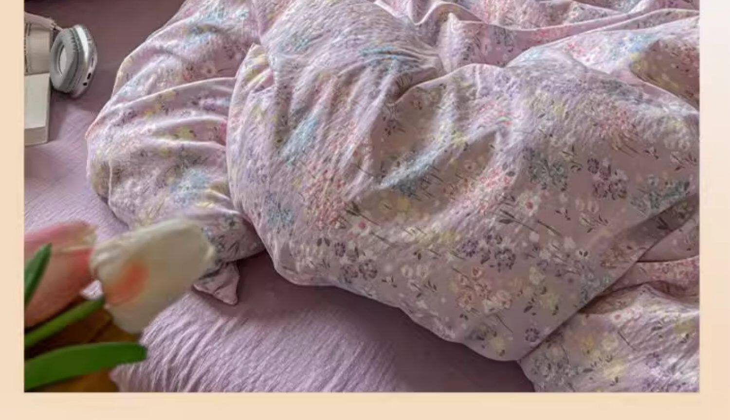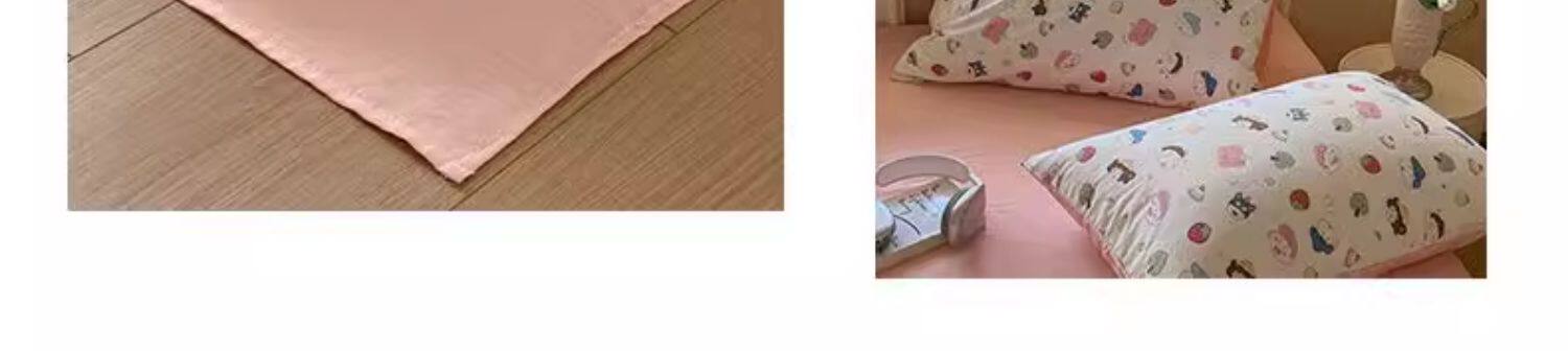 雲感褶皺風雙層紗四件套軟糯床單床包款小清新卡通學生宿捨三件套