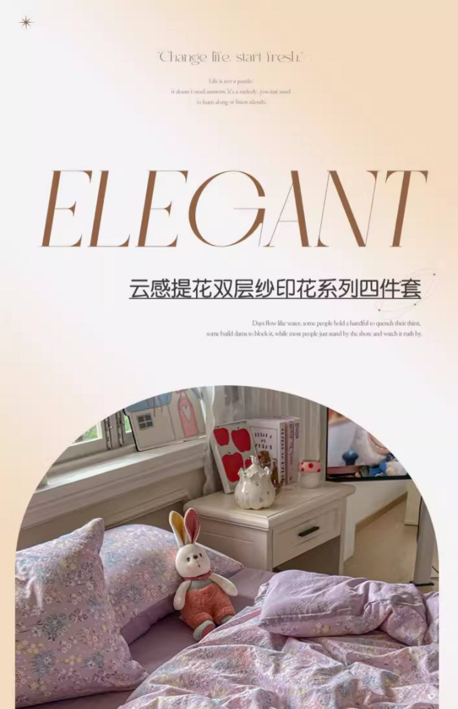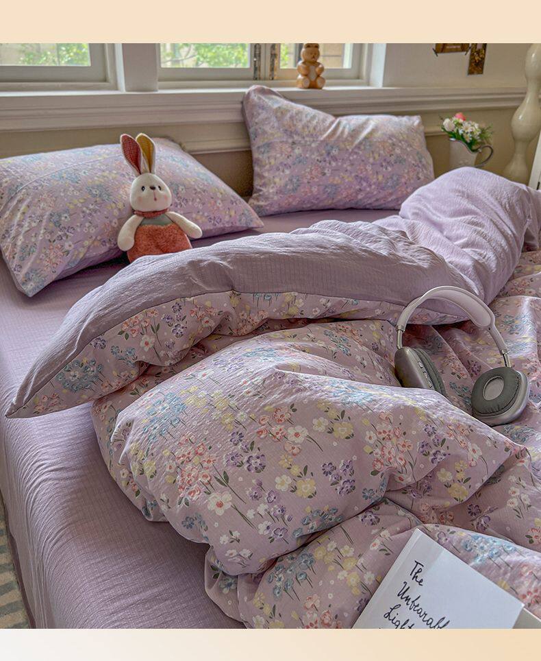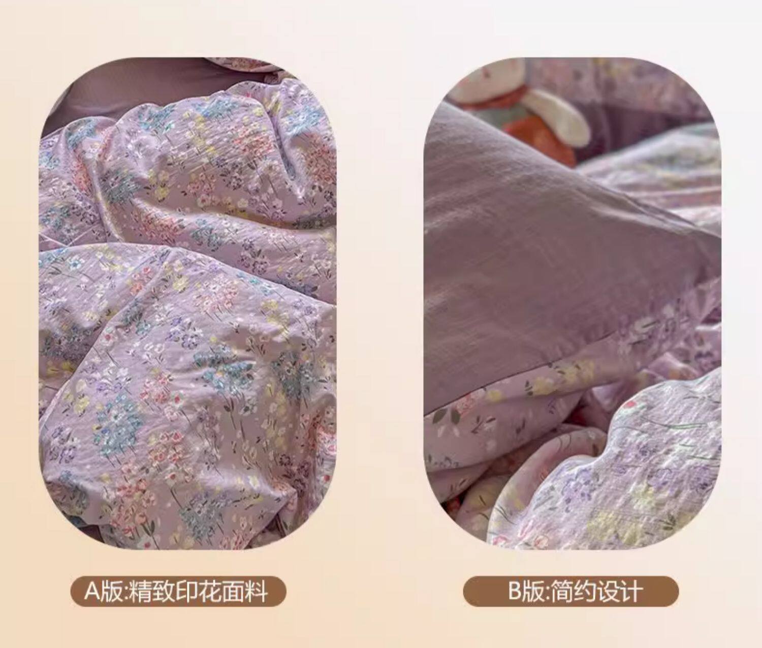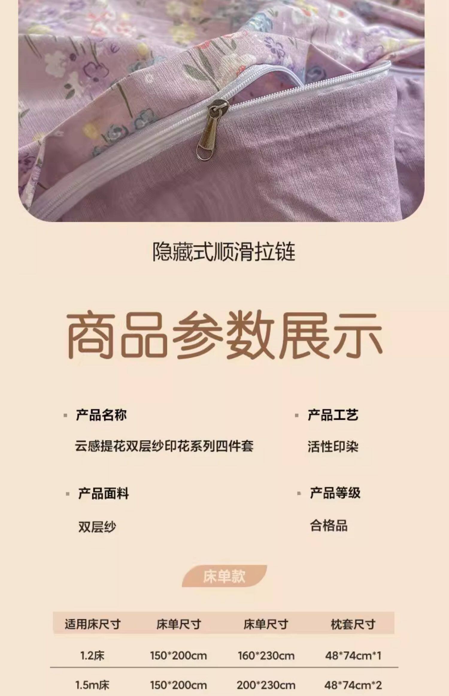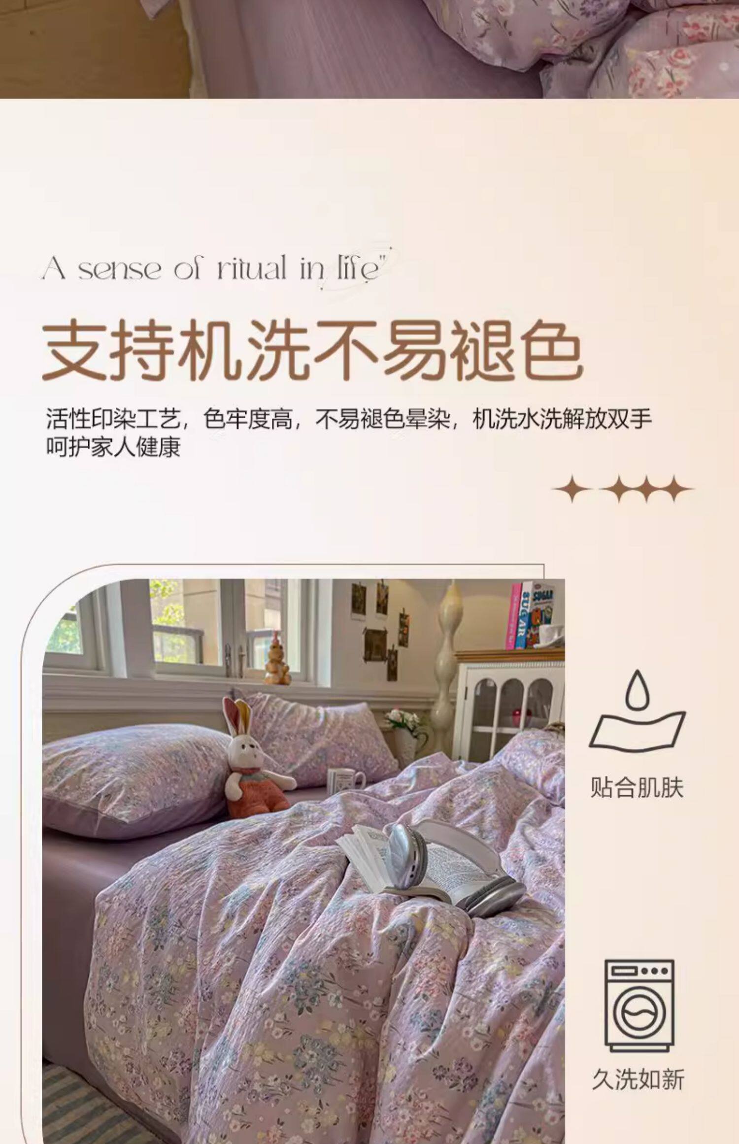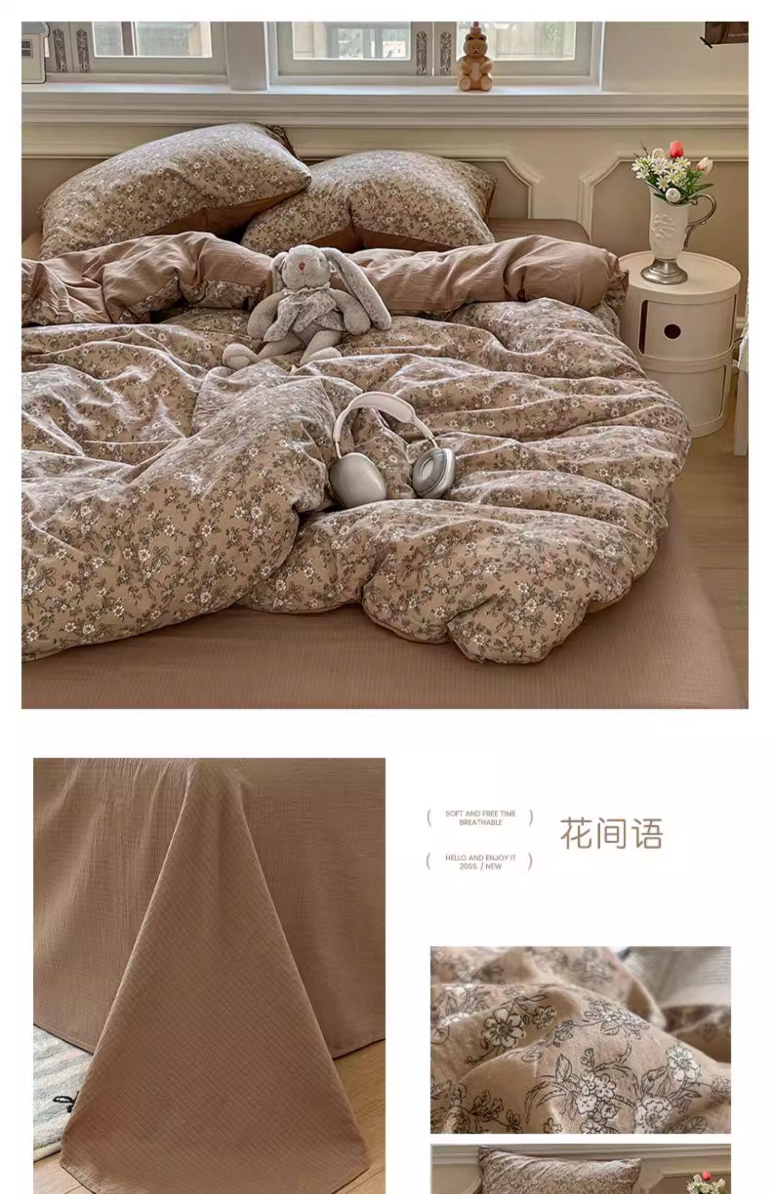 雲感褶皺風雙層紗四件套軟糯床單床包款小清新卡通學生宿捨三件套