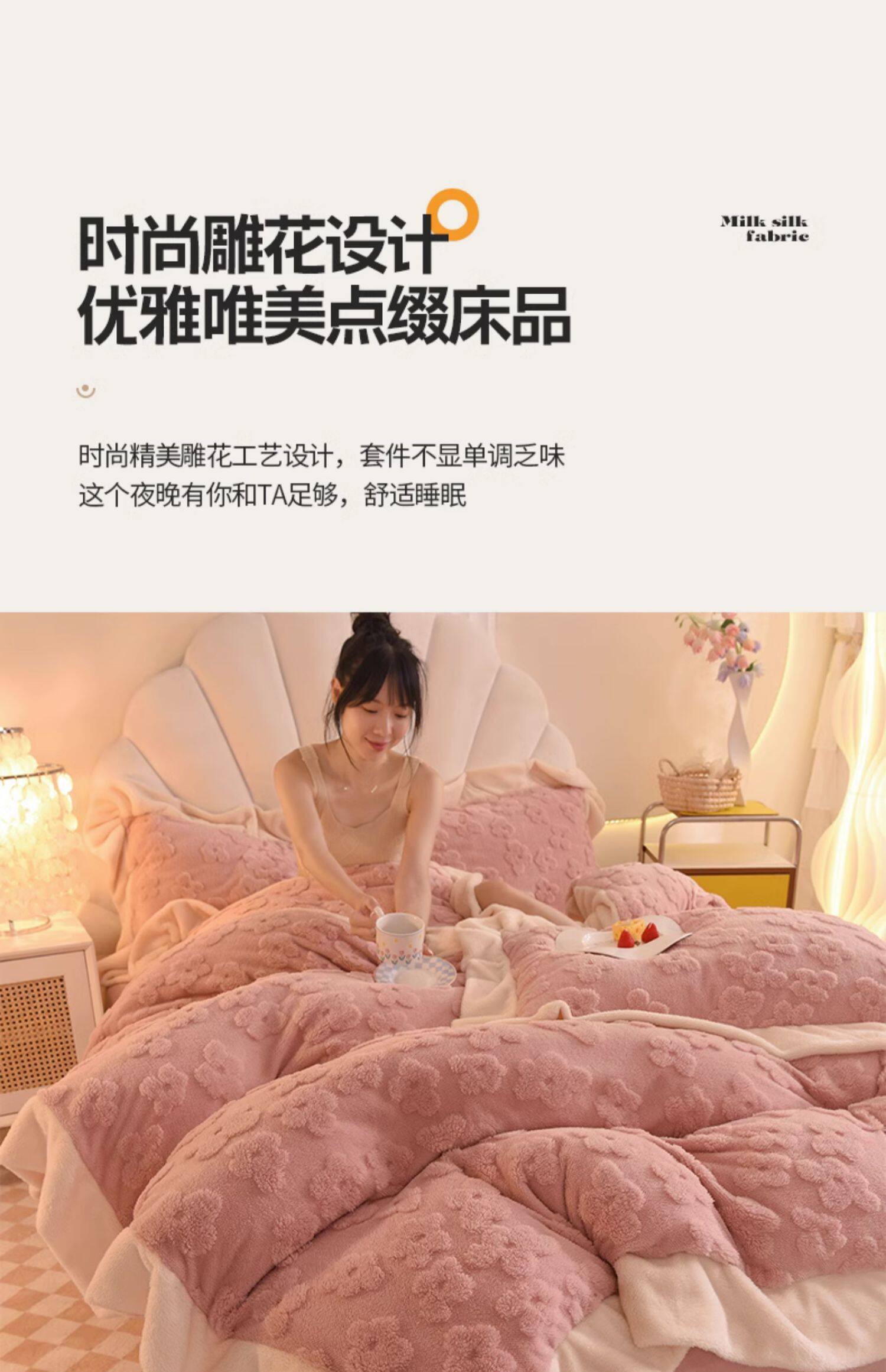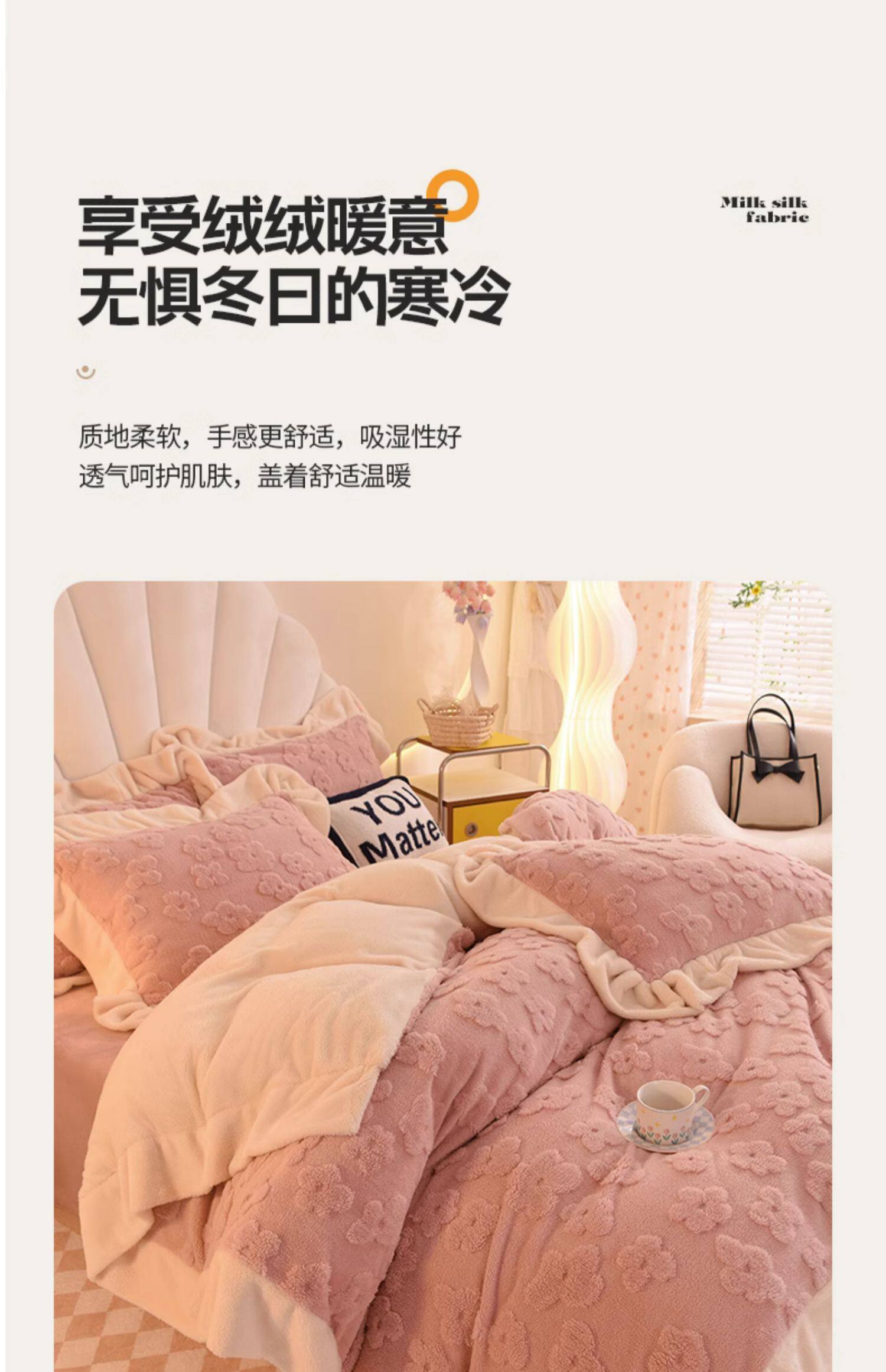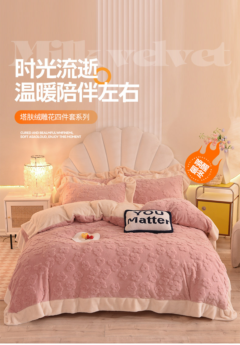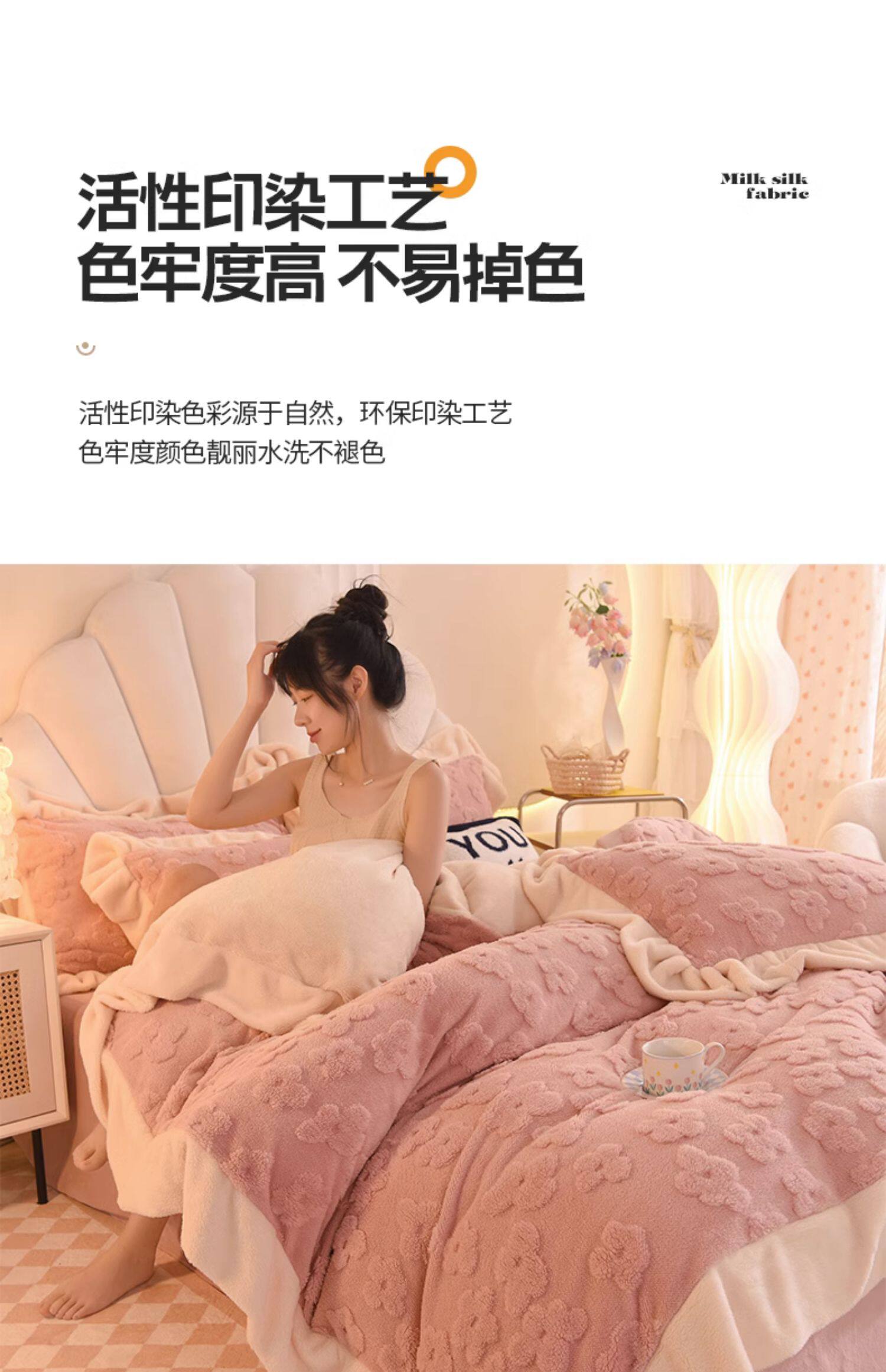 冬季牛奶絨四件套保暖裸睡被套加厚珊瑚絨床單被罩韓式法蘭絨套件