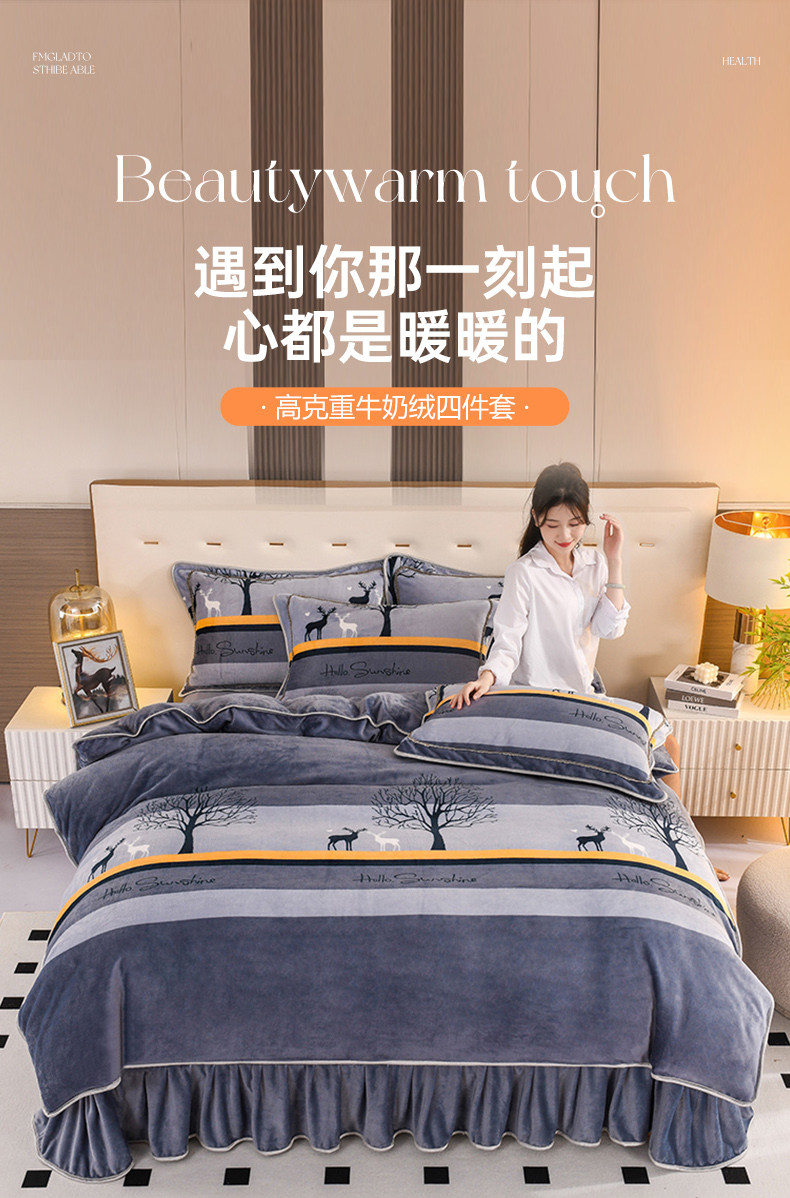 加絨牛奶絨四件套2026新款冬季加厚雙面珊瑚絨被套床上法蘭絨床單