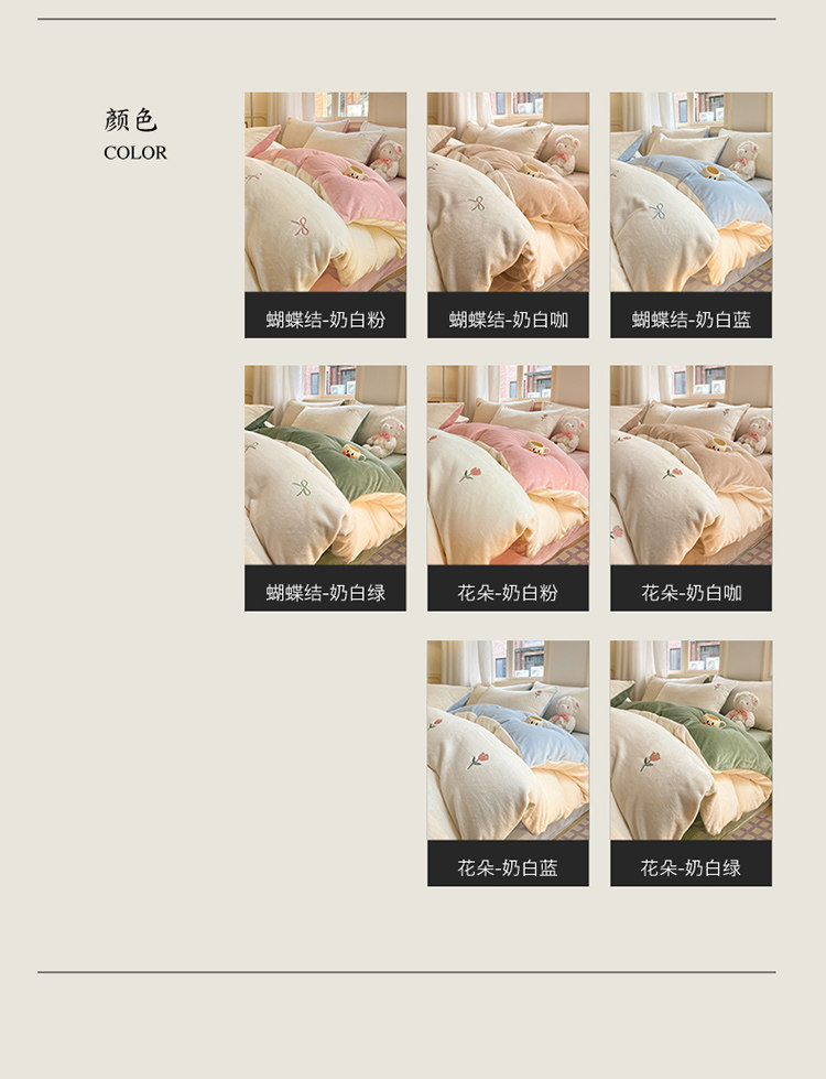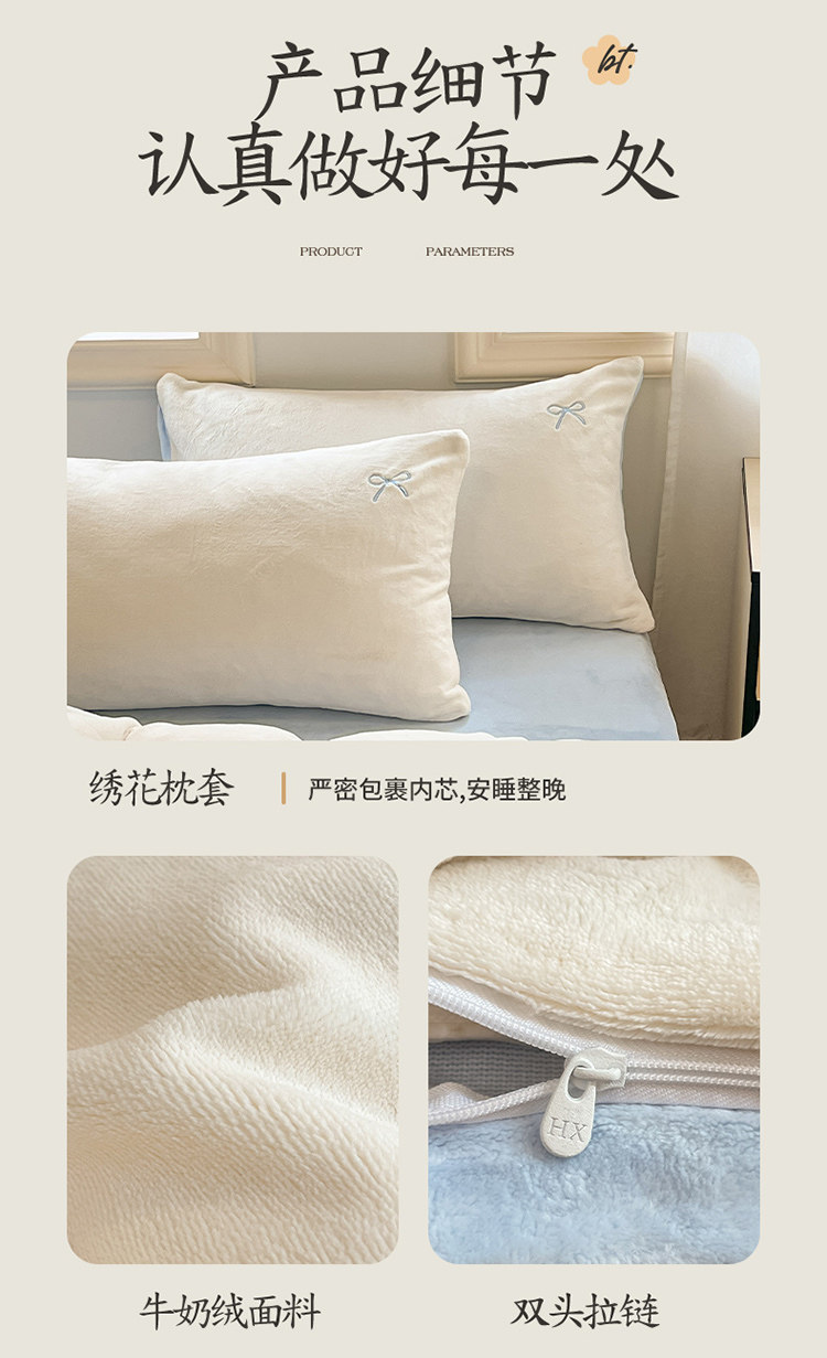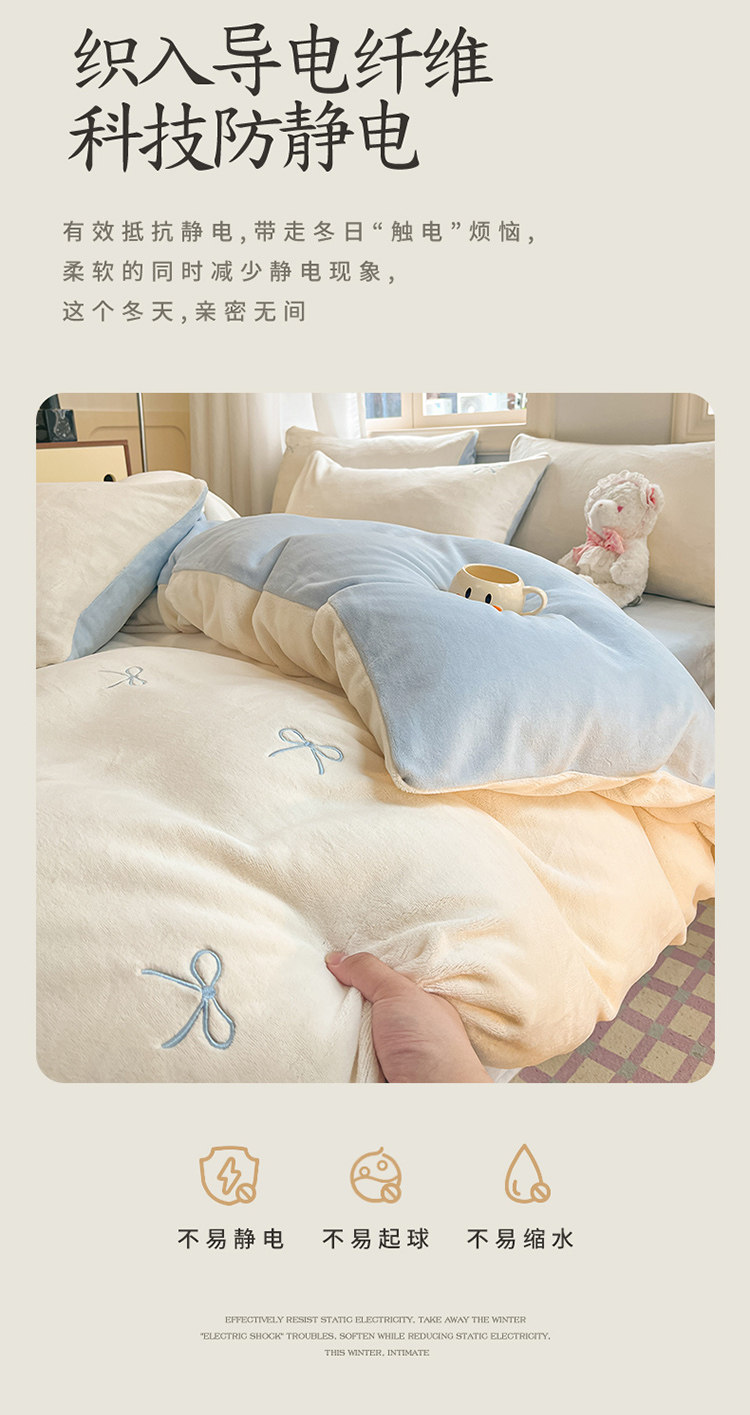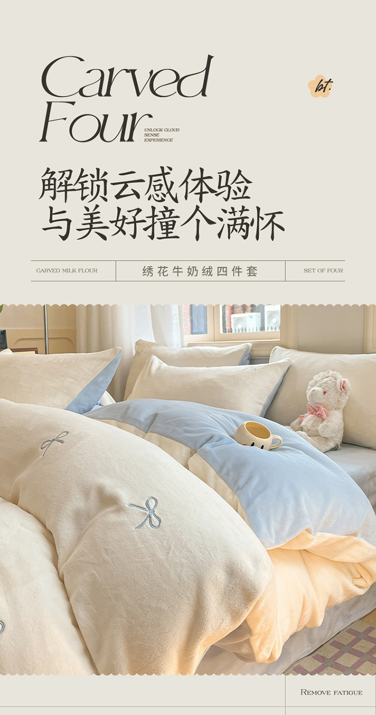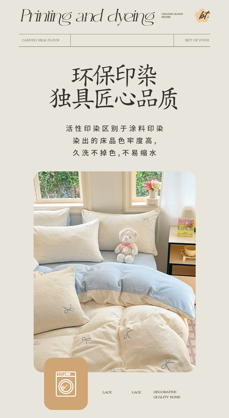 滿綉冬季牛奶絨四件套裸睡被罩雙面珊瑚絨床罩床包加絨加厚寶寶絨