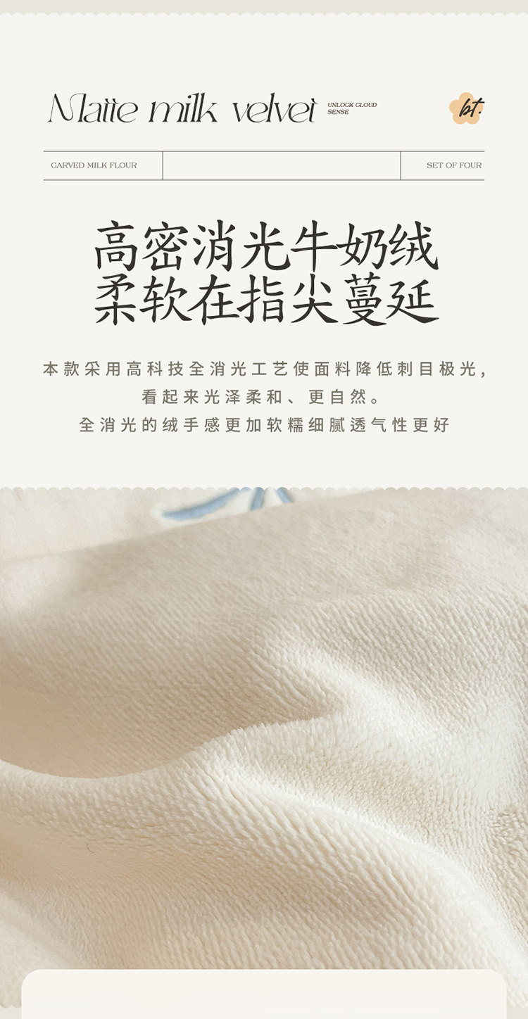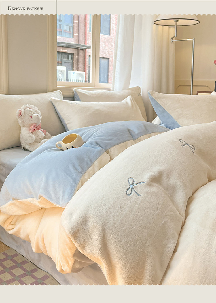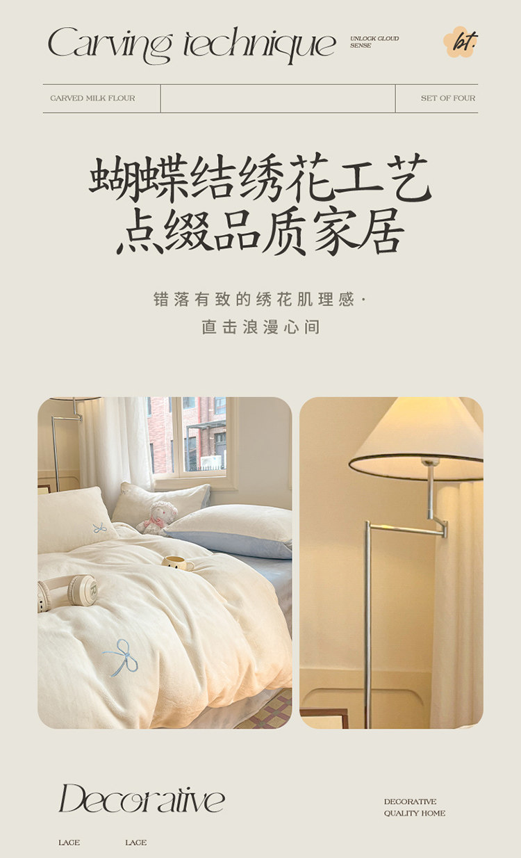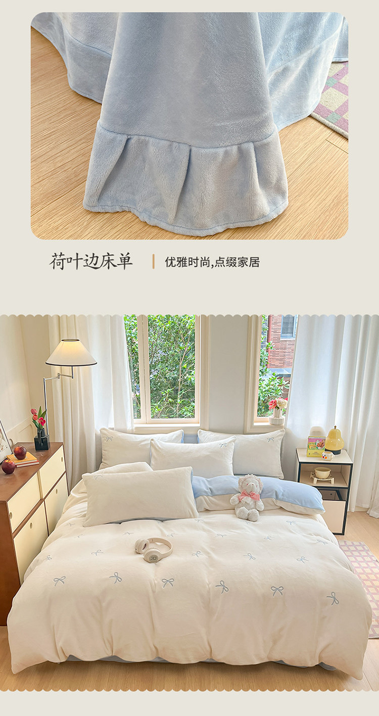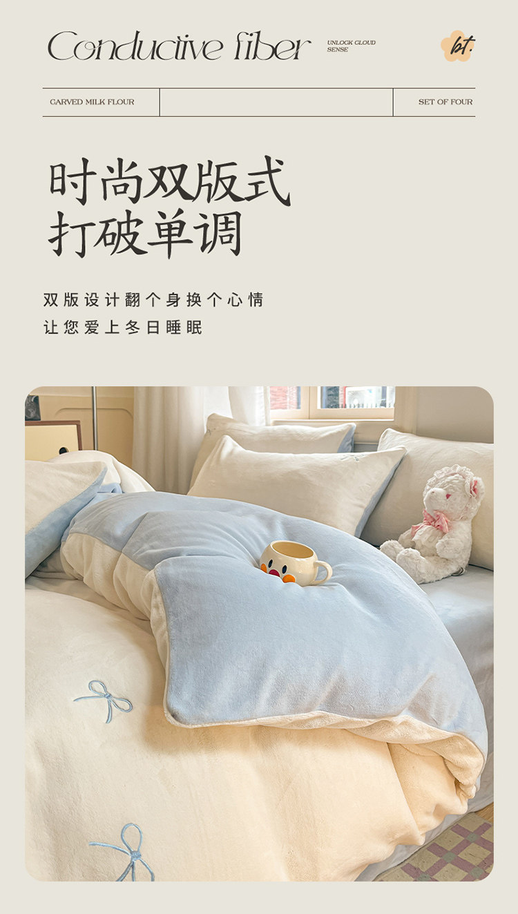 滿綉冬季牛奶絨四件套裸睡被罩雙面珊瑚絨床罩床包加絨加厚寶寶絨
