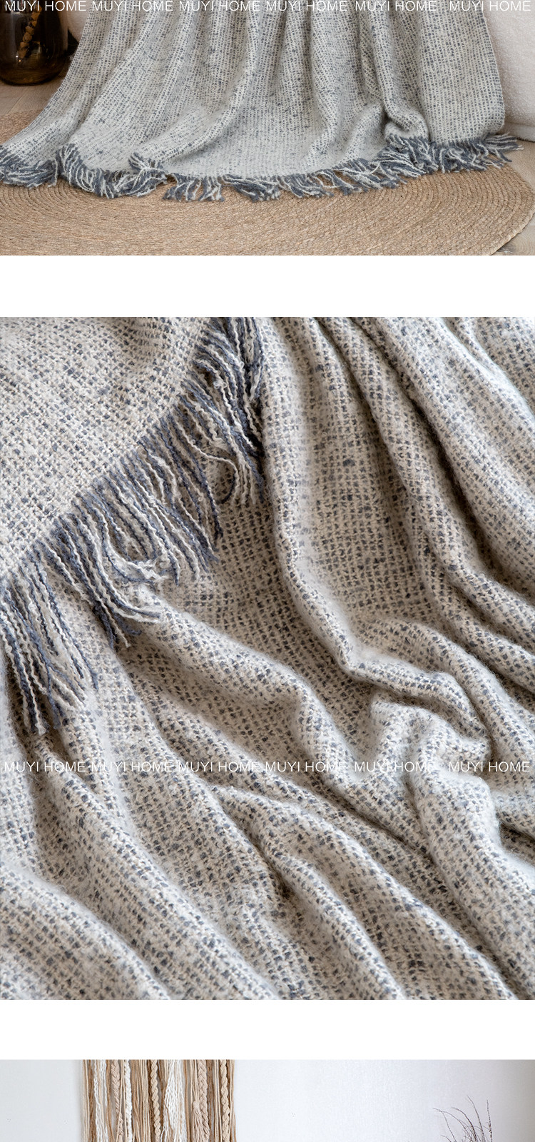 出口歐美小華夫格拉絨流蘇蓋毯軟裝針織沙發毯仿羊絨休閒毛毯搭毯