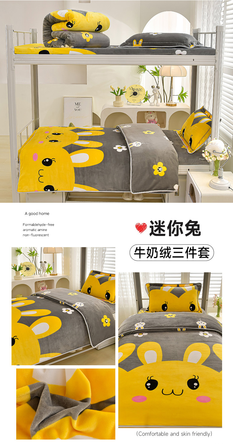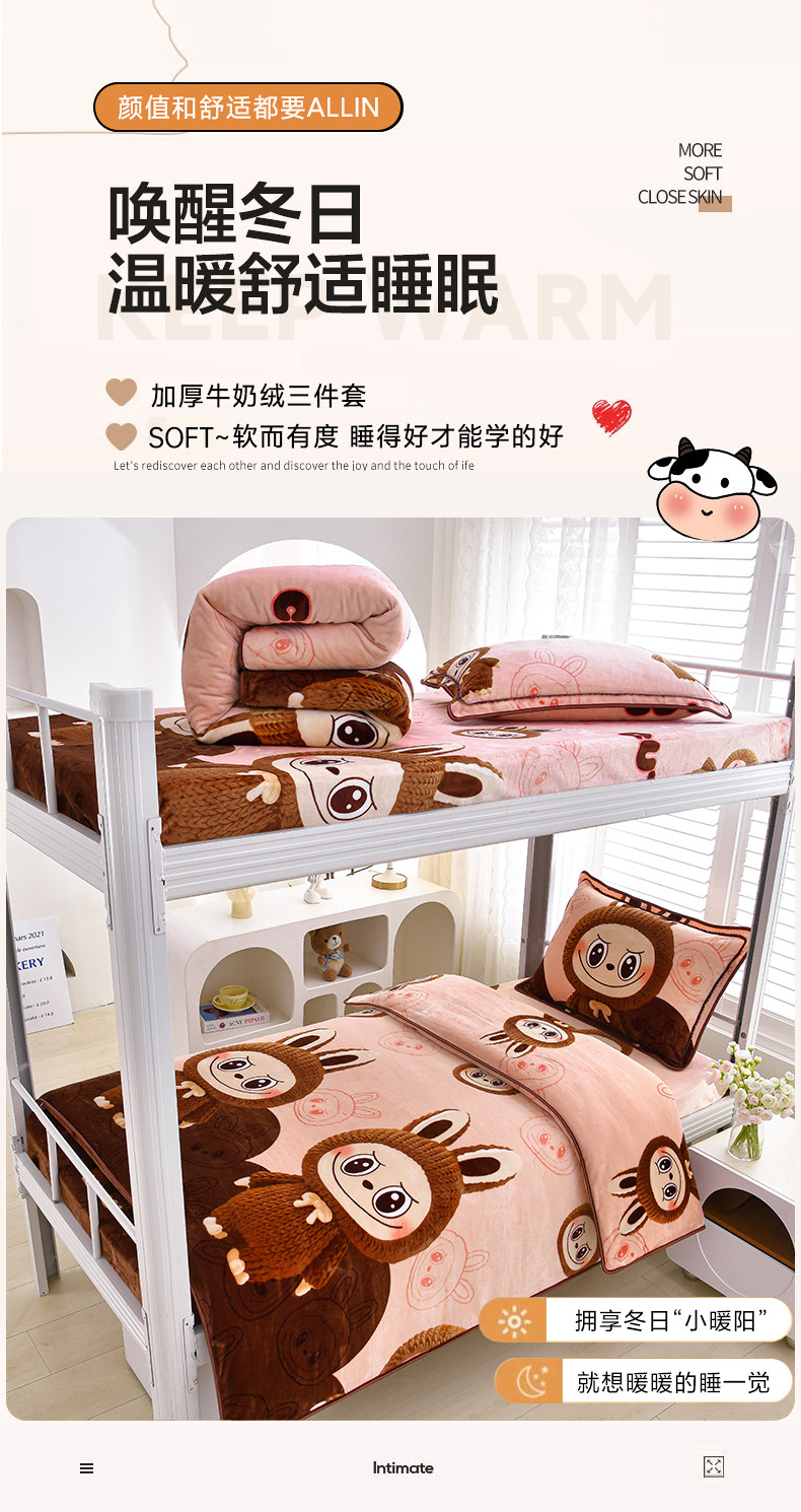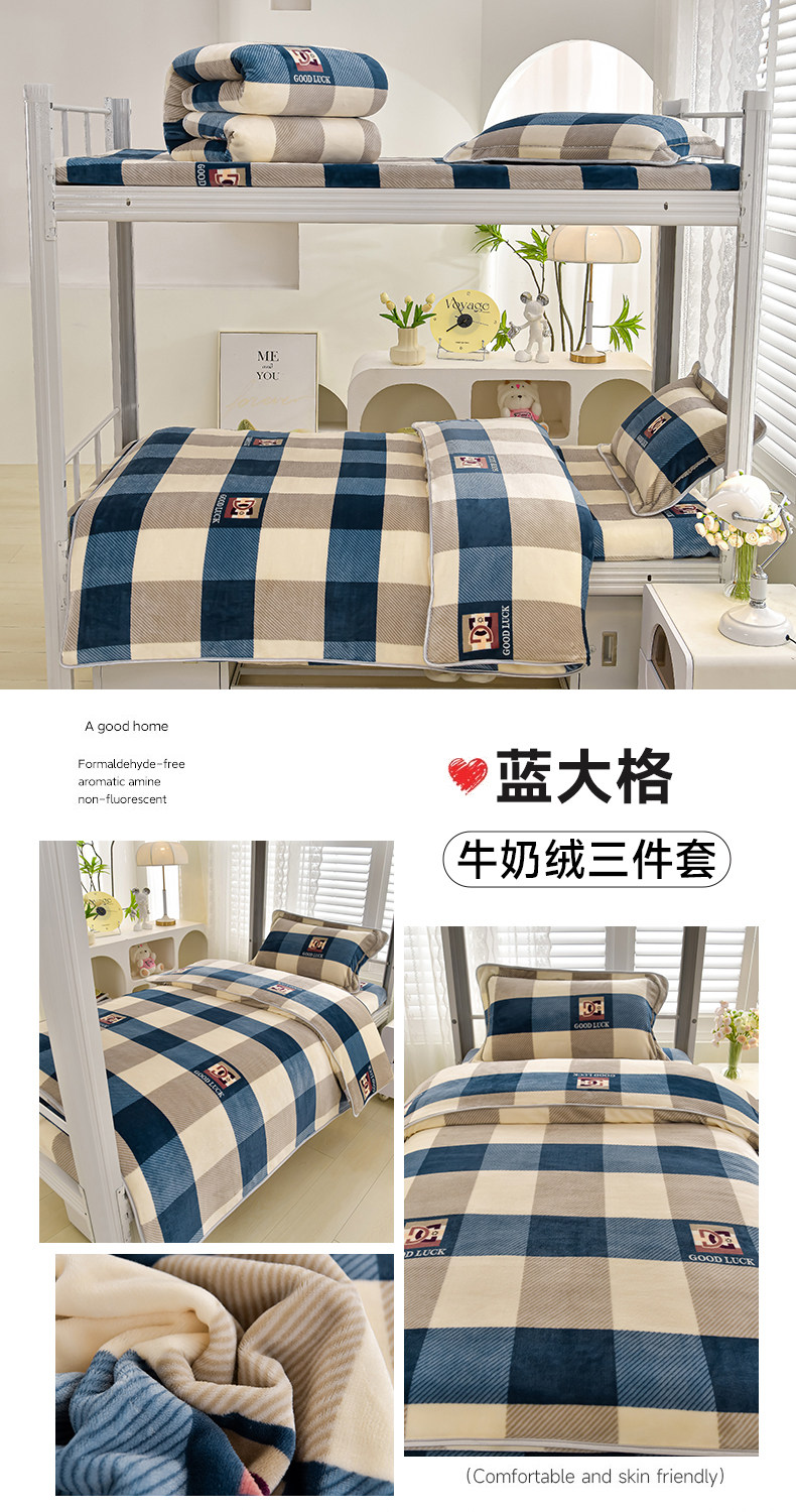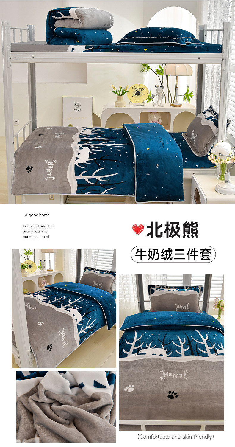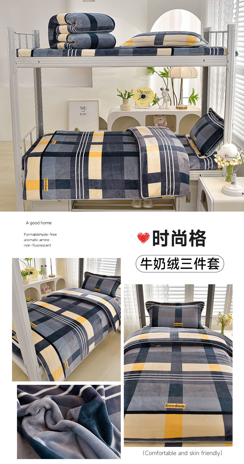 冬季牛奶絨三件套學生宿捨床上用品雙面絨加厚珊瑚絨被套床單床包