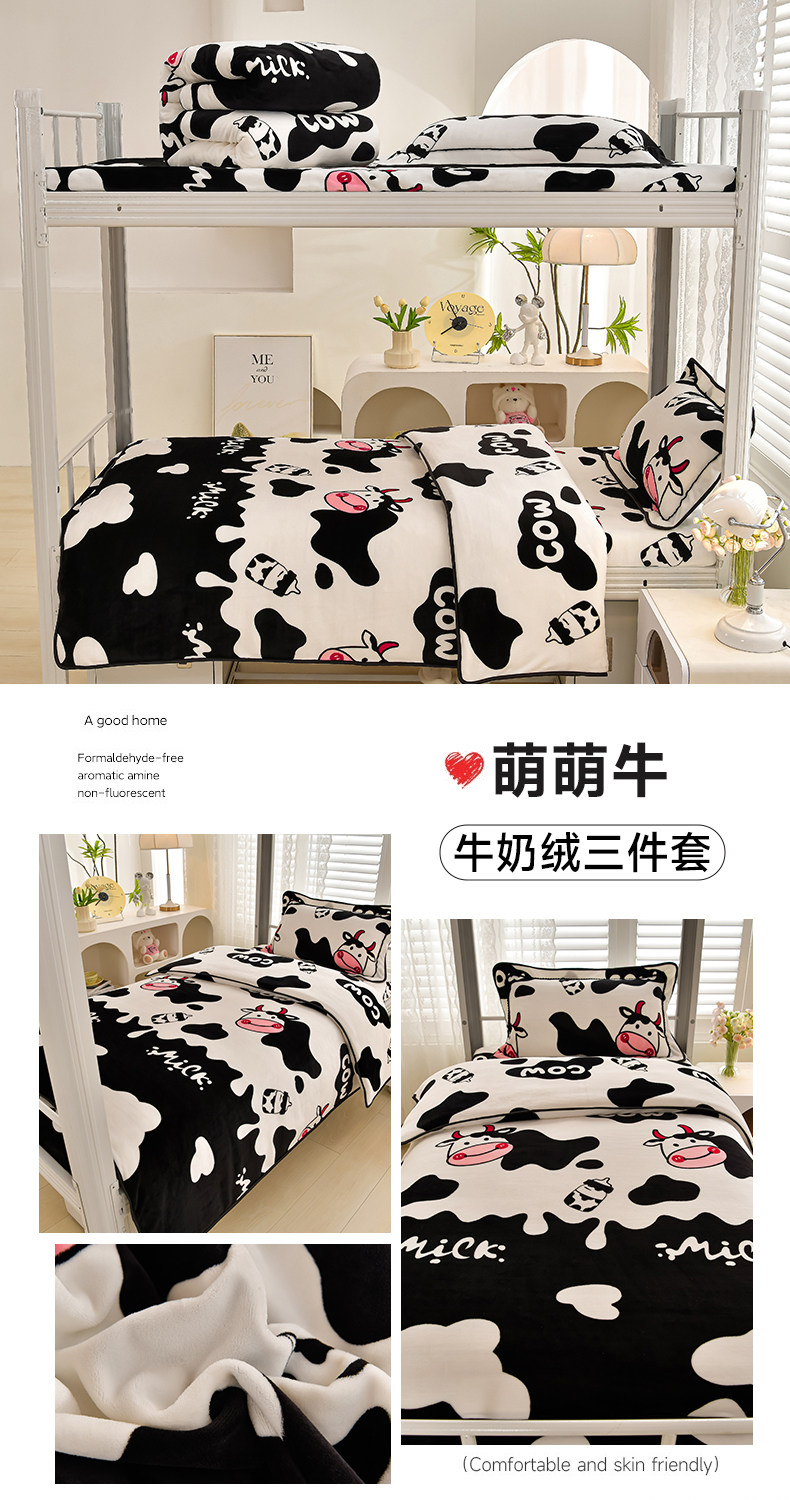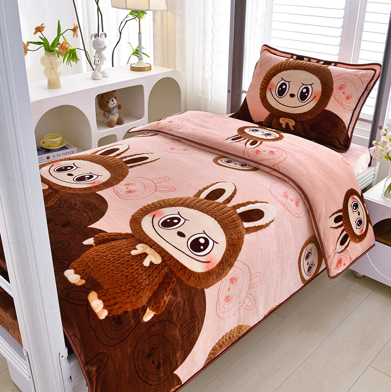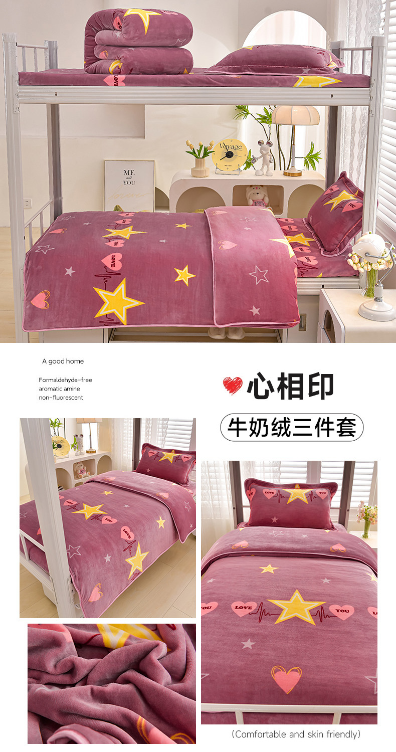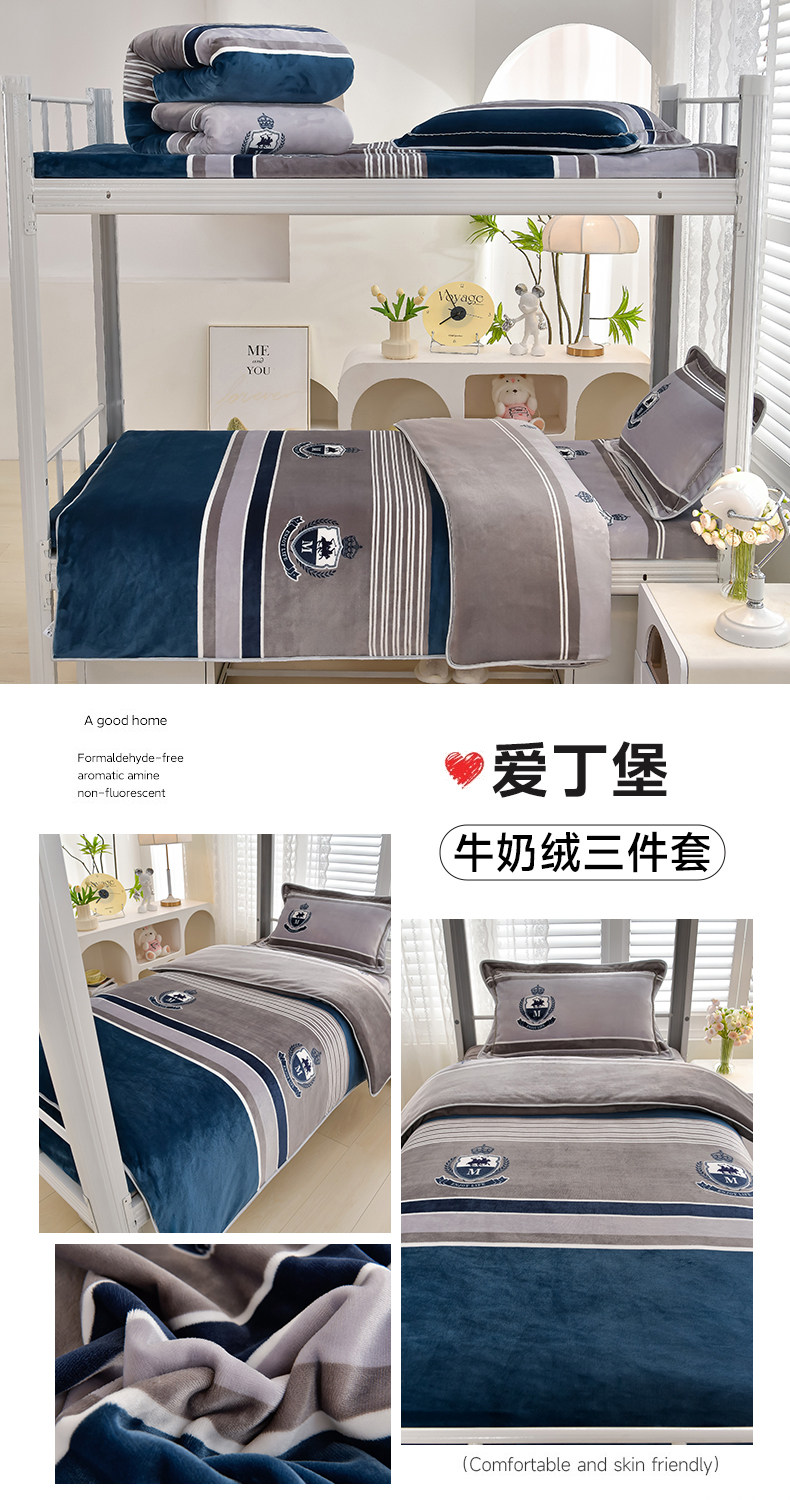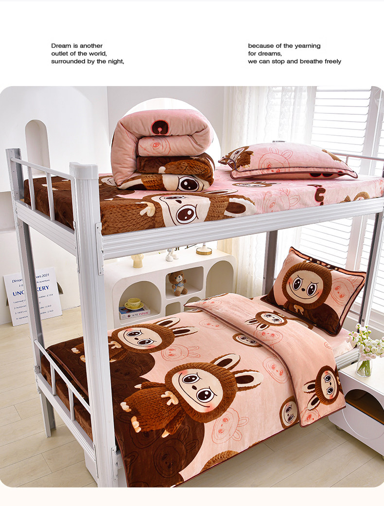 冬季牛奶絨三件套學生宿捨床上用品雙面絨加厚珊瑚絨被套床單床包
