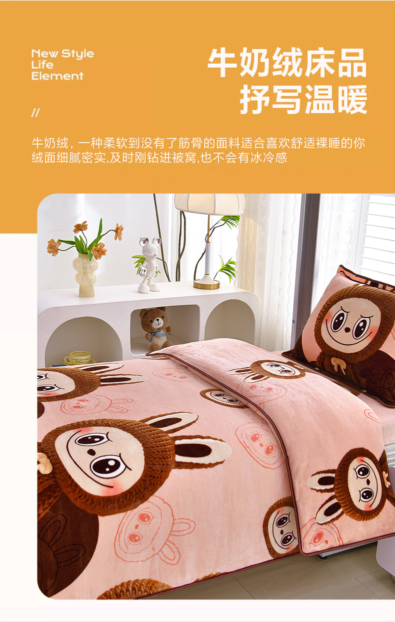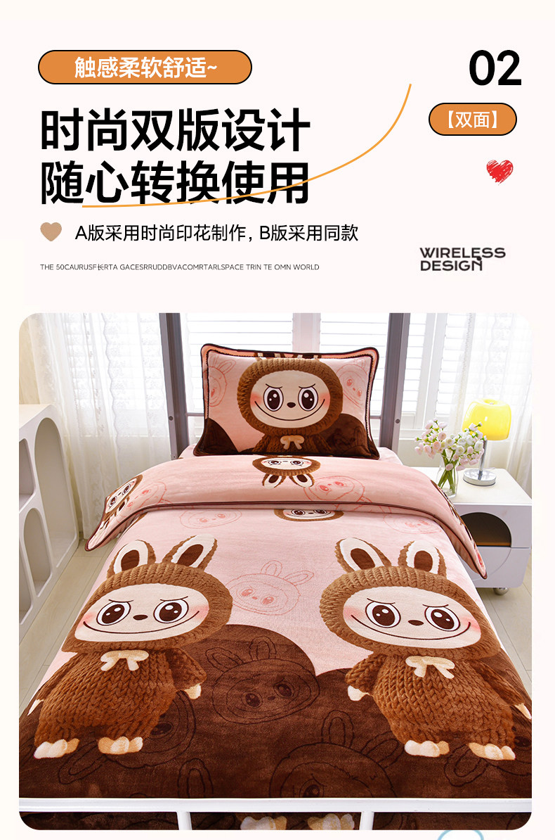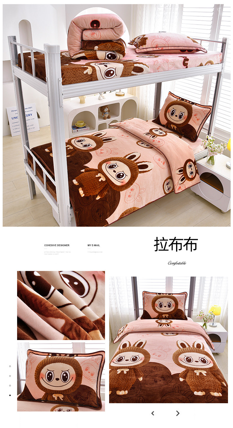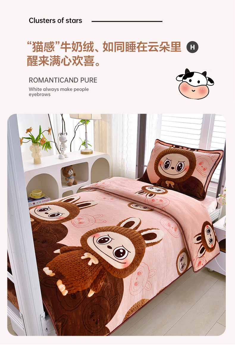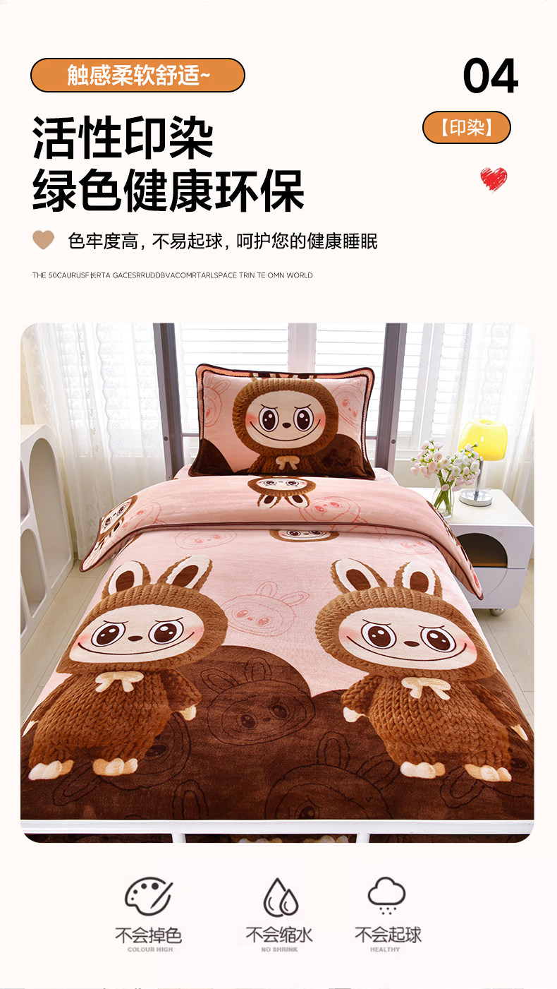 冬季牛奶絨三件套學生宿捨床上用品雙面絨加厚珊瑚絨被套床單床包