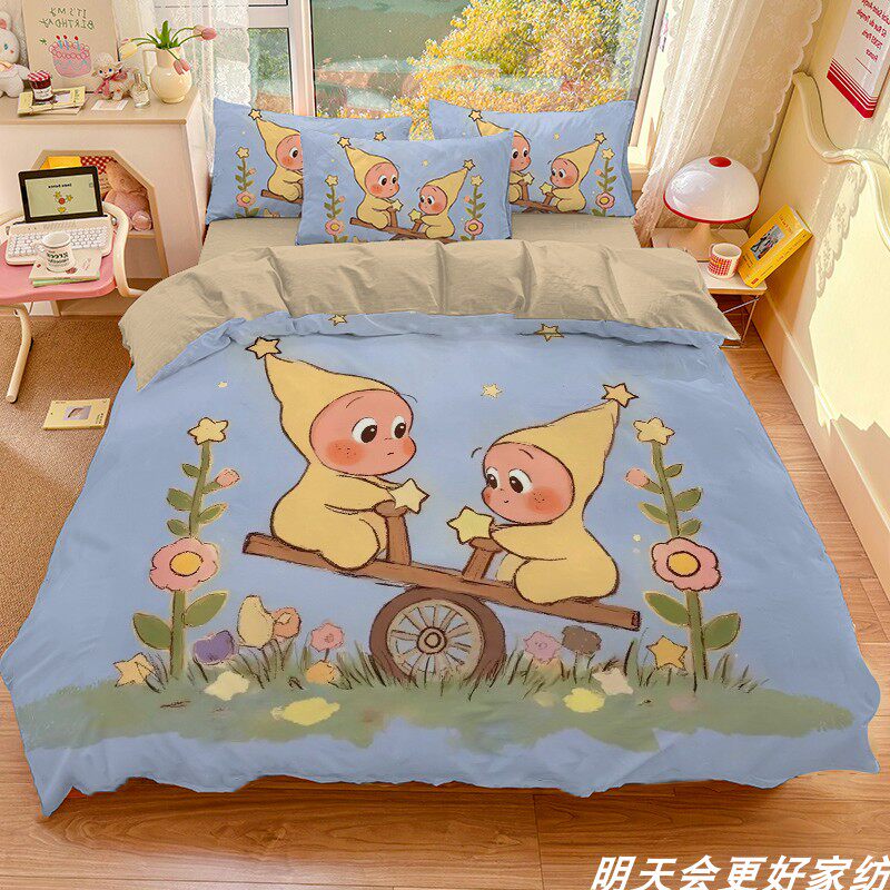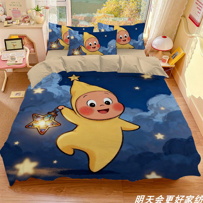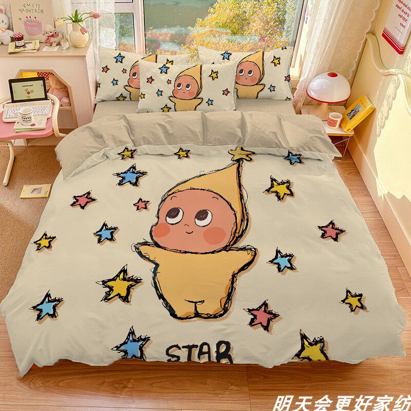 星星人兒童四件套印花被套透氣親膚三件套學生被罩可水洗被子被單