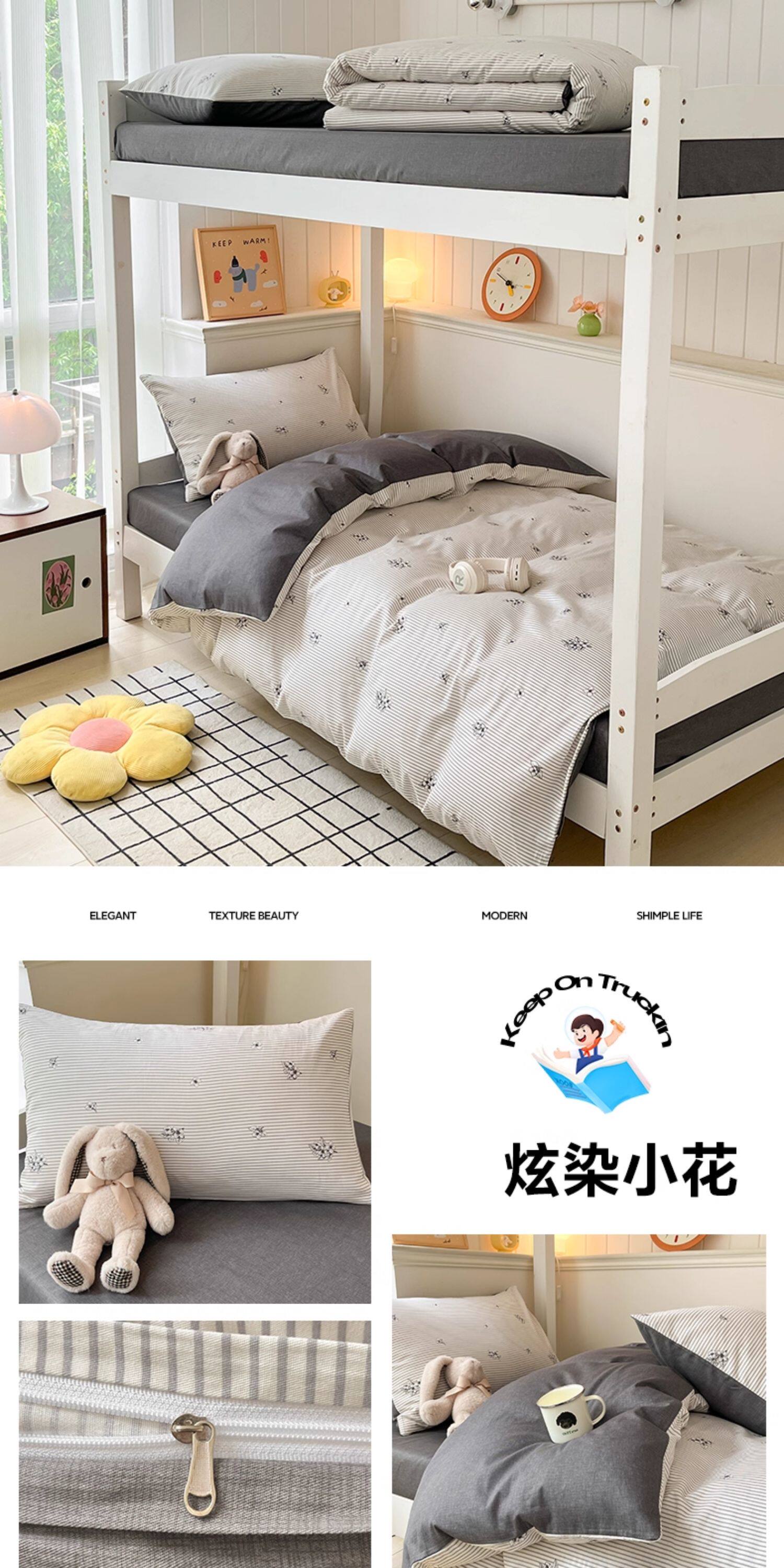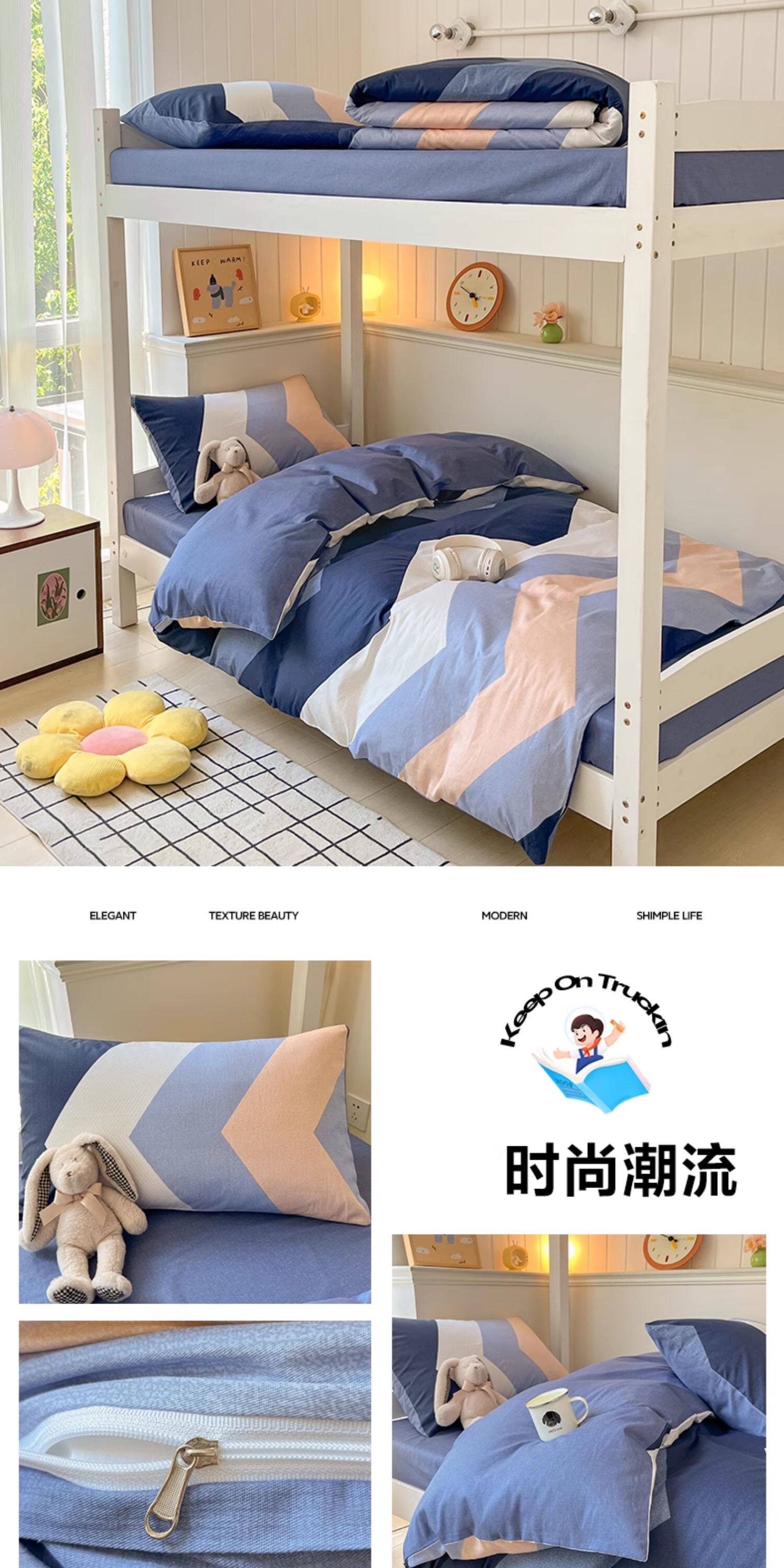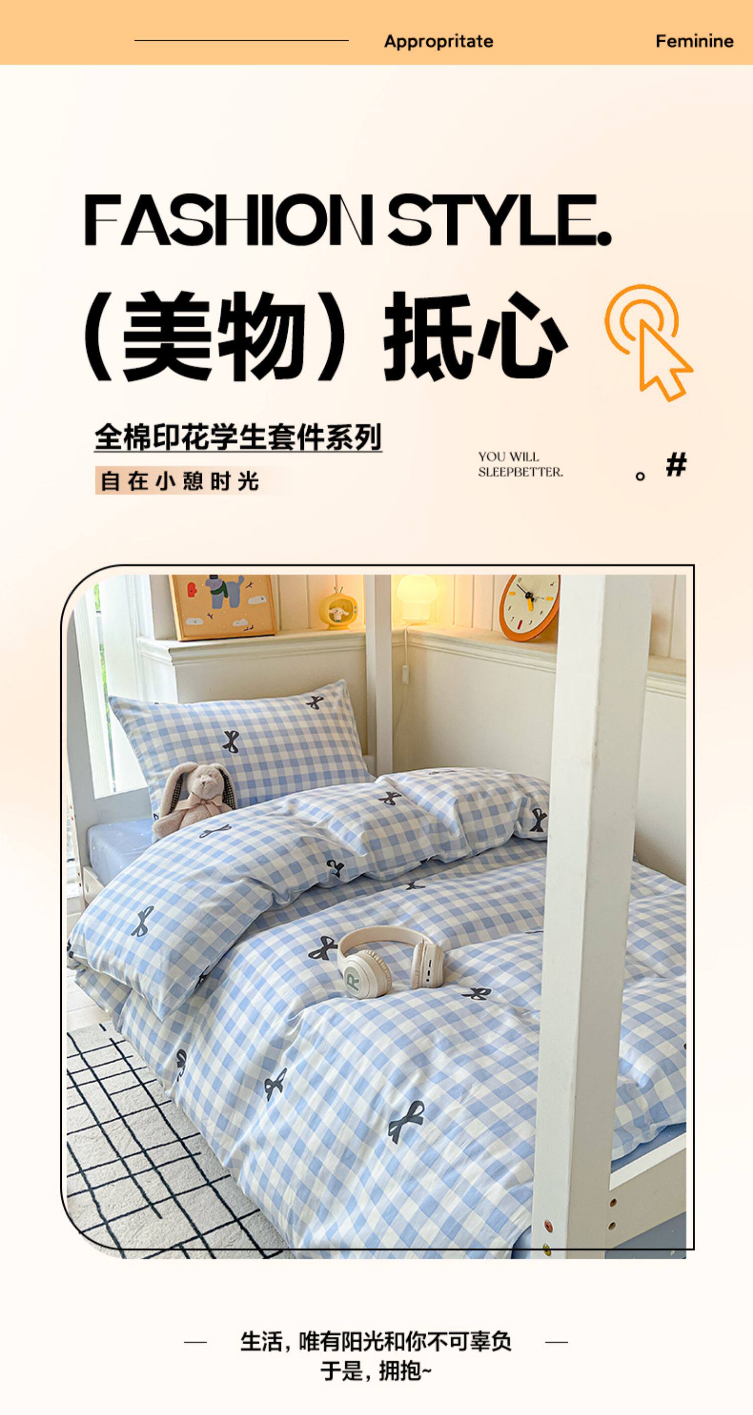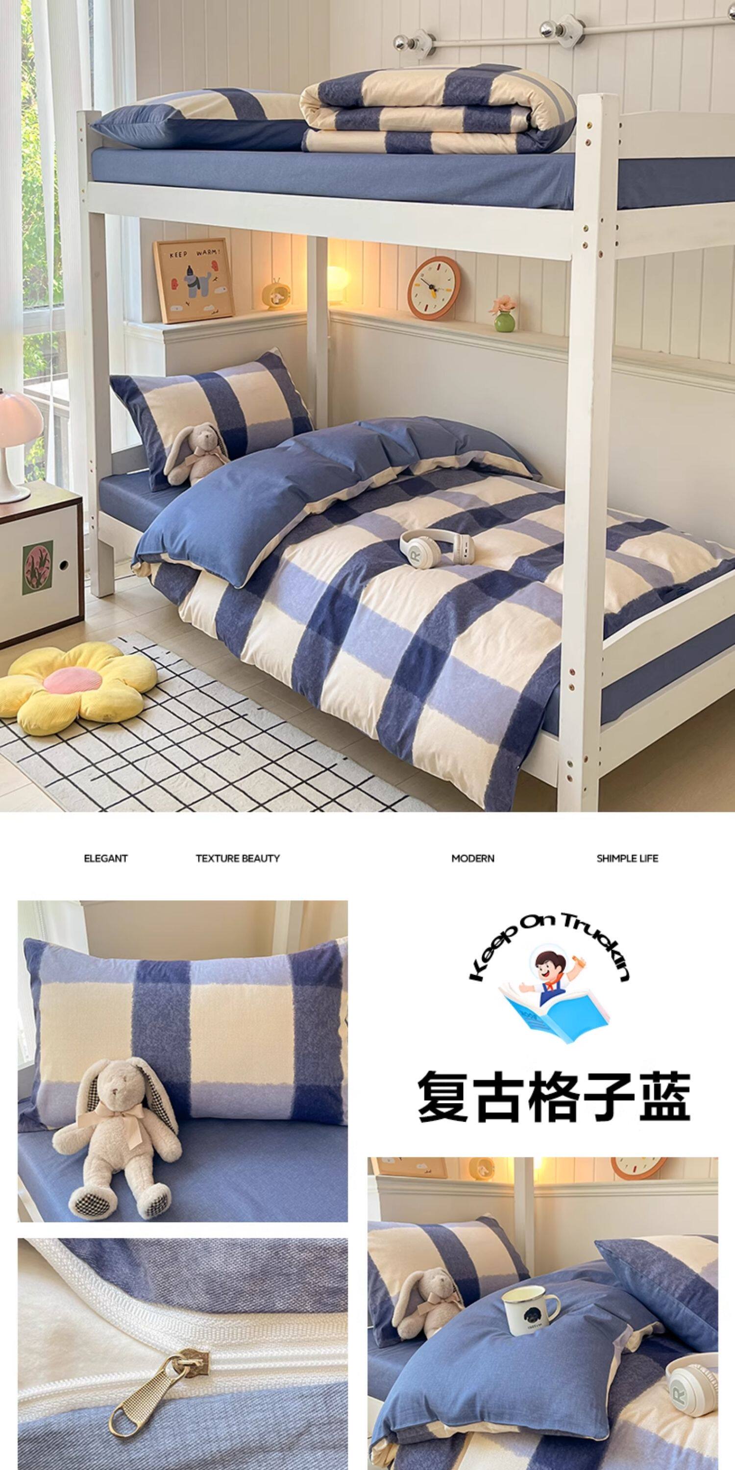 純棉學生宿捨床上三件套ins風床單被罩四件套100全棉床包款單人床
