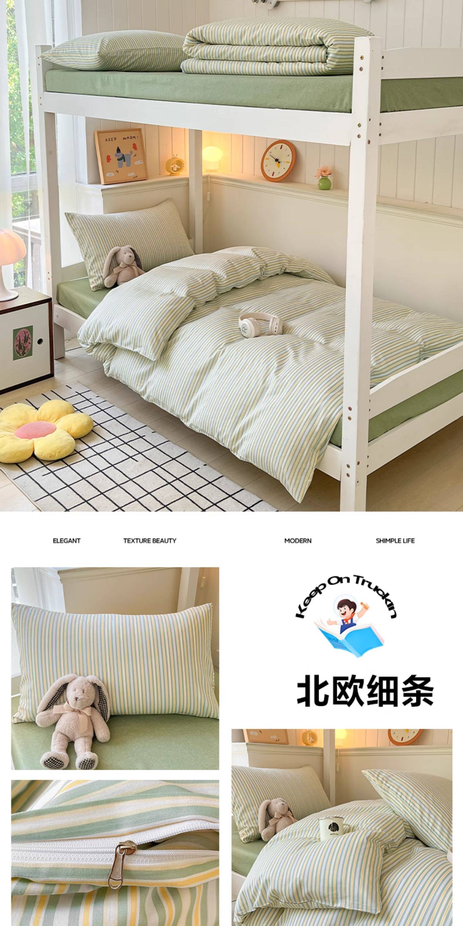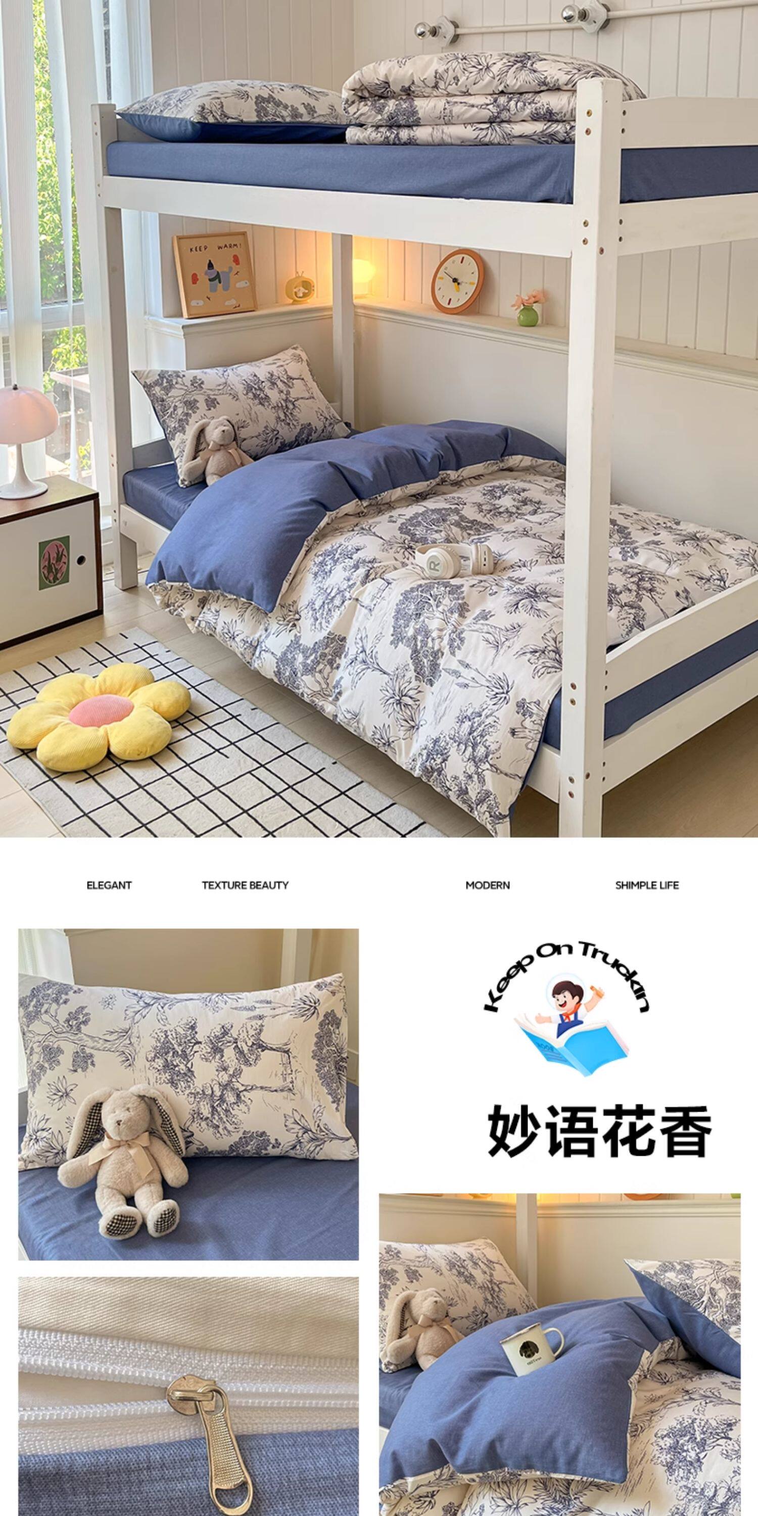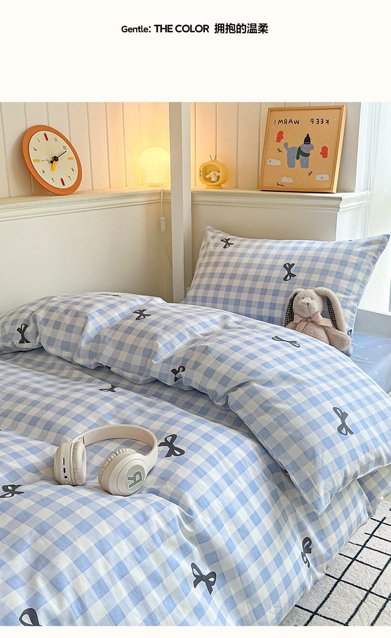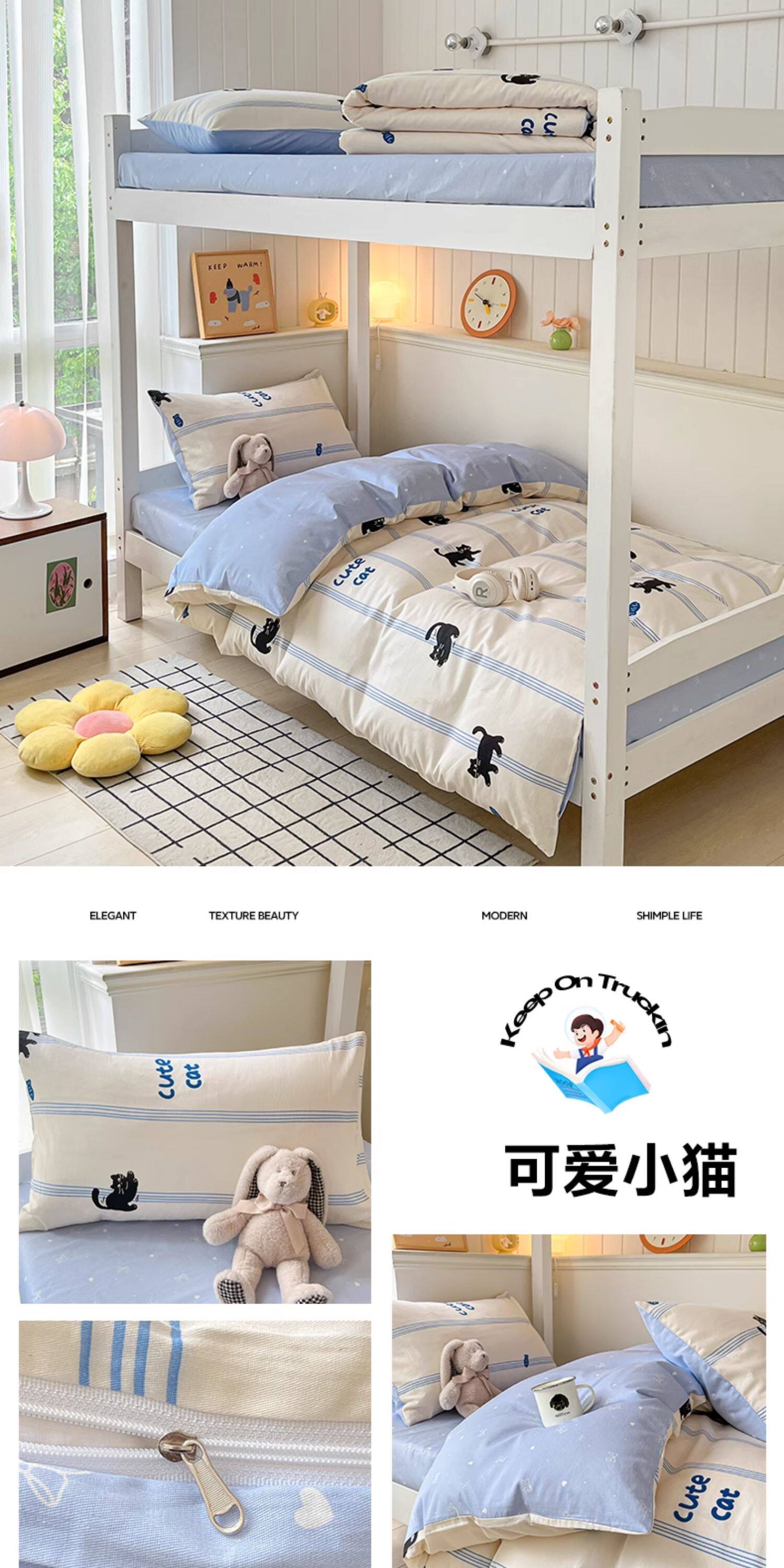 純棉學生宿捨床上三件套ins風床單被罩四件套100全棉床包款單人床