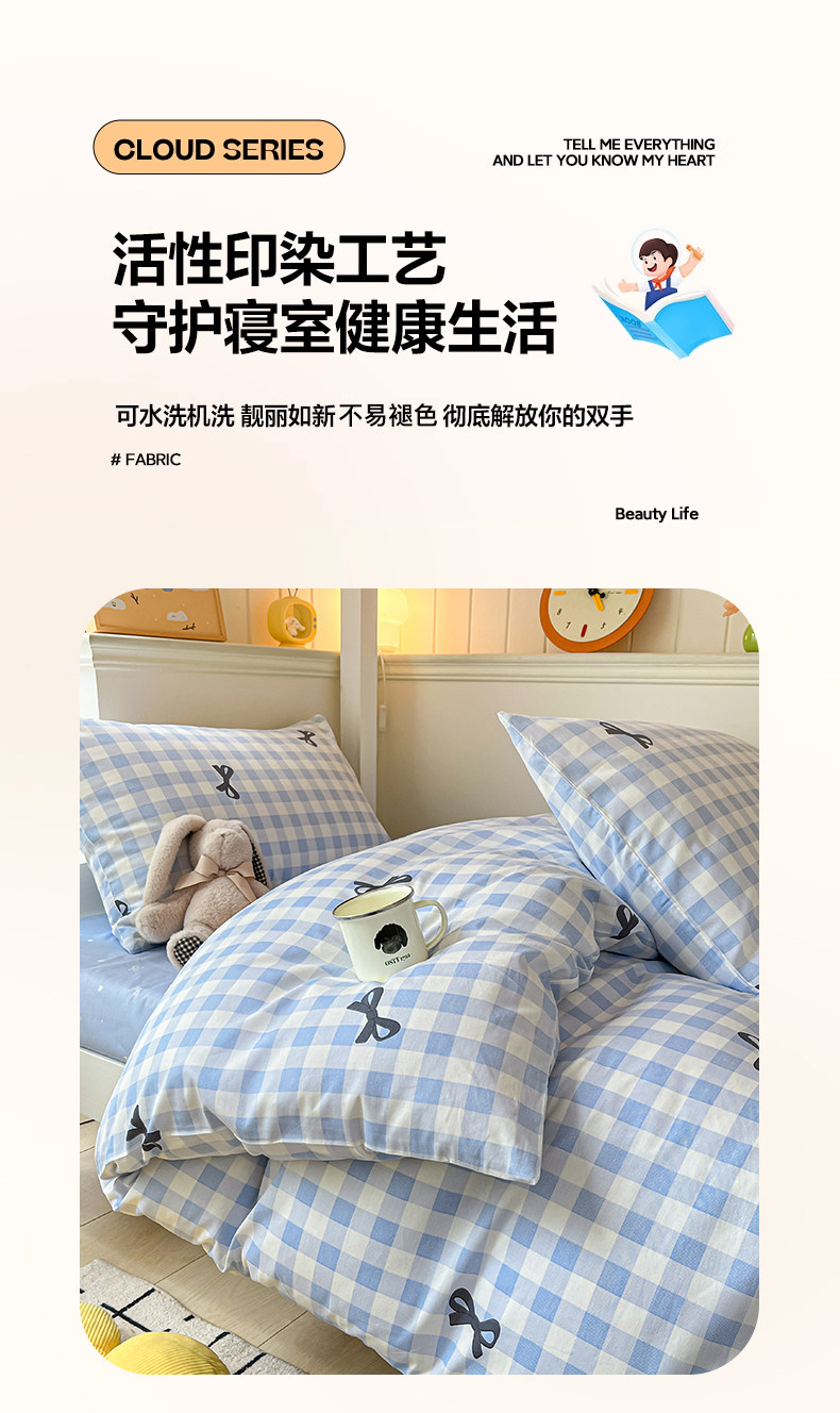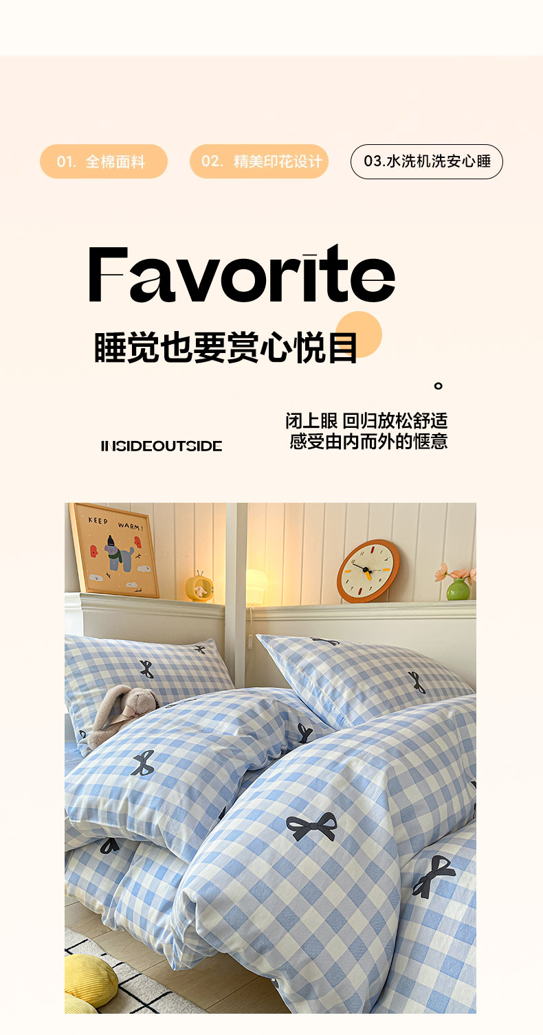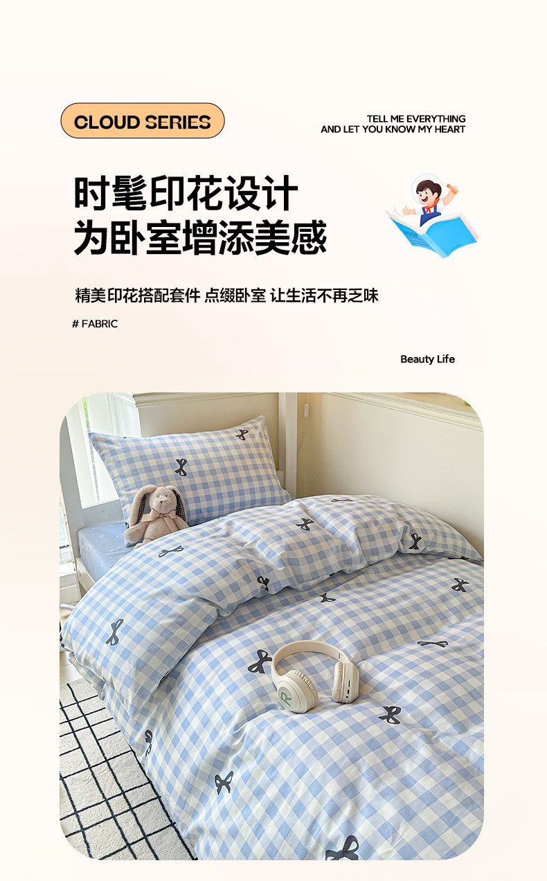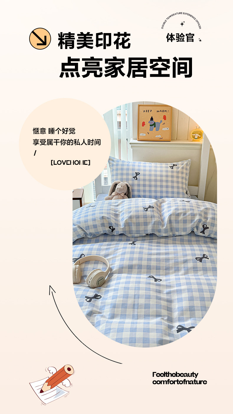 純棉學生宿捨床上三件套ins風床單被罩四件套100全棉床包款單人床