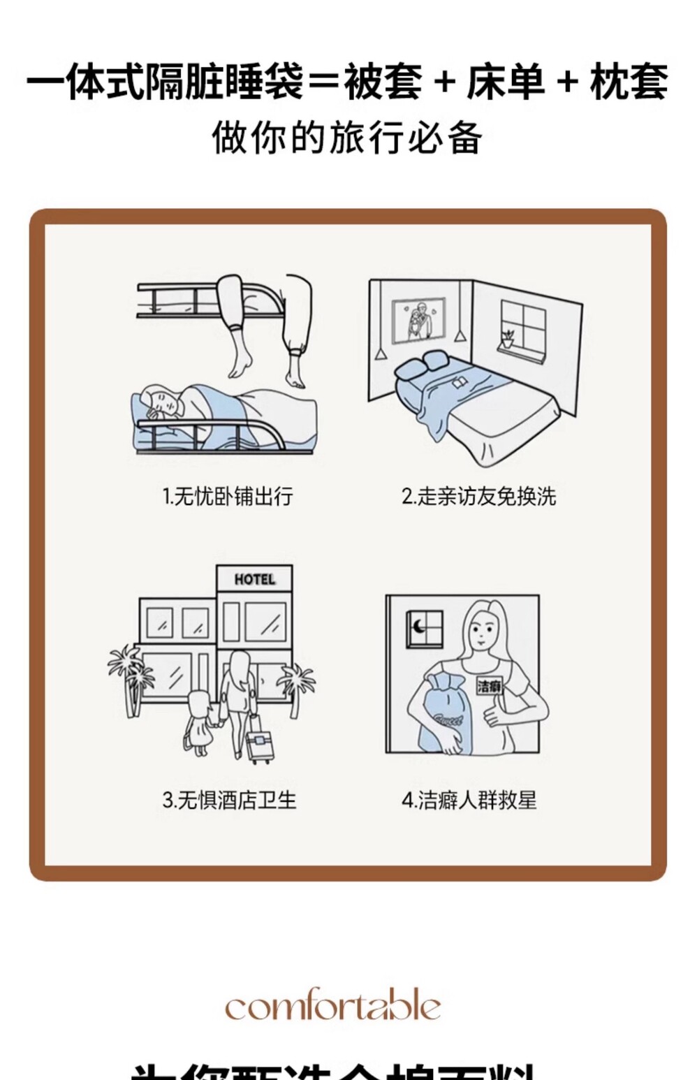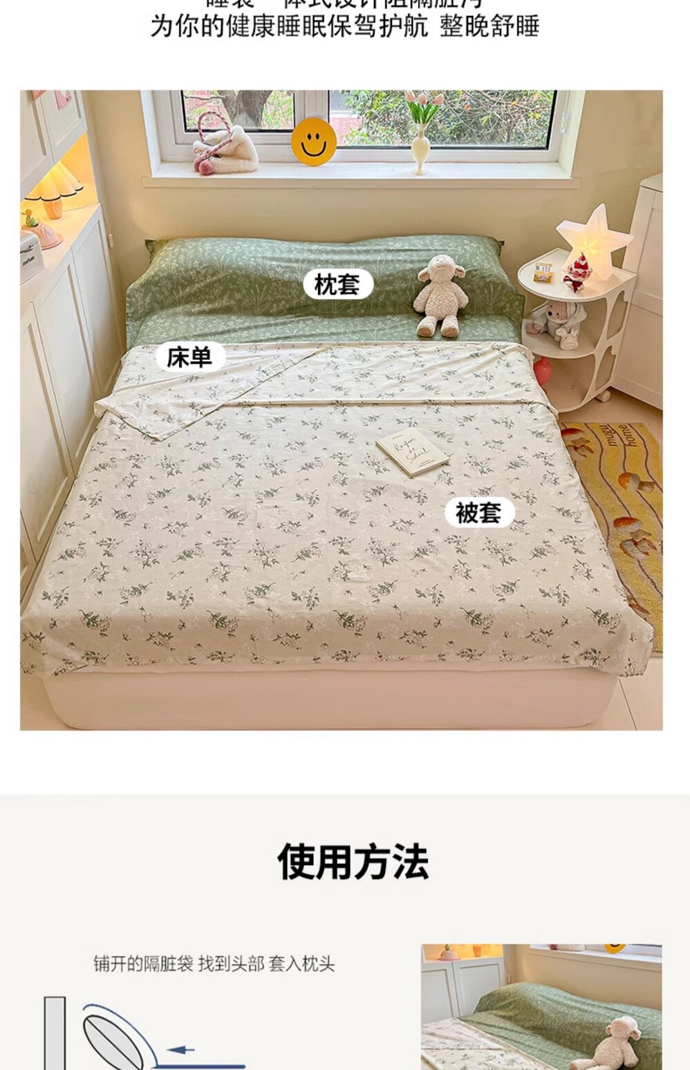 小清新酒店隔髒睡袋純棉床單被套可攜式單雙人出差旅行被罩一體式