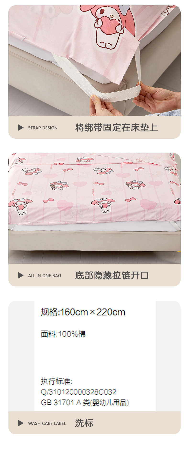 水星家紡兒童隔髒睡袋母嬰A類全棉抗菌床單被套出差旅行可攜式床品