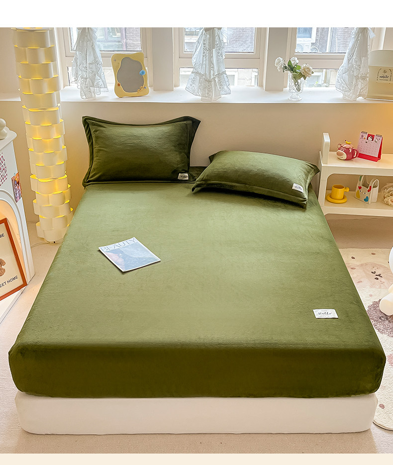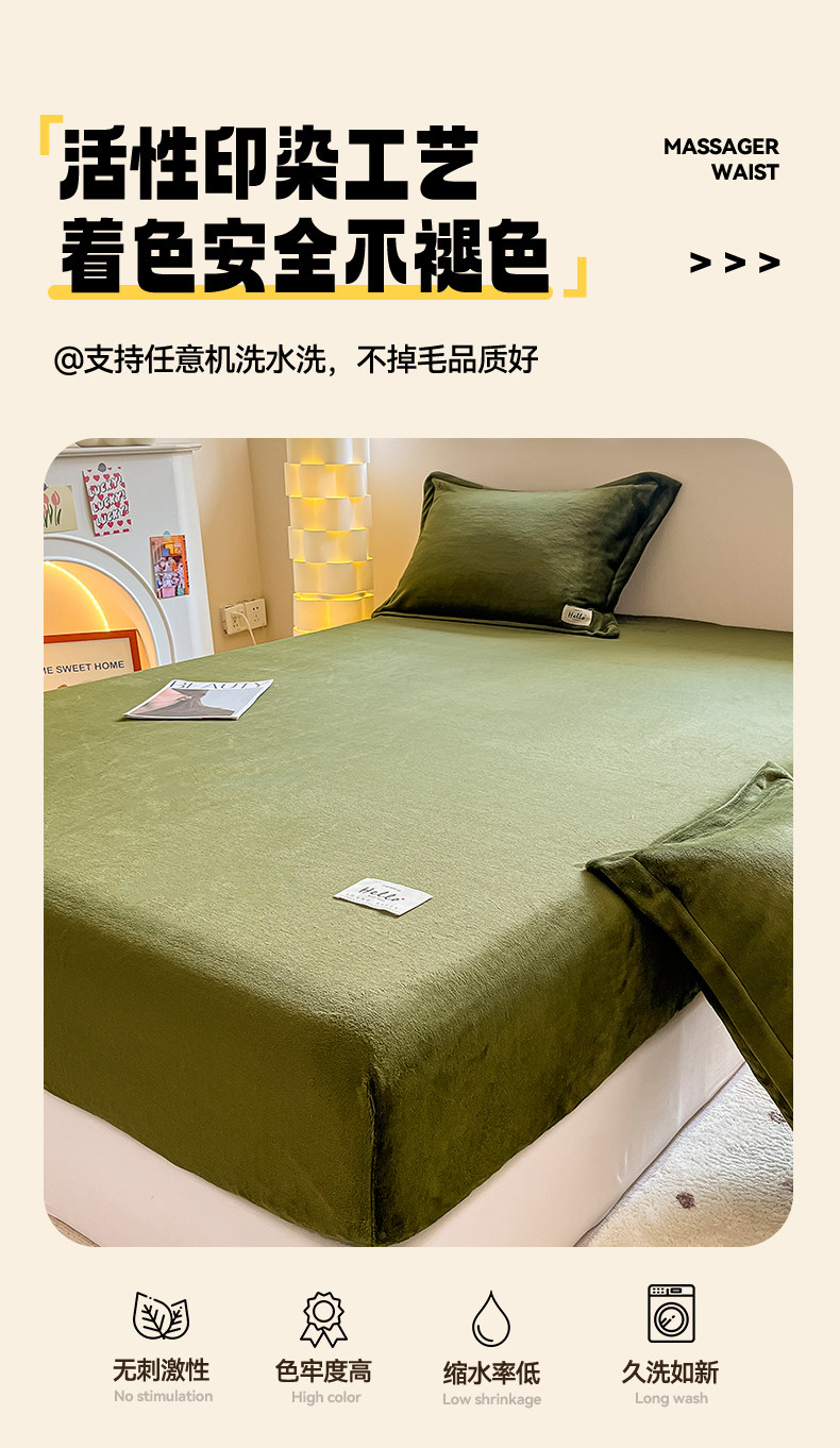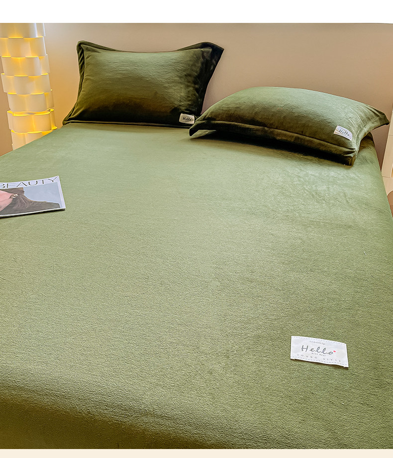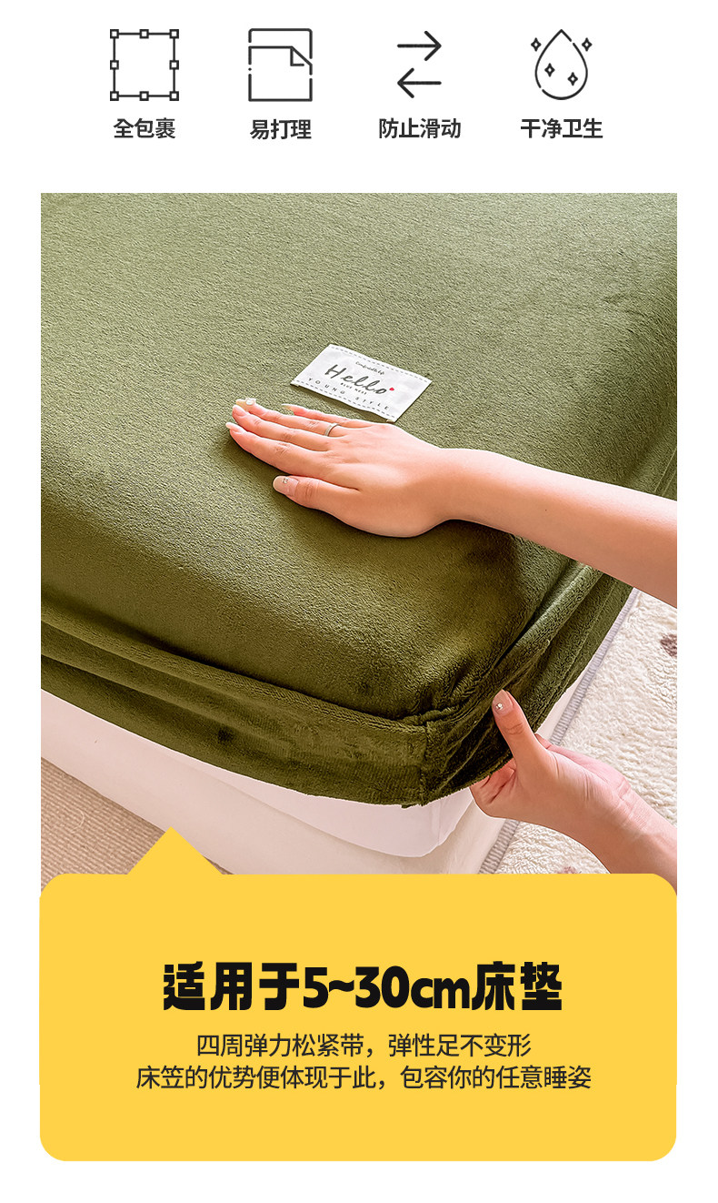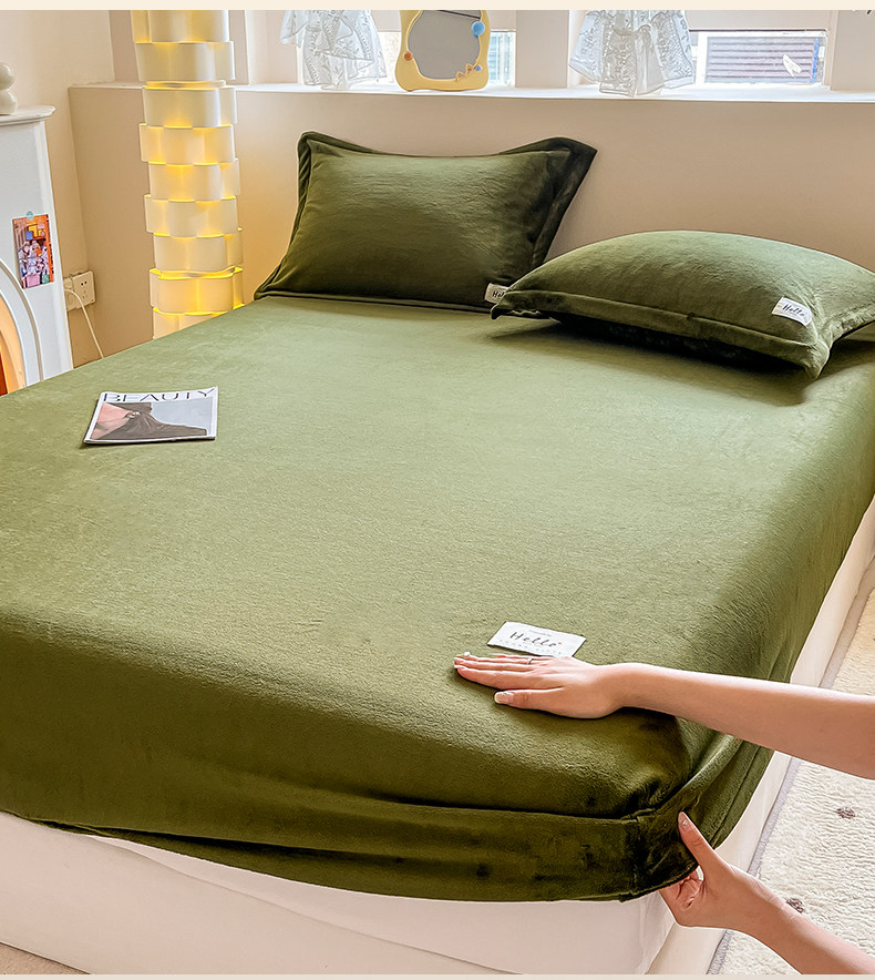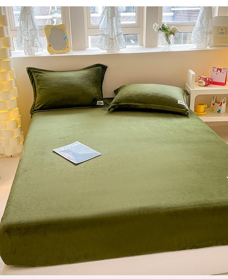 冬季牛奶珊瑚絨床包單件秋冬加絨床罩三件套法蘭絨床單床墊保護罩