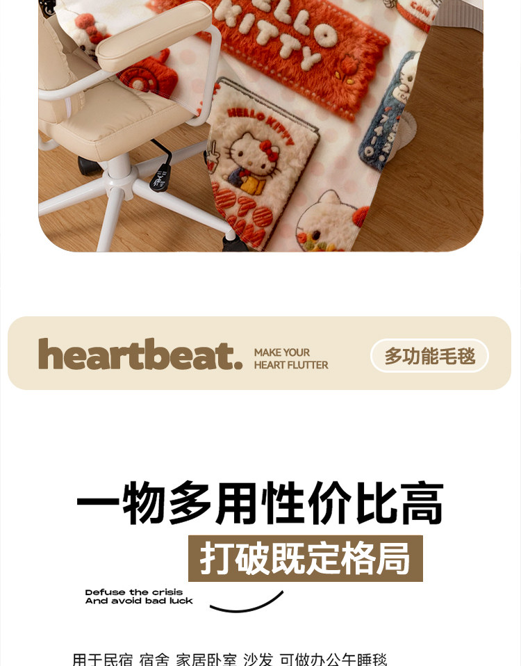 hellokitty凱蒂貓辦公室午休蓋腿毯子柔軟家居毛毯午睡披肩沙發毯