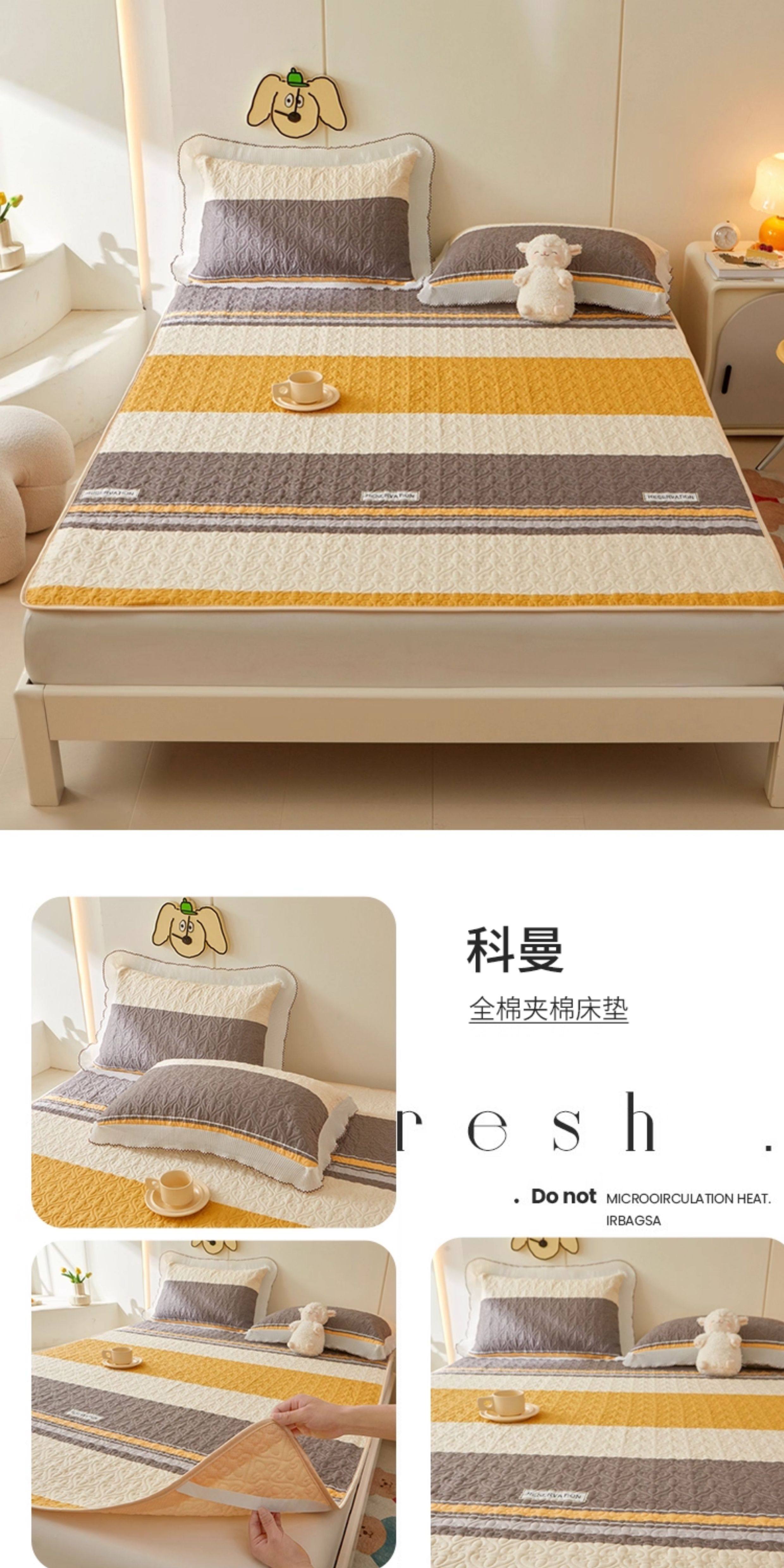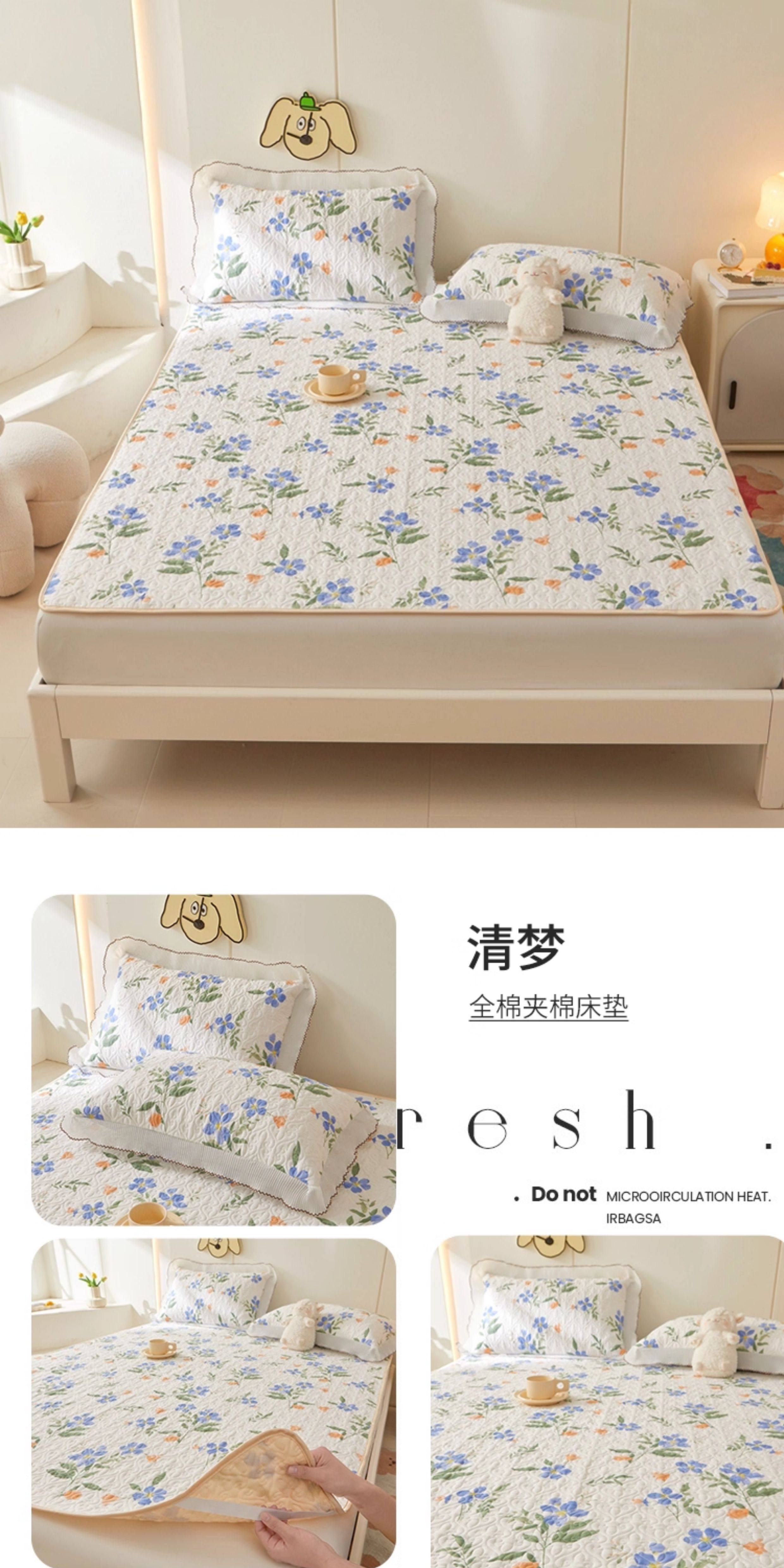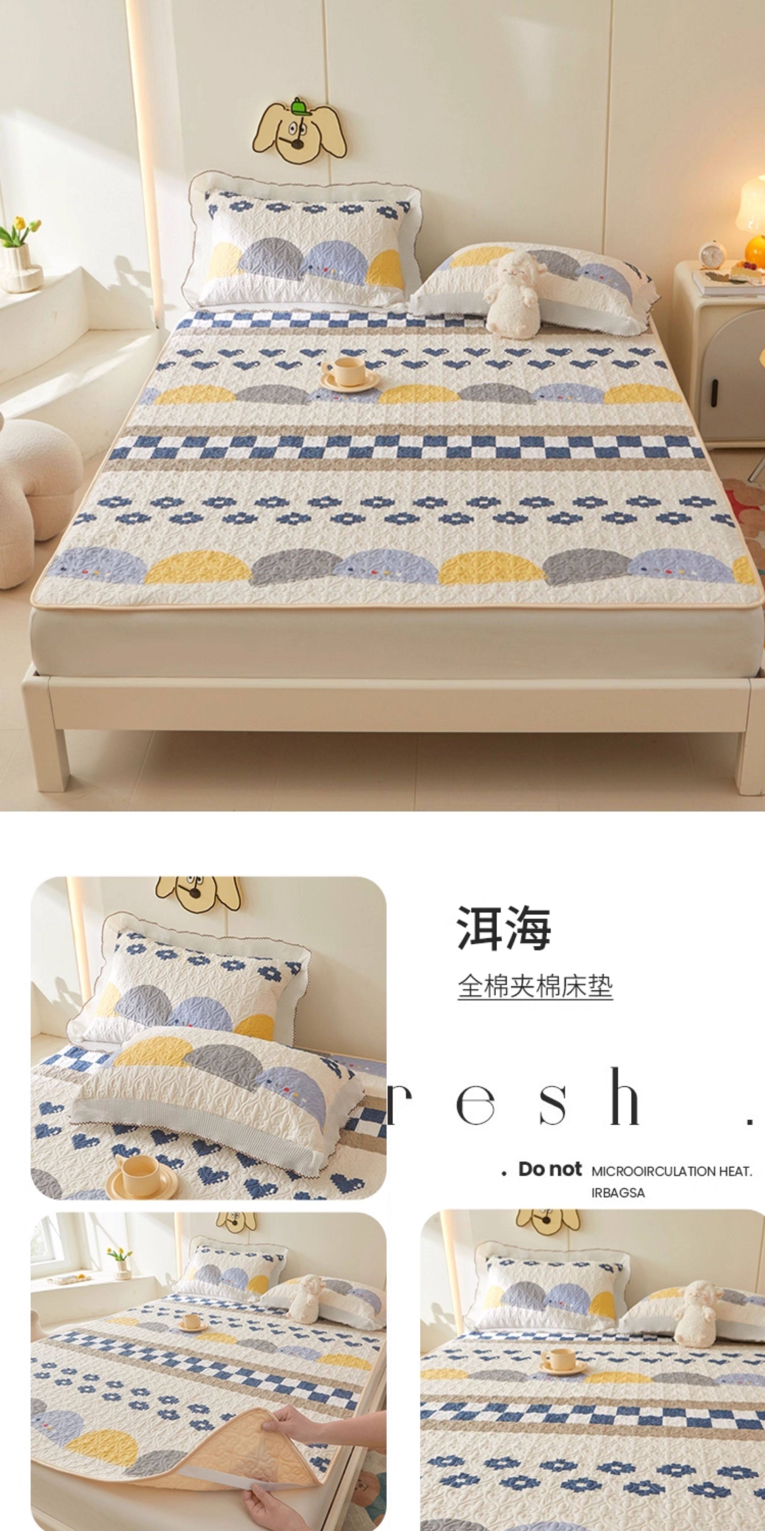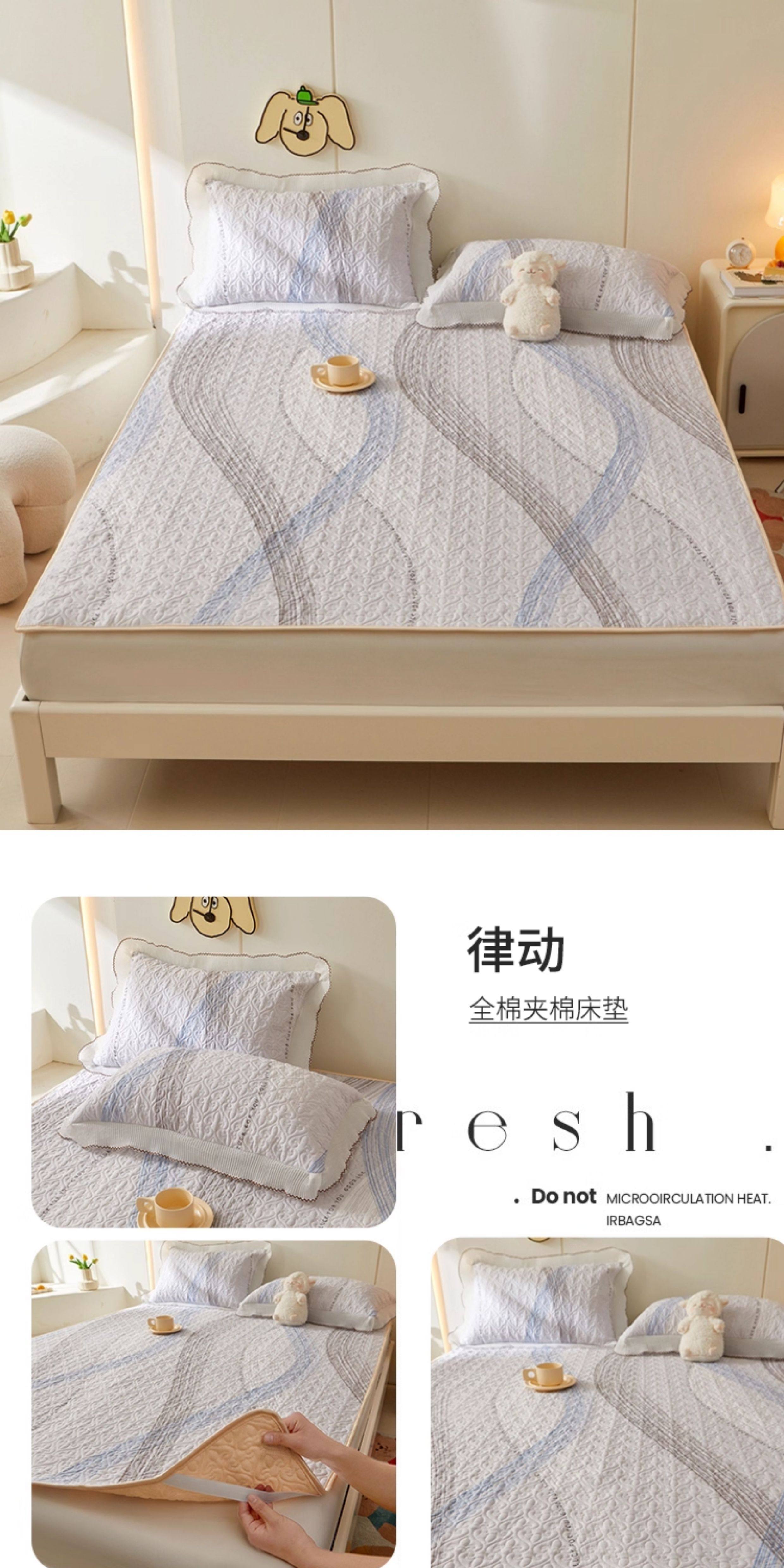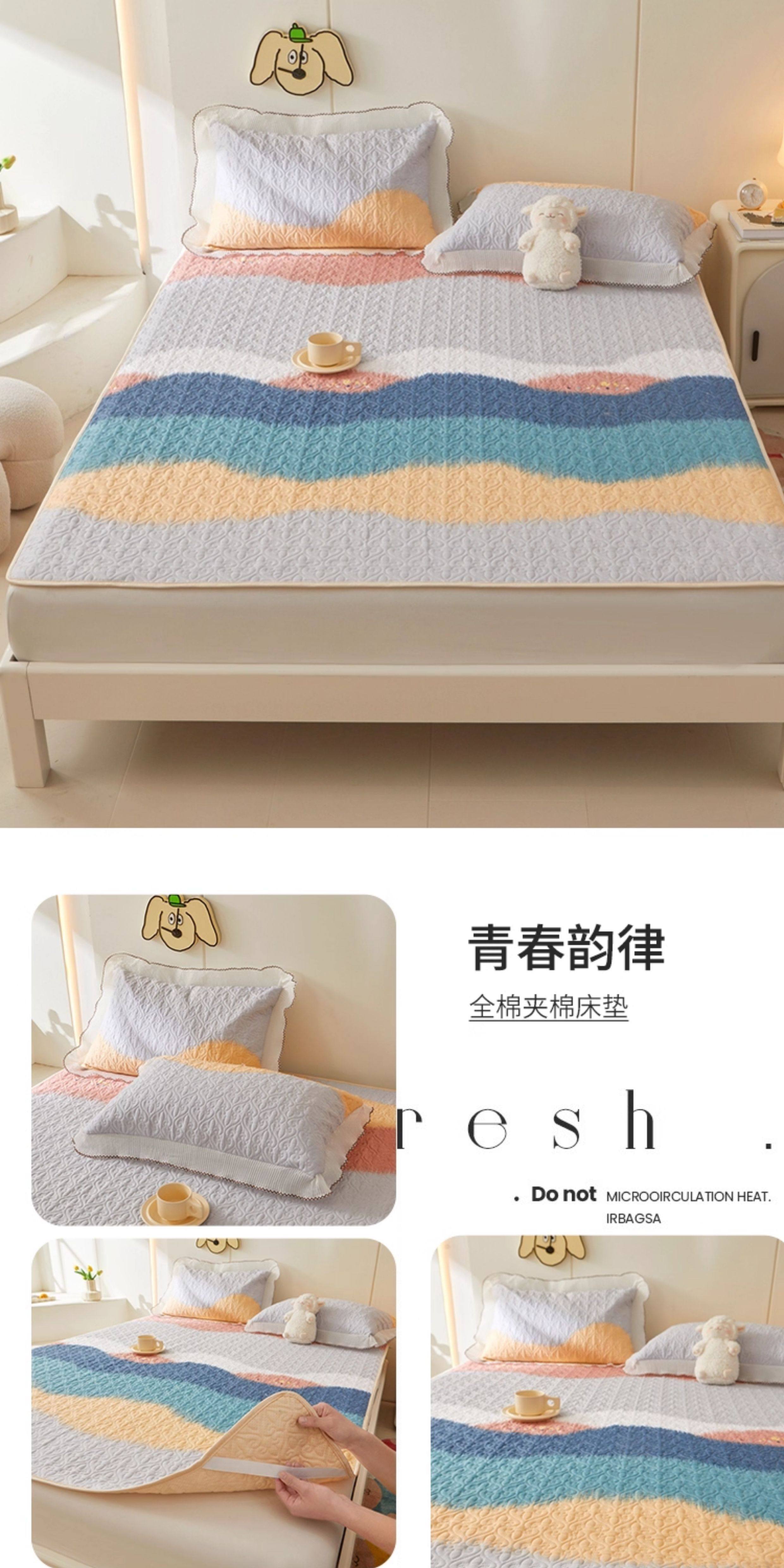 全棉夾棉防滑榻榻米床蓋單件可機洗絎縫床單三件套學生宿捨軟床墊