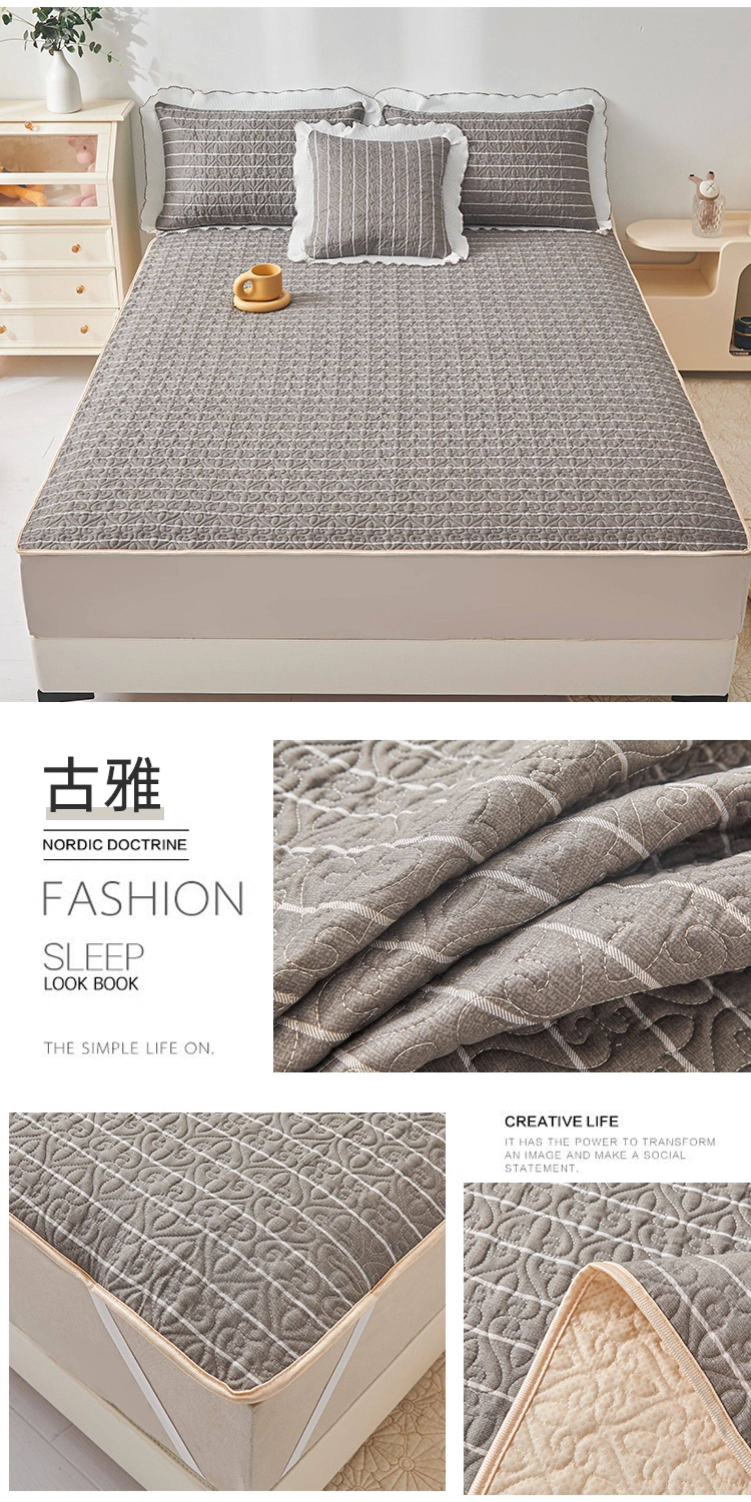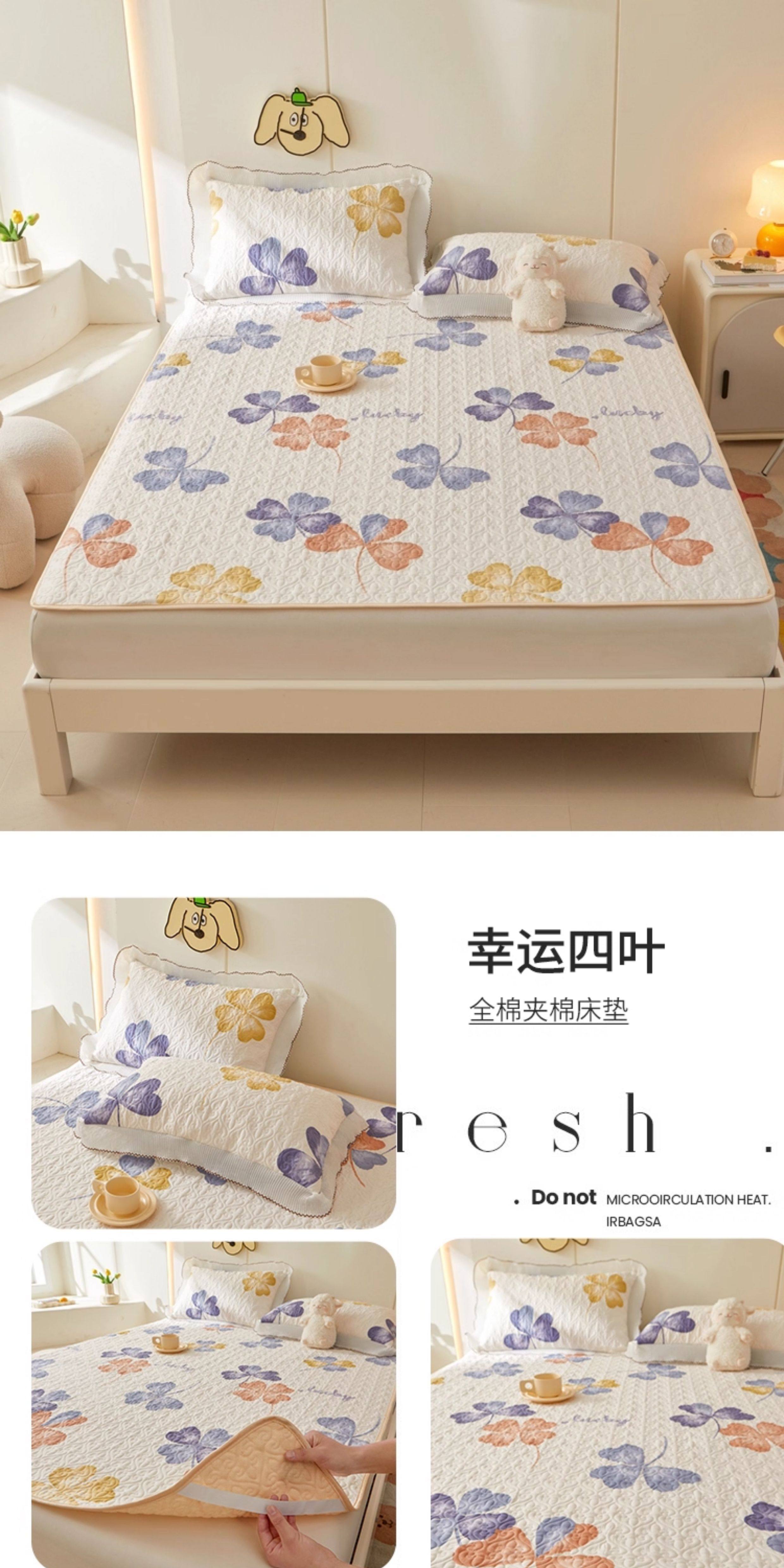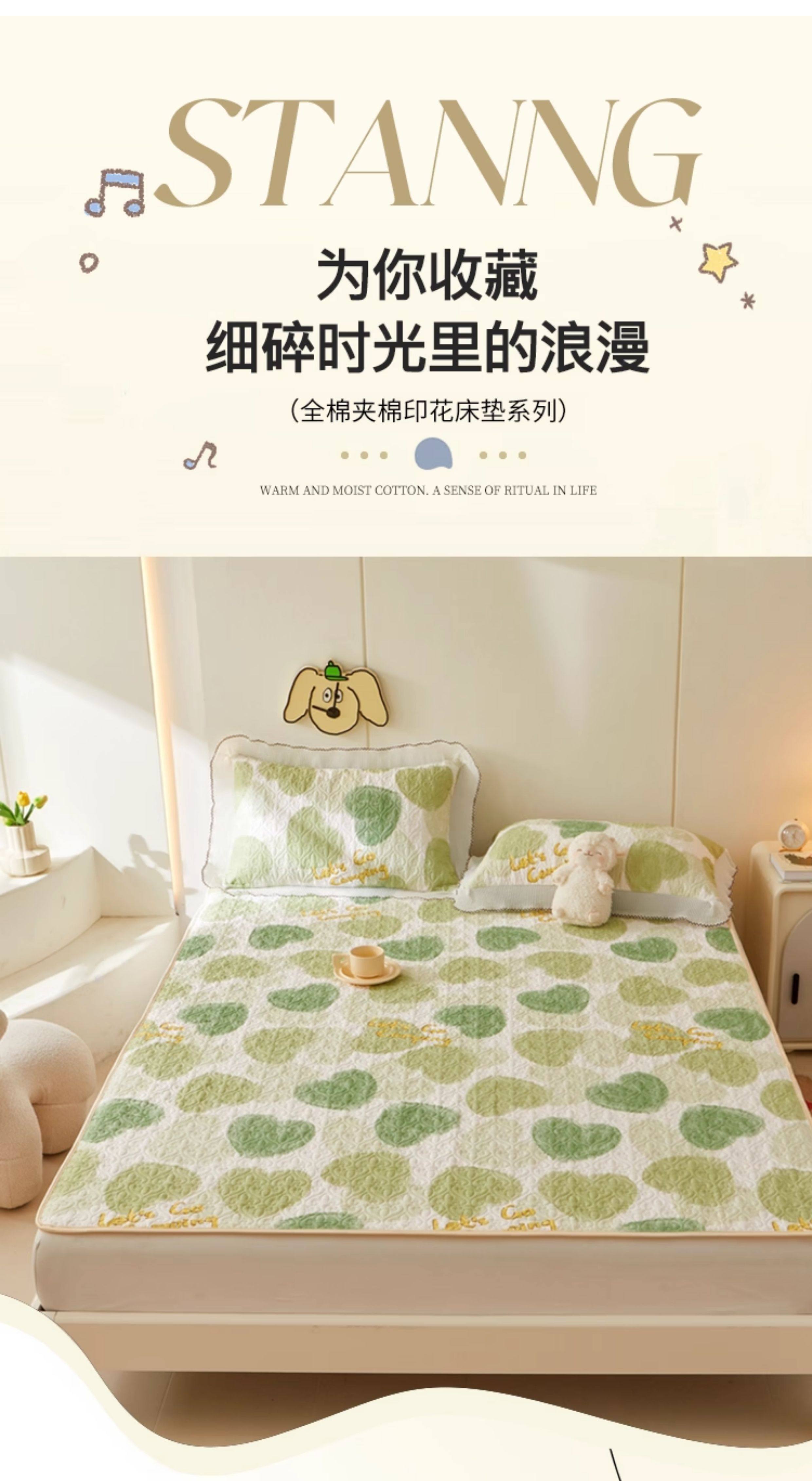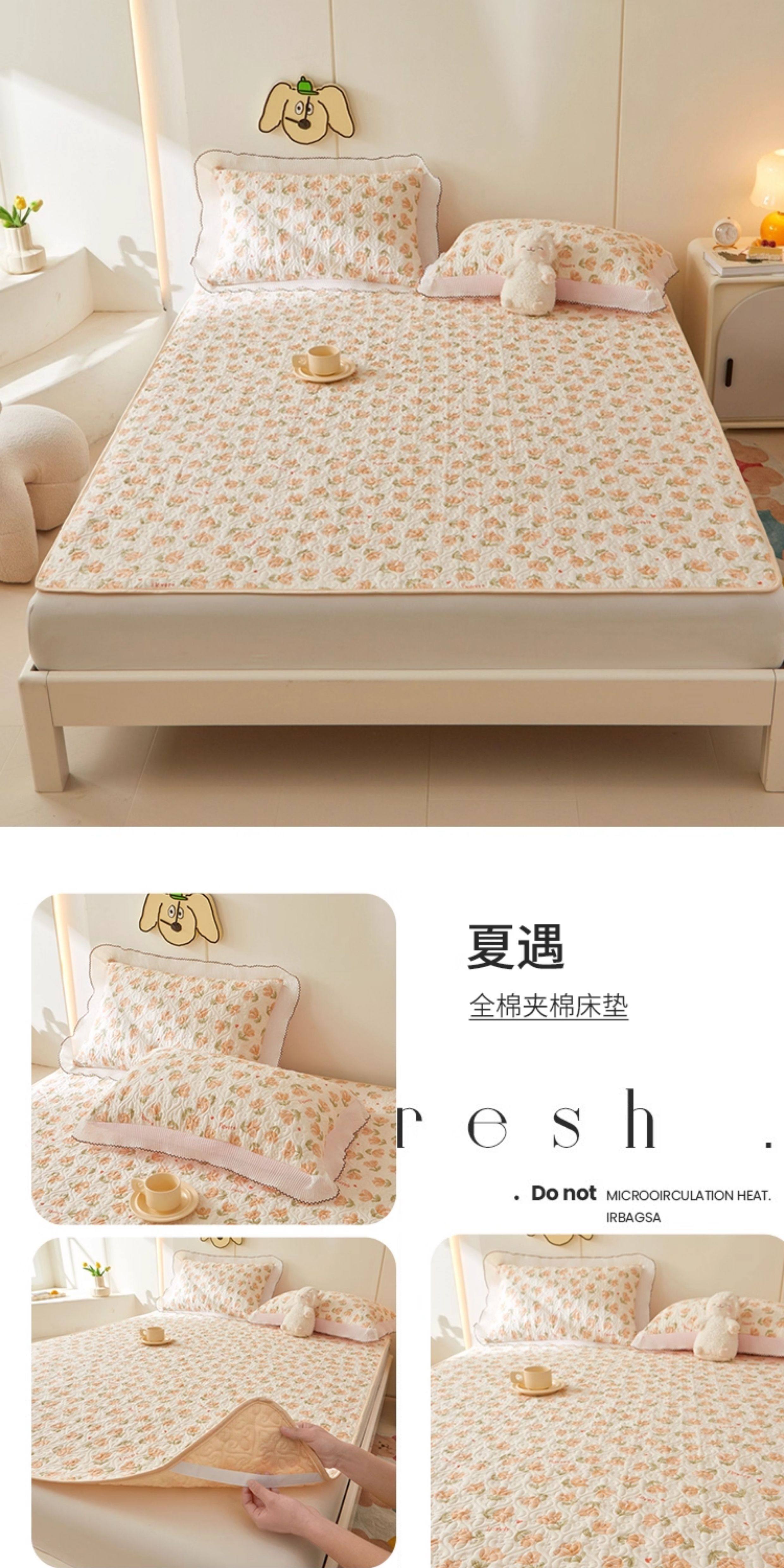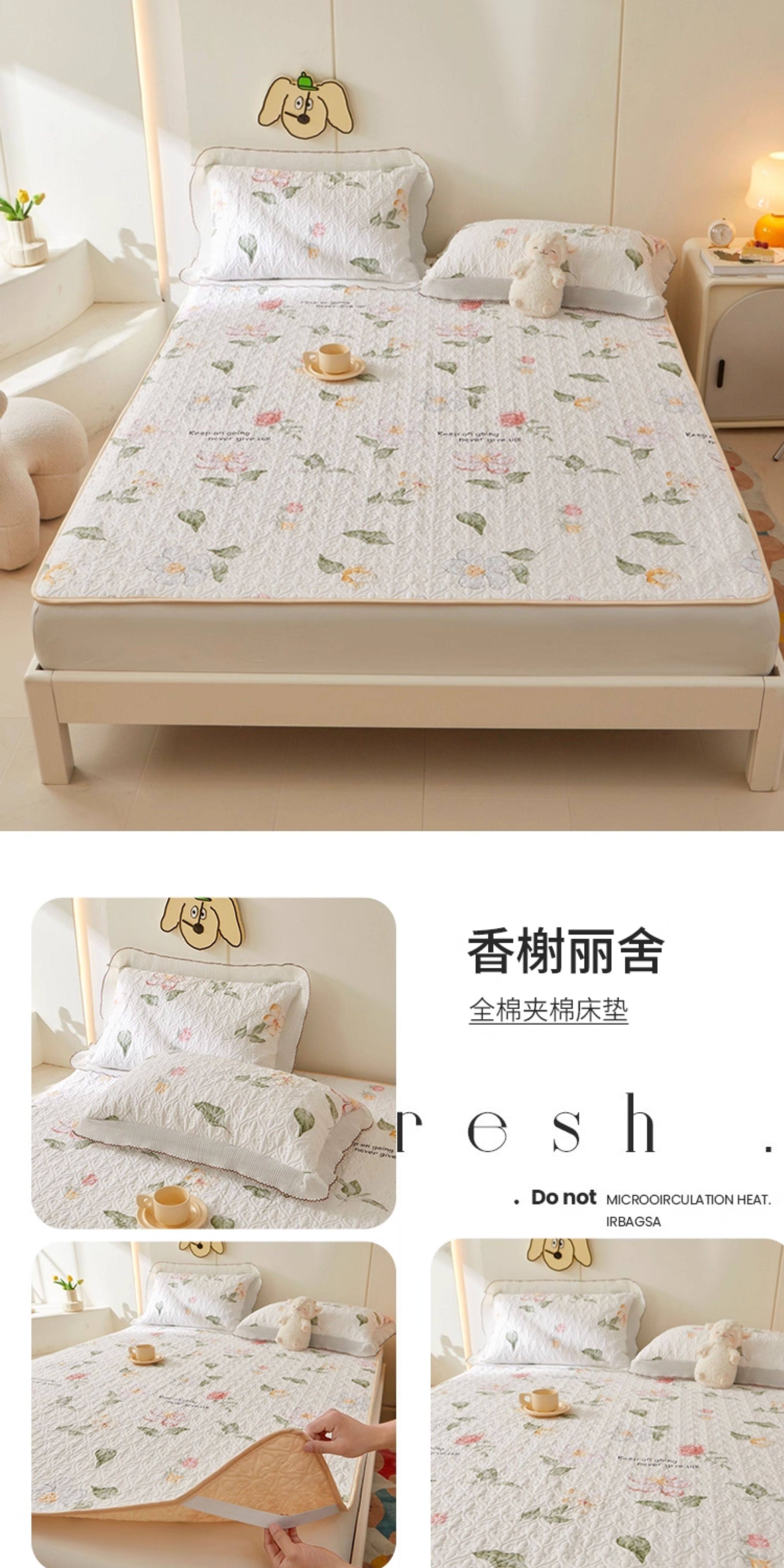 全棉夾棉防滑榻榻米床蓋單件可機洗絎縫床單三件套學生宿捨軟床墊