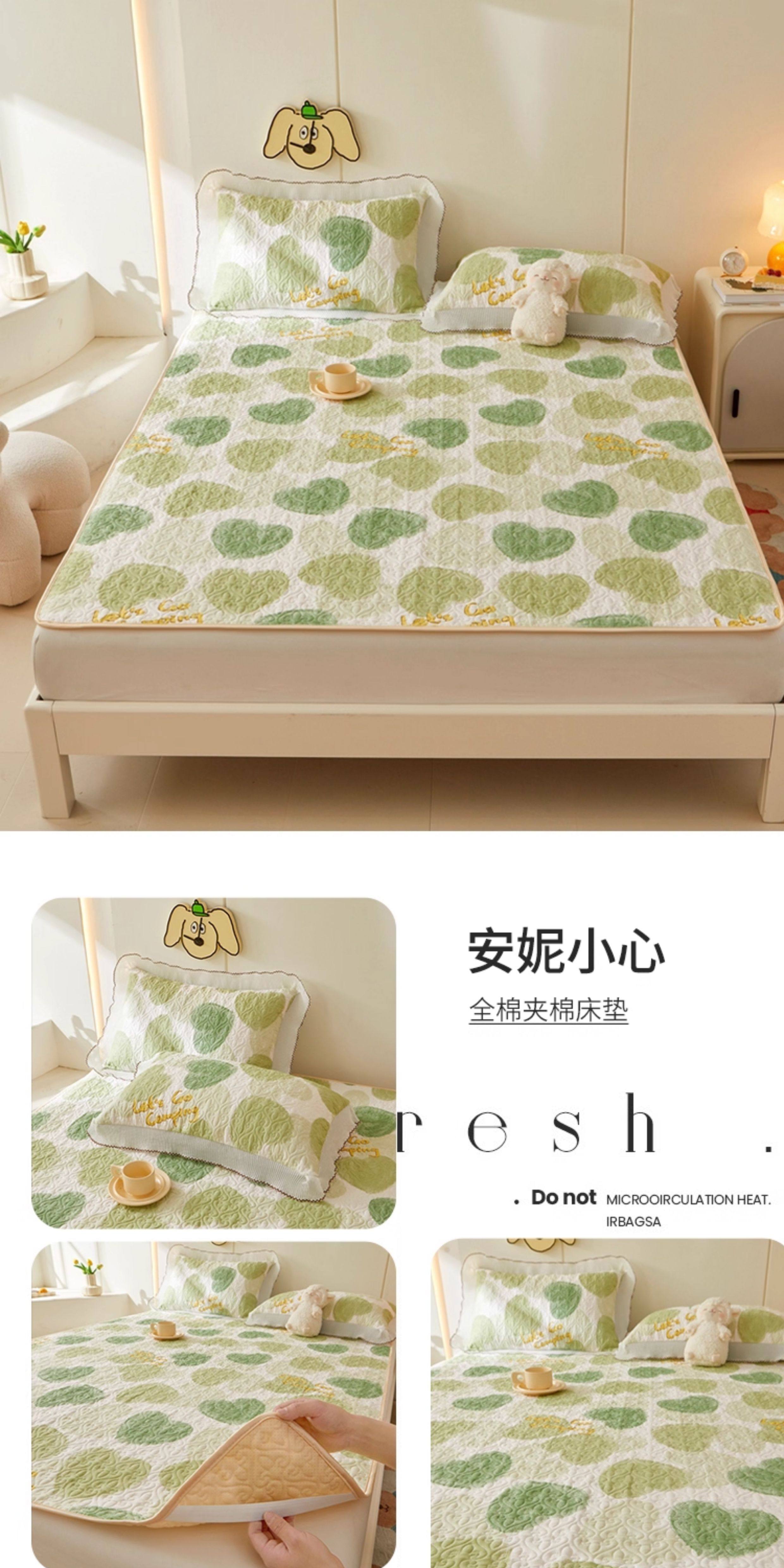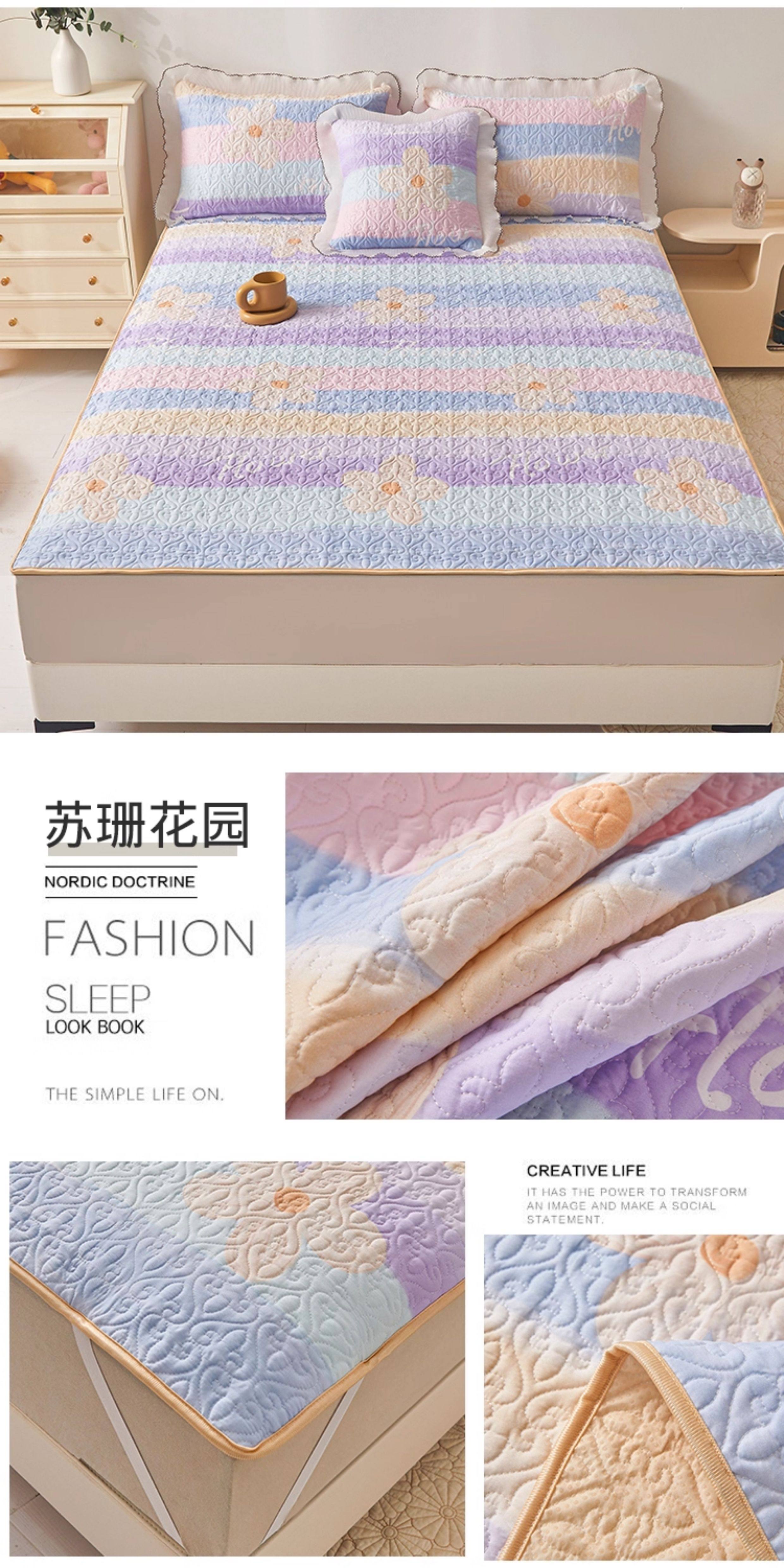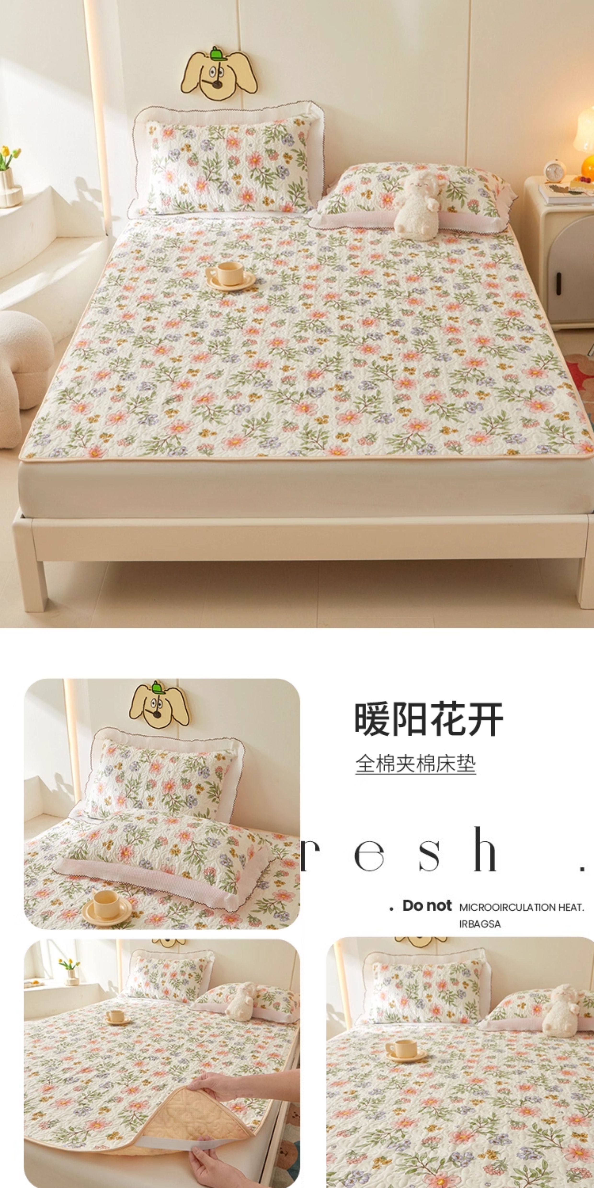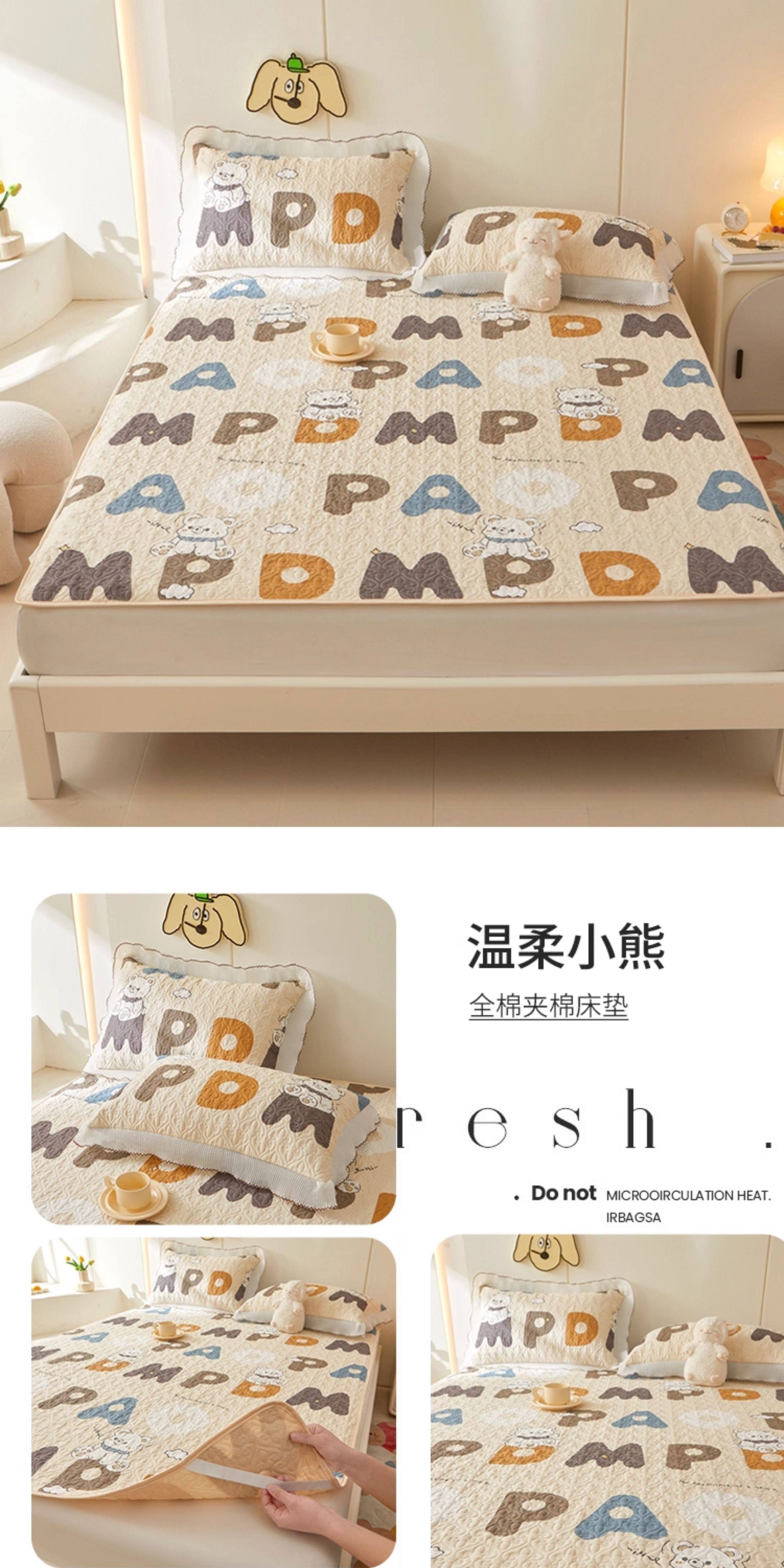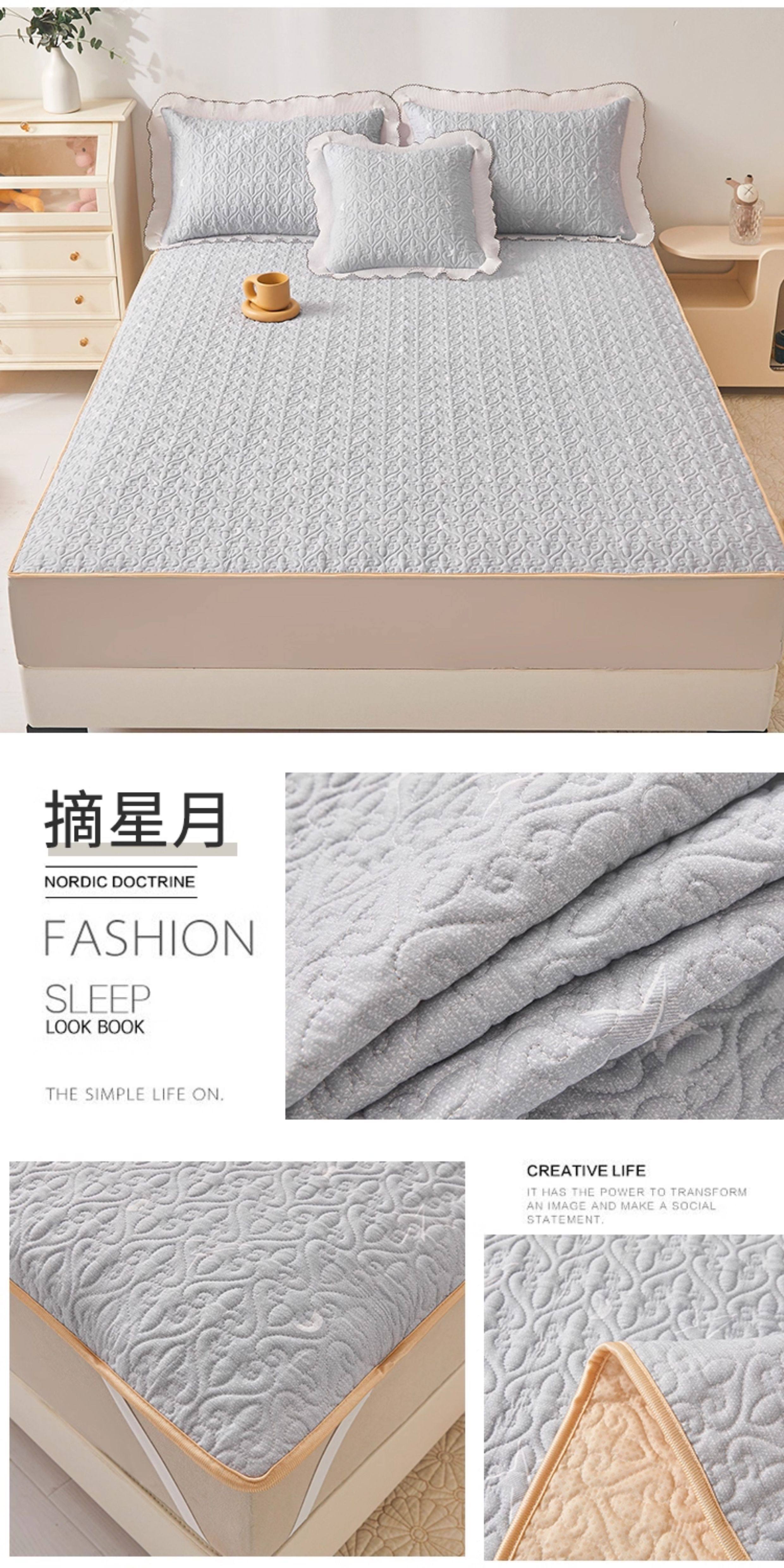 全棉夾棉防滑榻榻米床蓋單件可機洗絎縫床單三件套學生宿捨軟床墊