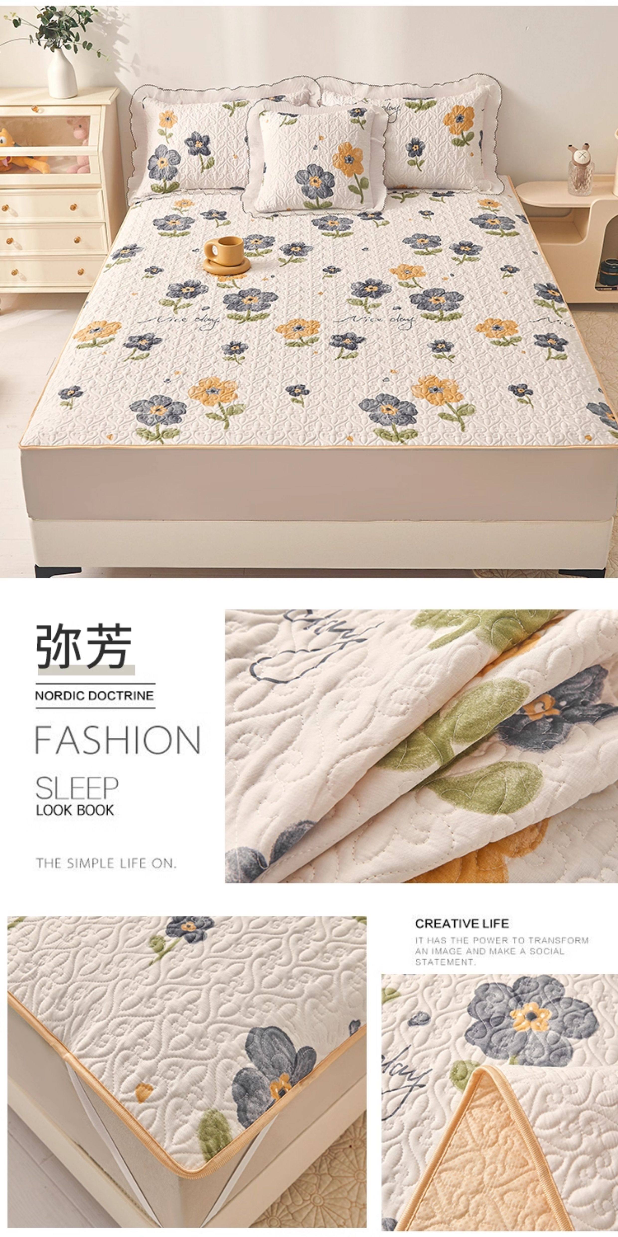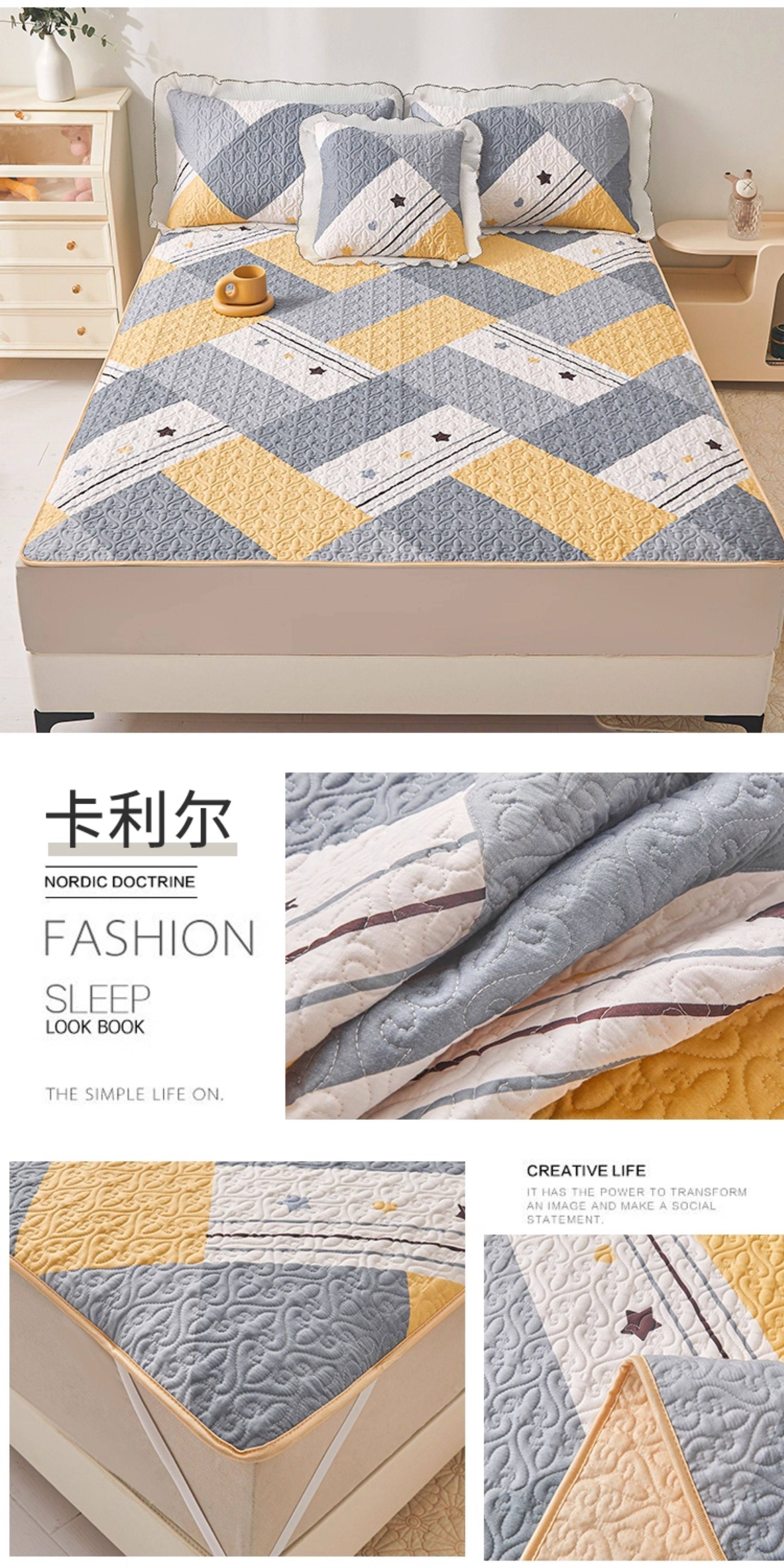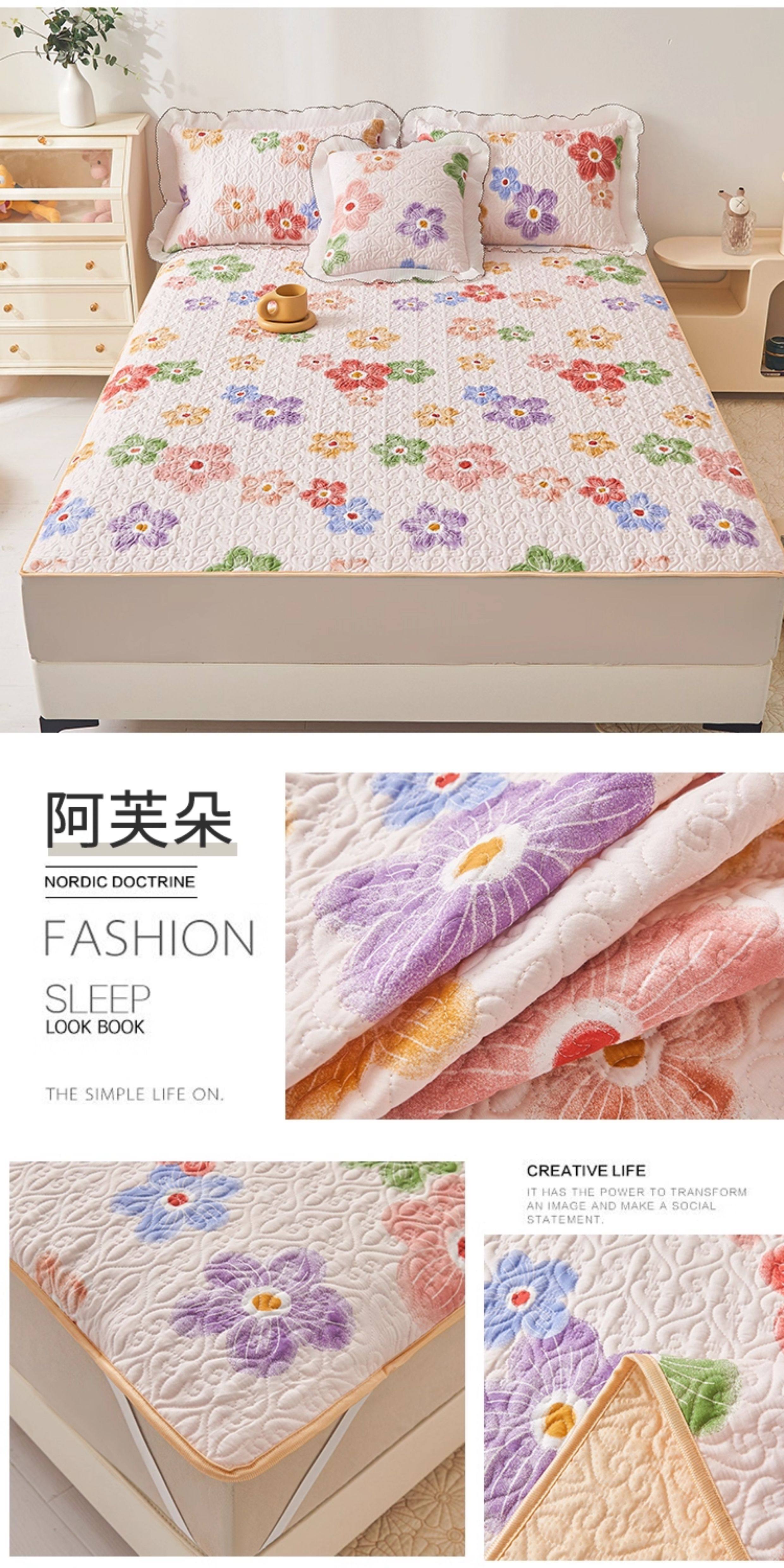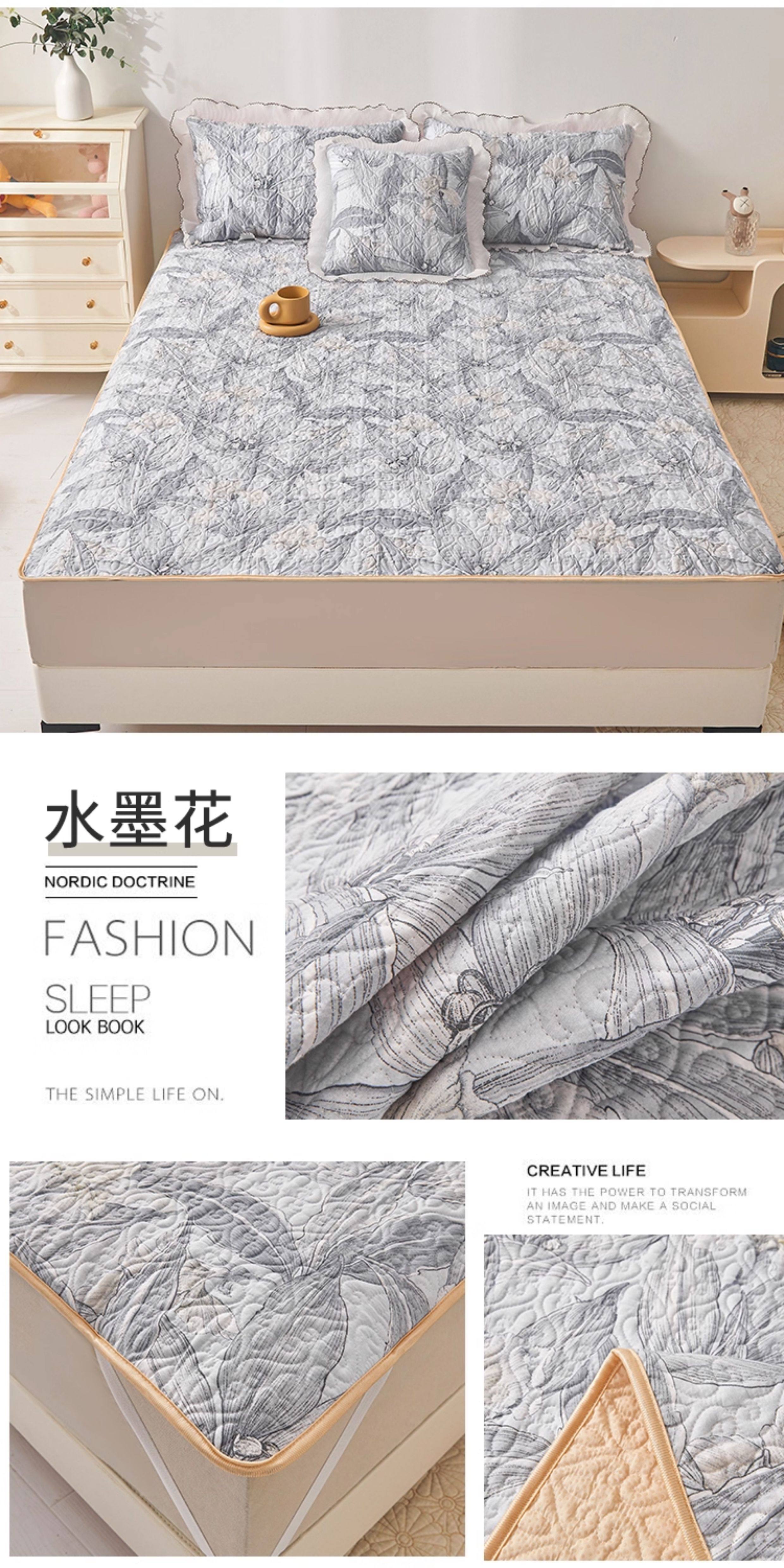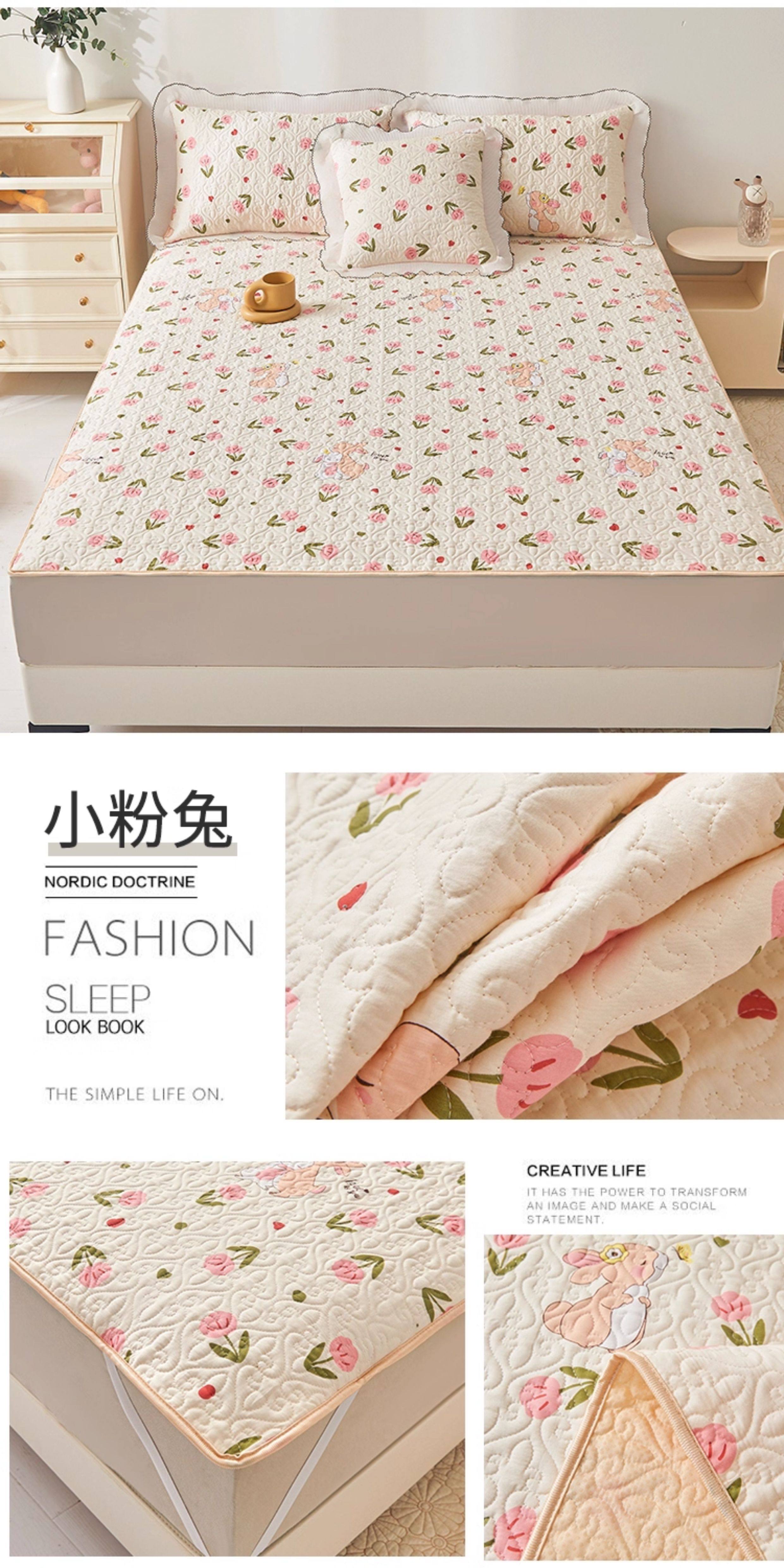 全棉夾棉防滑榻榻米床蓋單件可機洗絎縫床單三件套學生宿捨軟床墊