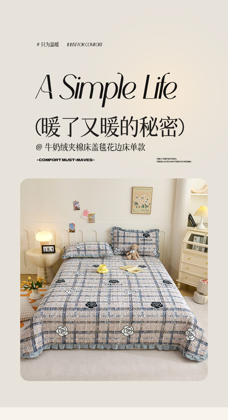 2026新款牛奶絨床蓋床墊床單冬季加絨毯防滑加厚毯毛毯三件套夾棉