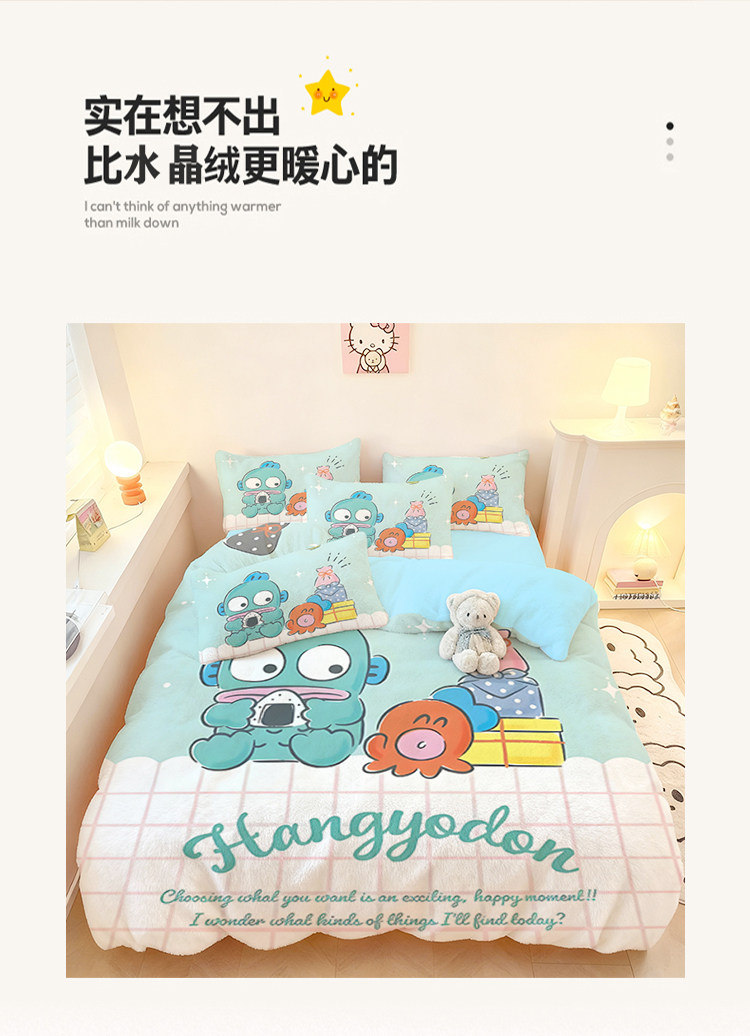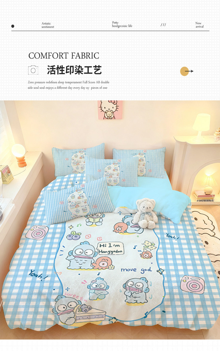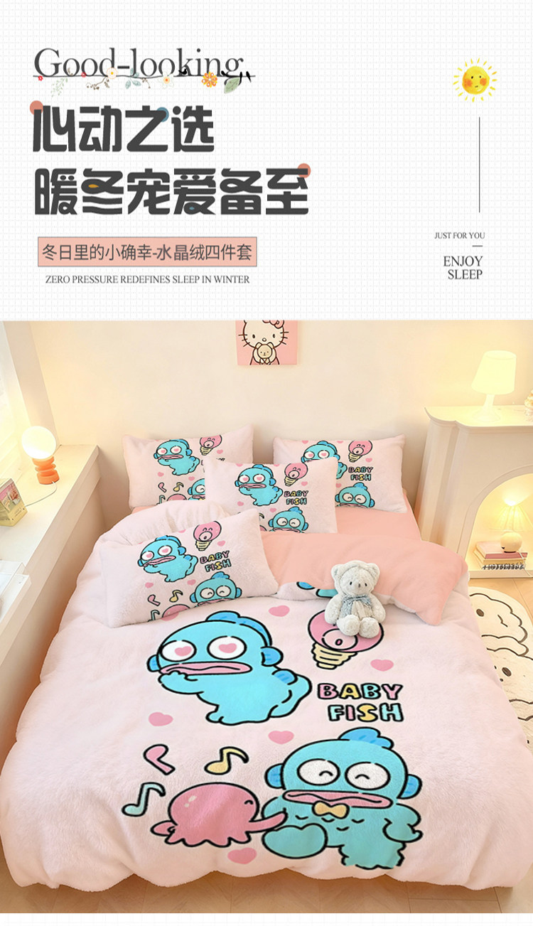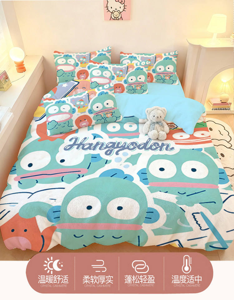 醜魚漢頓四件套水晶絨保暖學生宿捨家用冬季加厚單品被套三件套