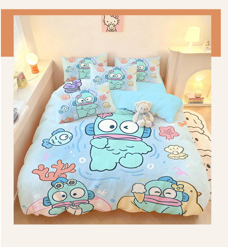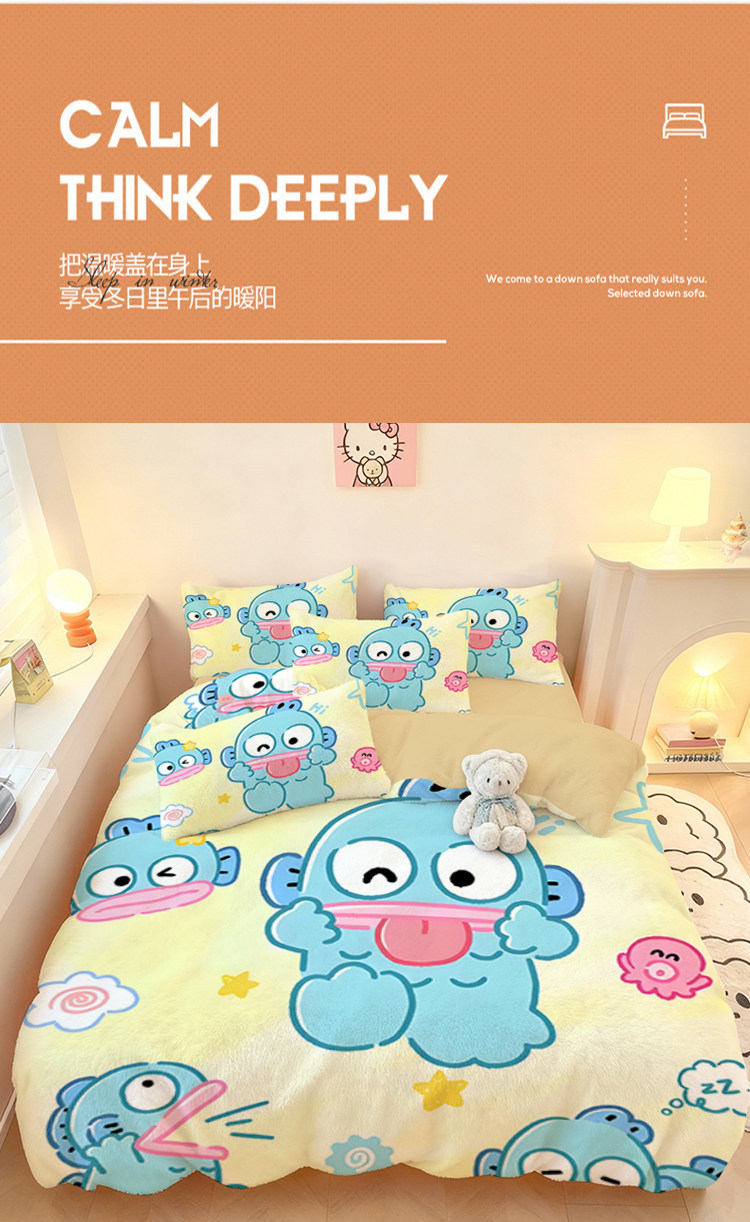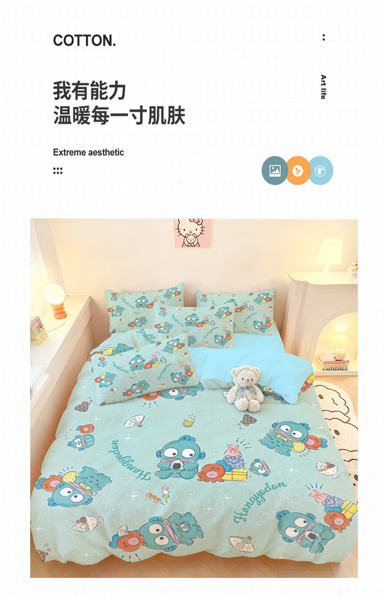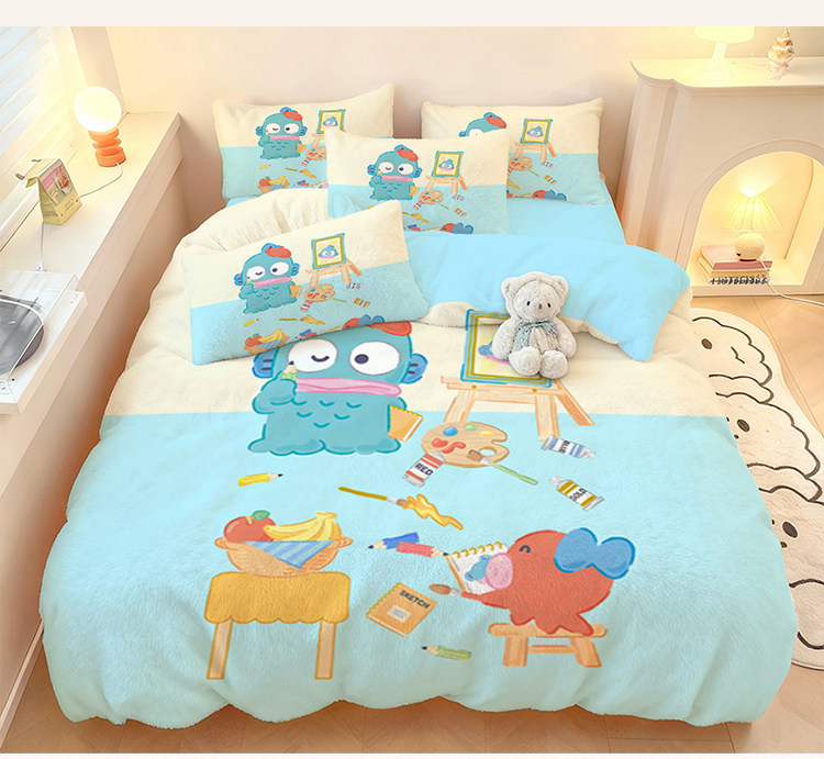 醜魚漢頓四件套水晶絨保暖學生宿捨家用冬季加厚單品被套三件套