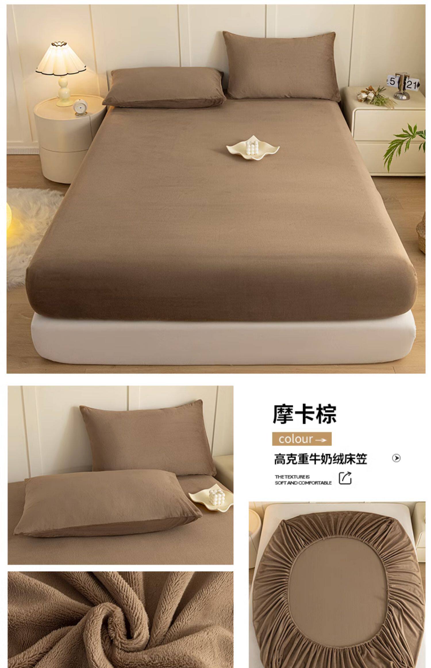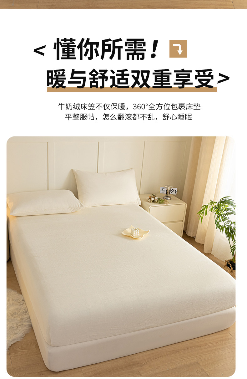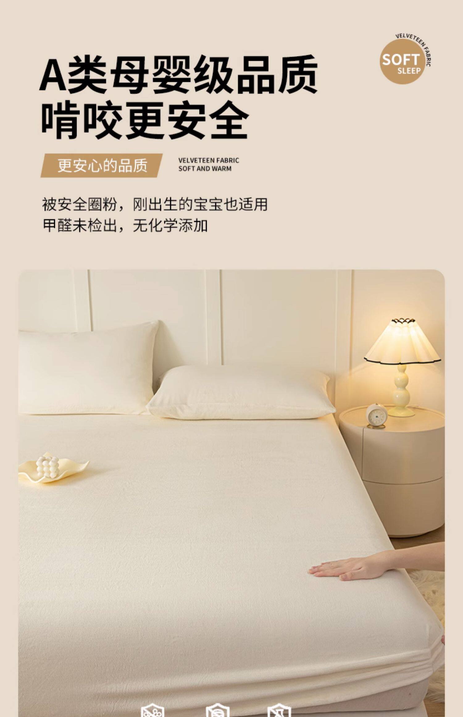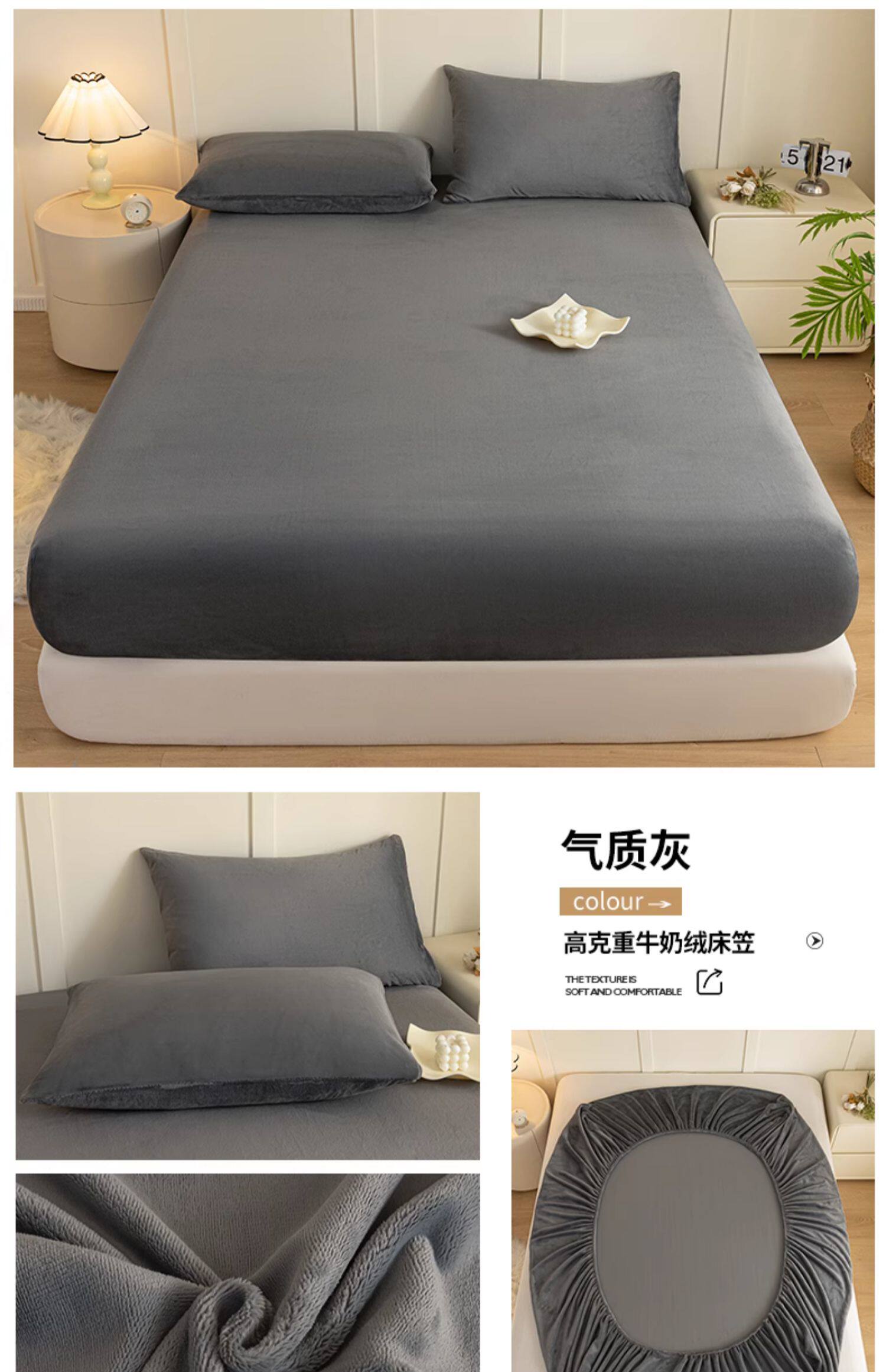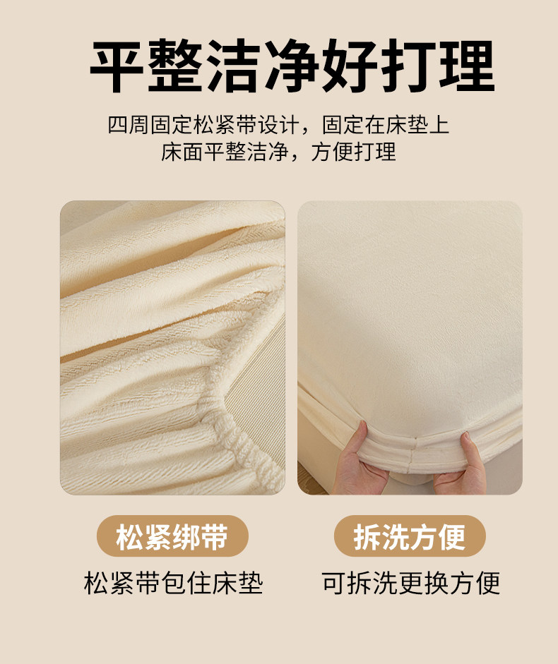加厚牛奶絨床包單件冬季加絨床罩床墊保護罩套珊瑚法蘭絨床套防塵