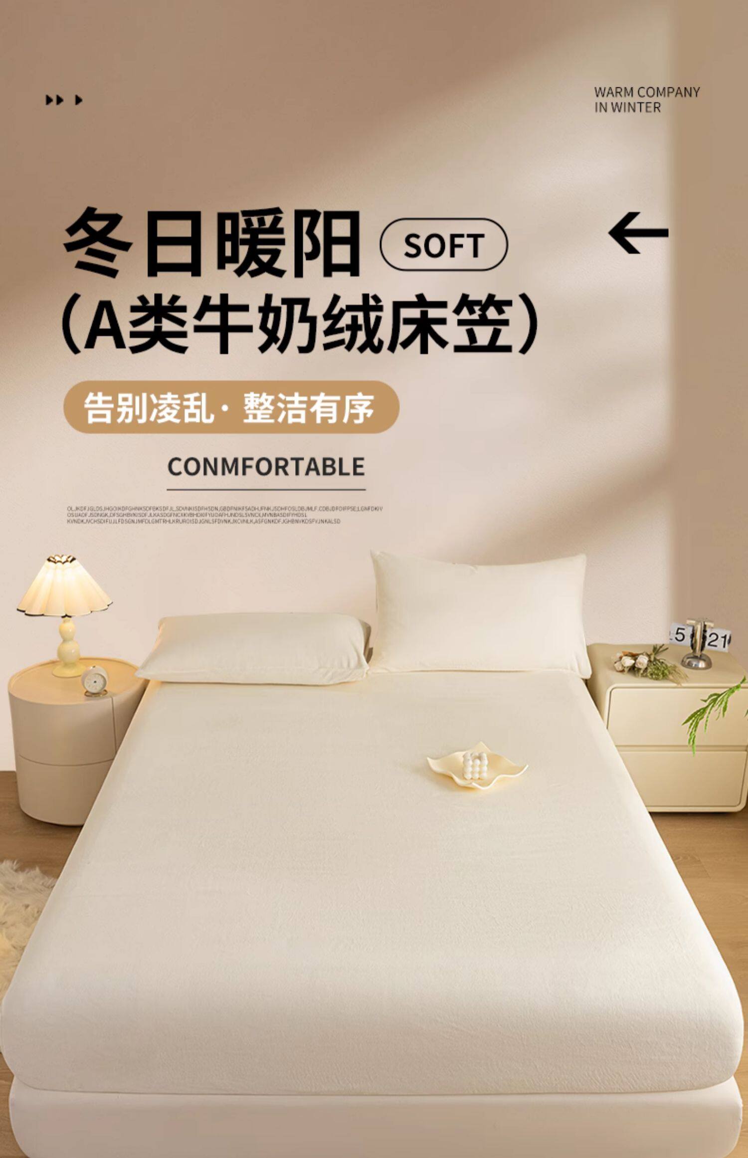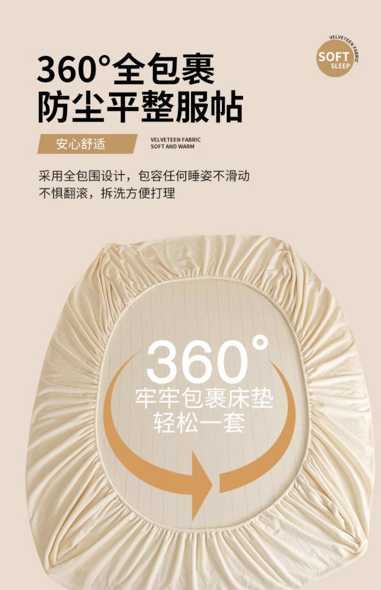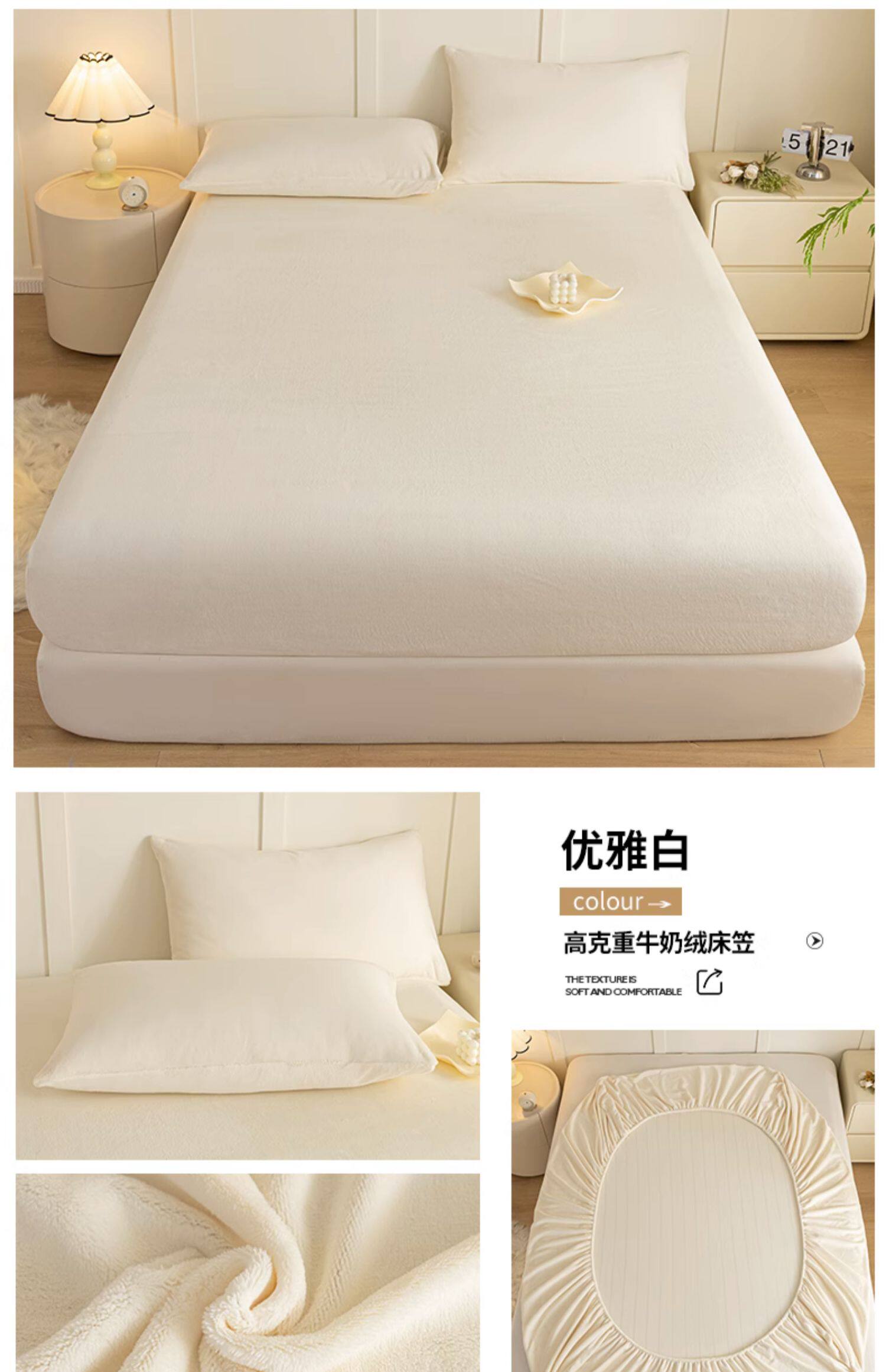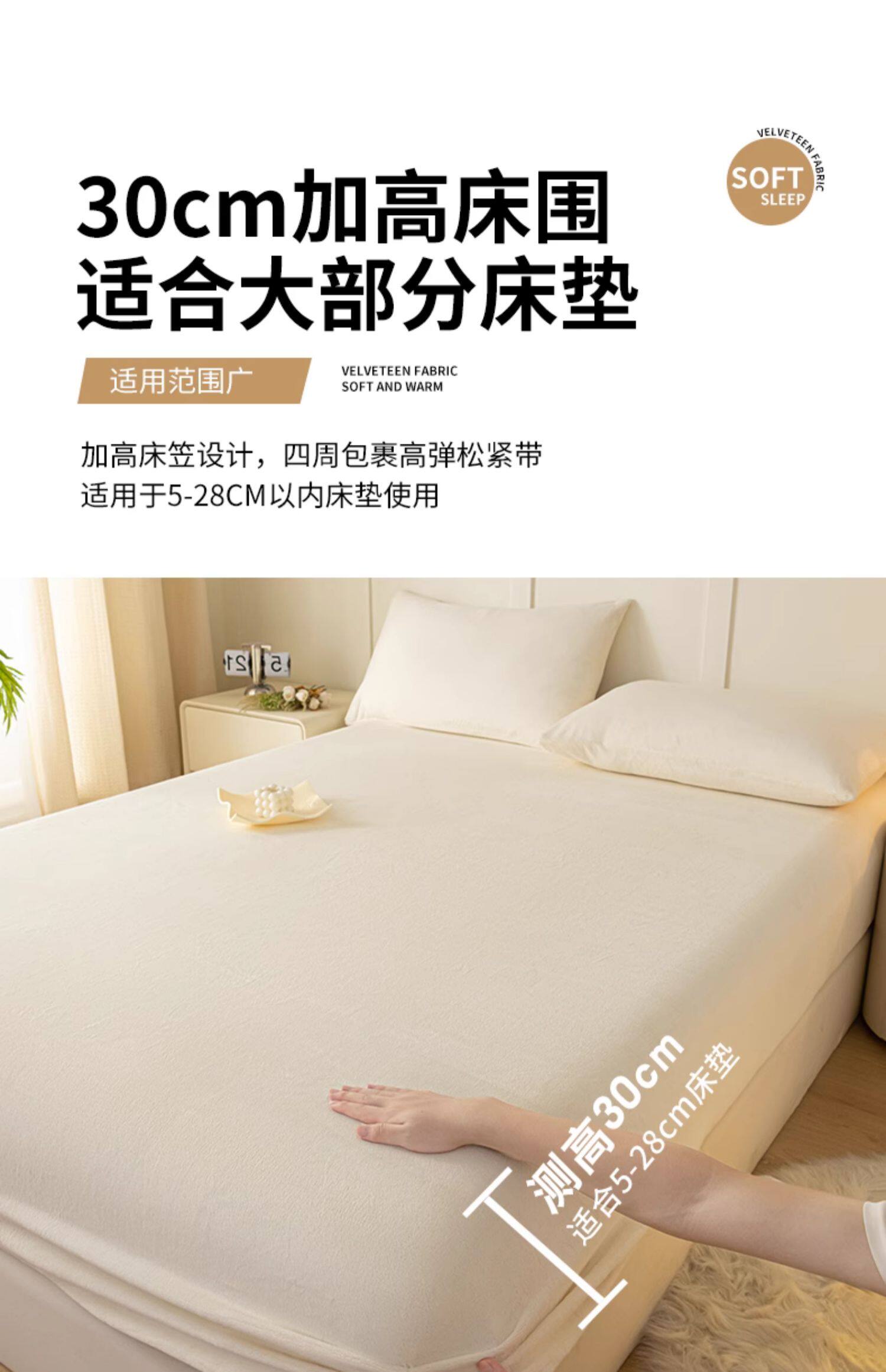 加厚牛奶絨床包單件冬季加絨床罩床墊保護罩套珊瑚法蘭絨床套防塵