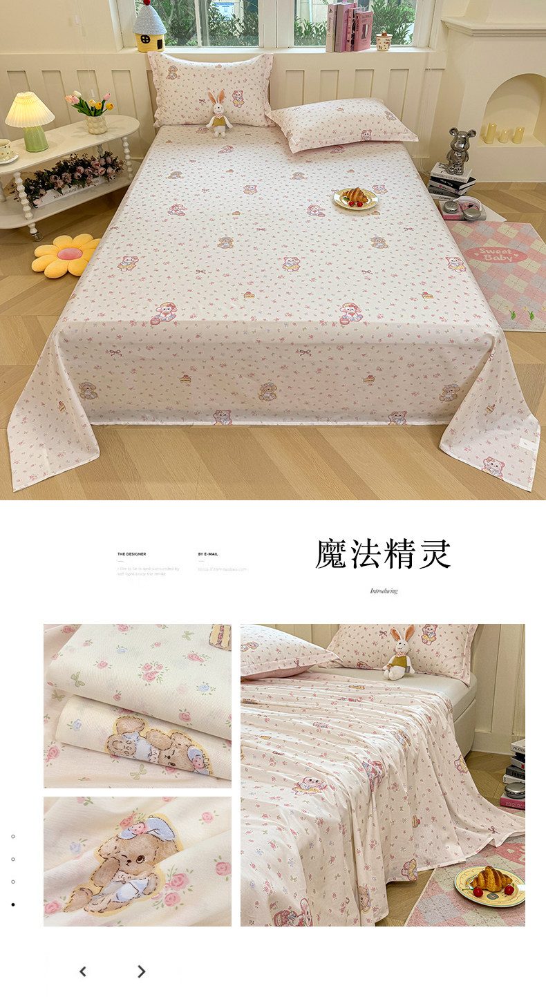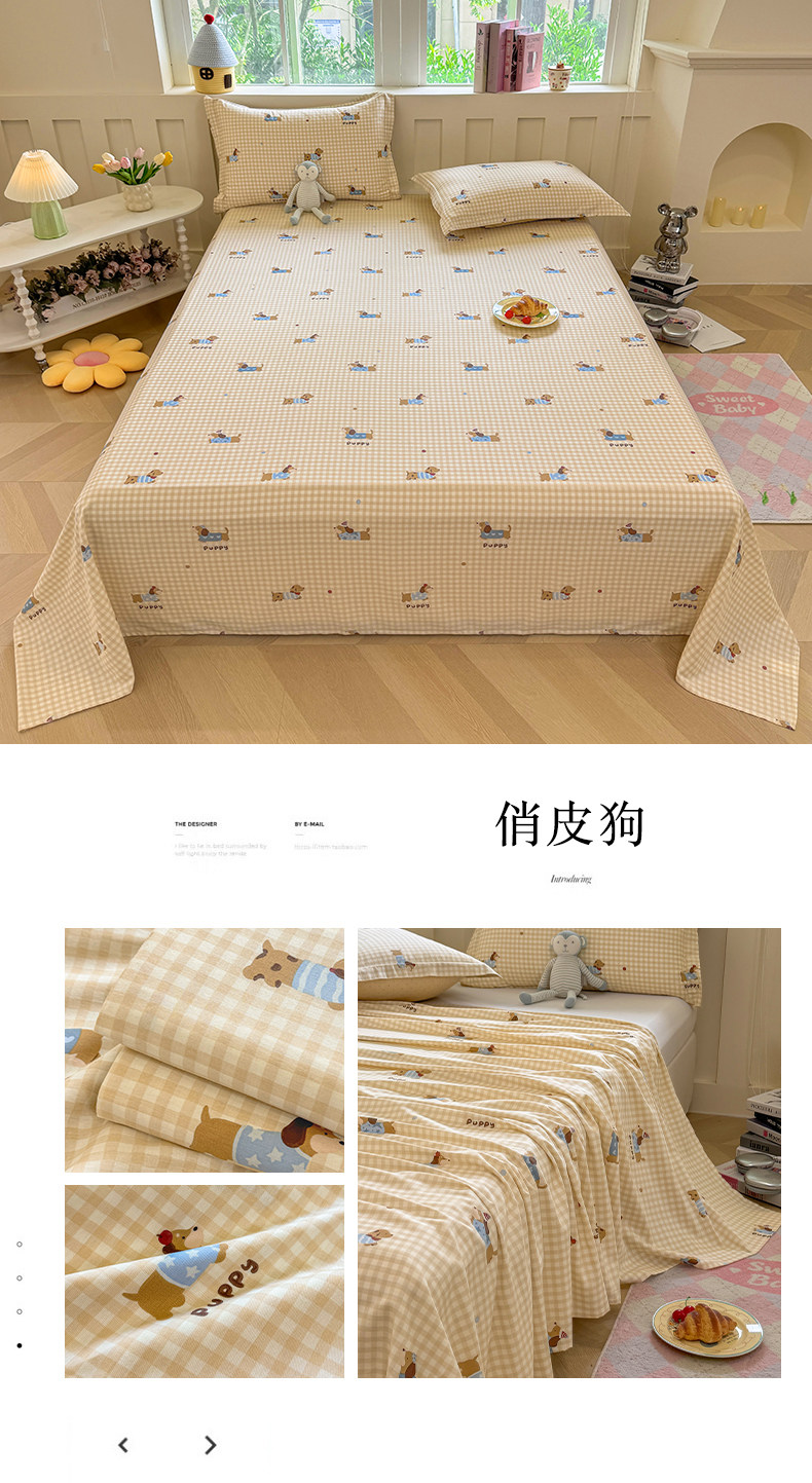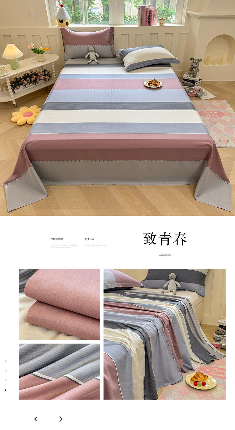 小清新100%全棉純棉可裸睡被單宿捨單人三件套雙人床單品枕套單件