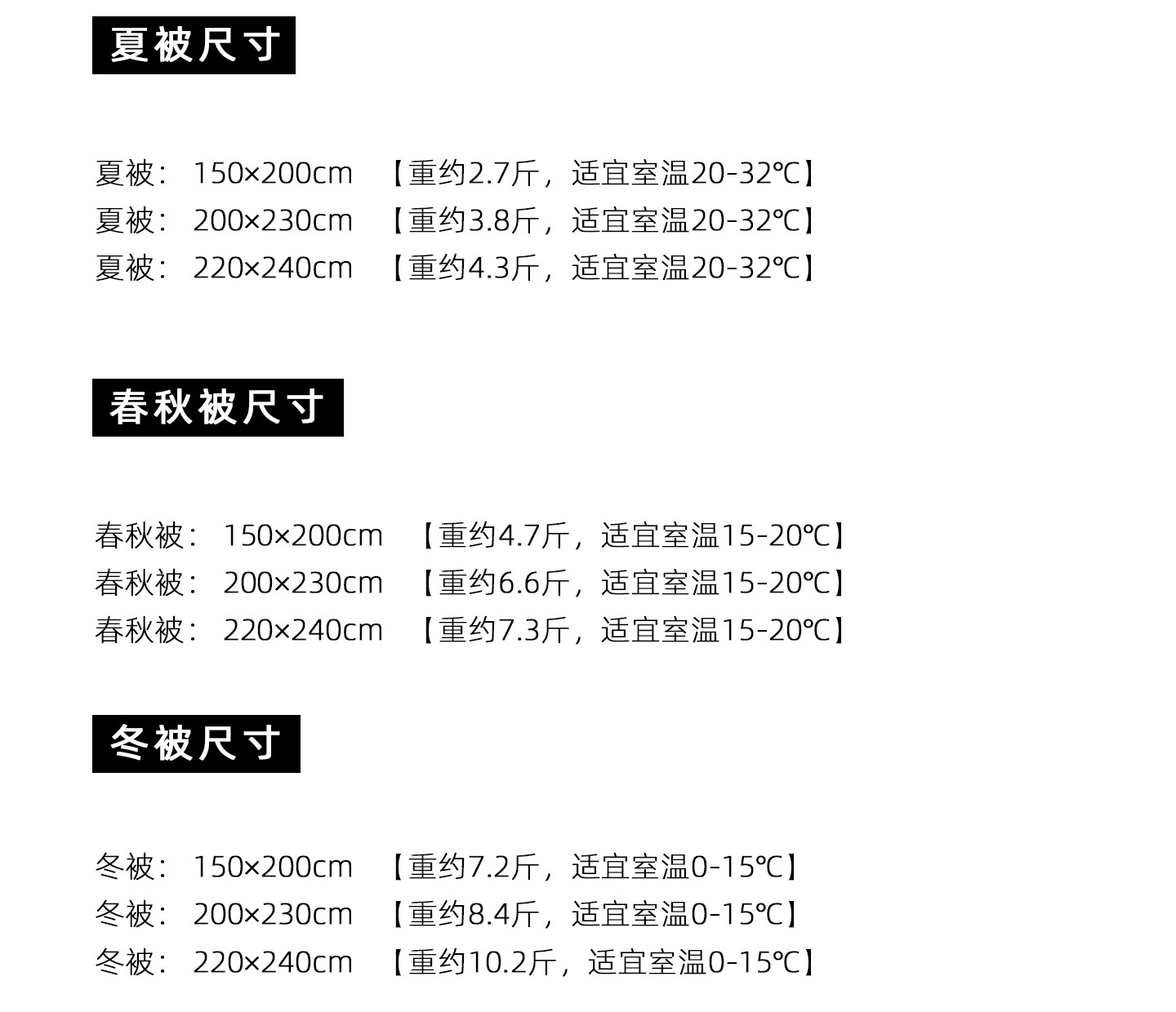 | 款式 | 春秋冬被 |