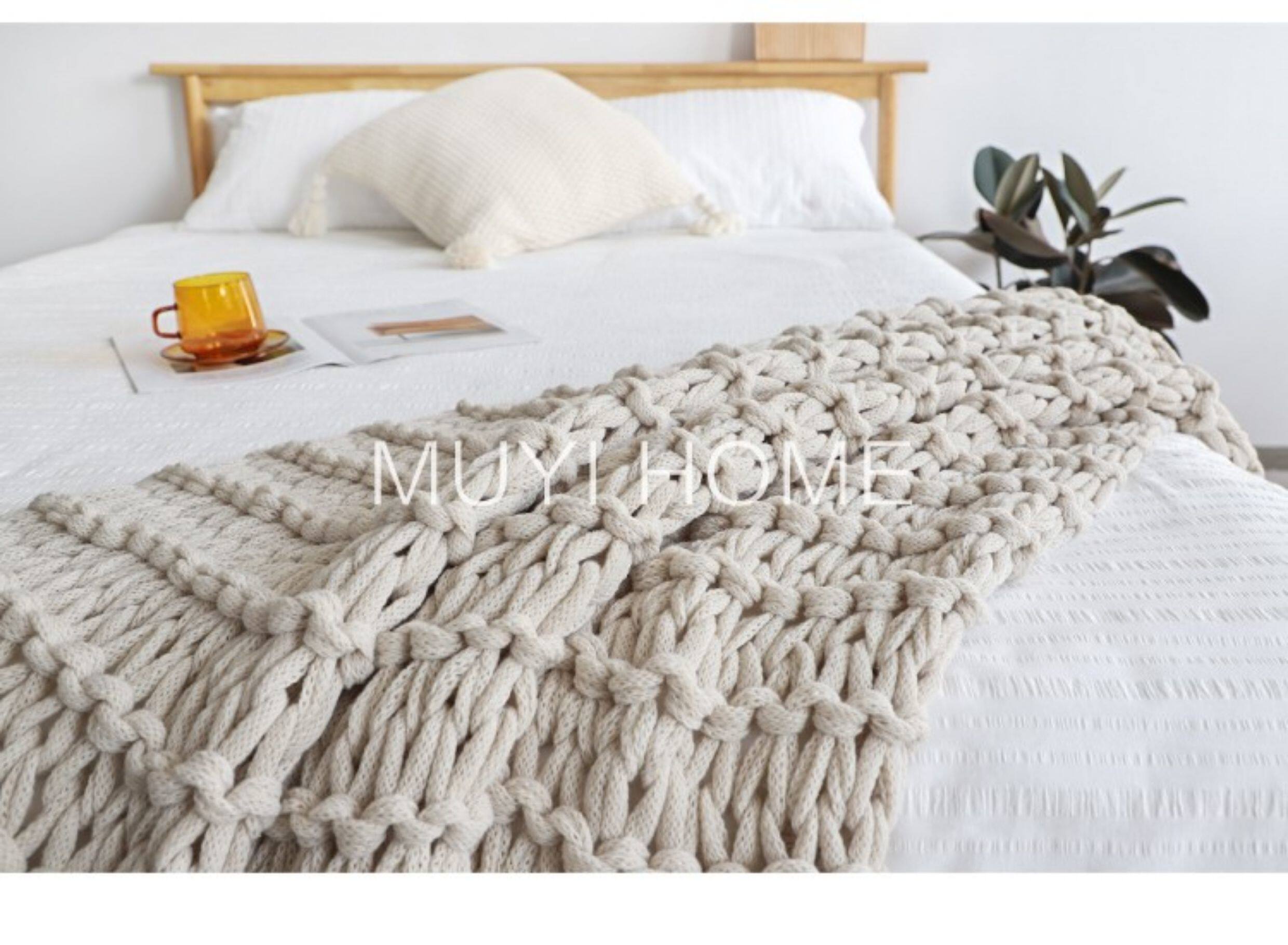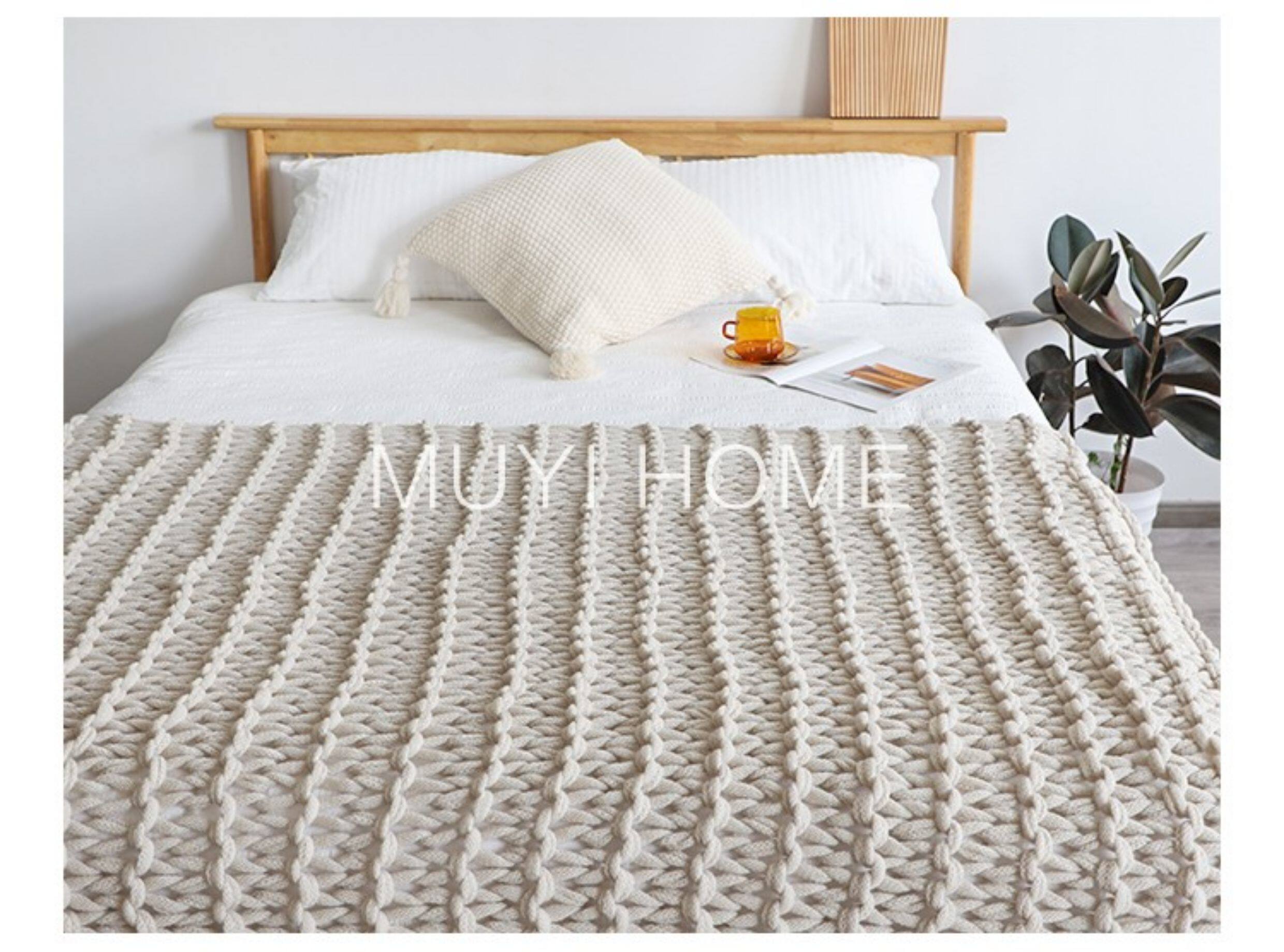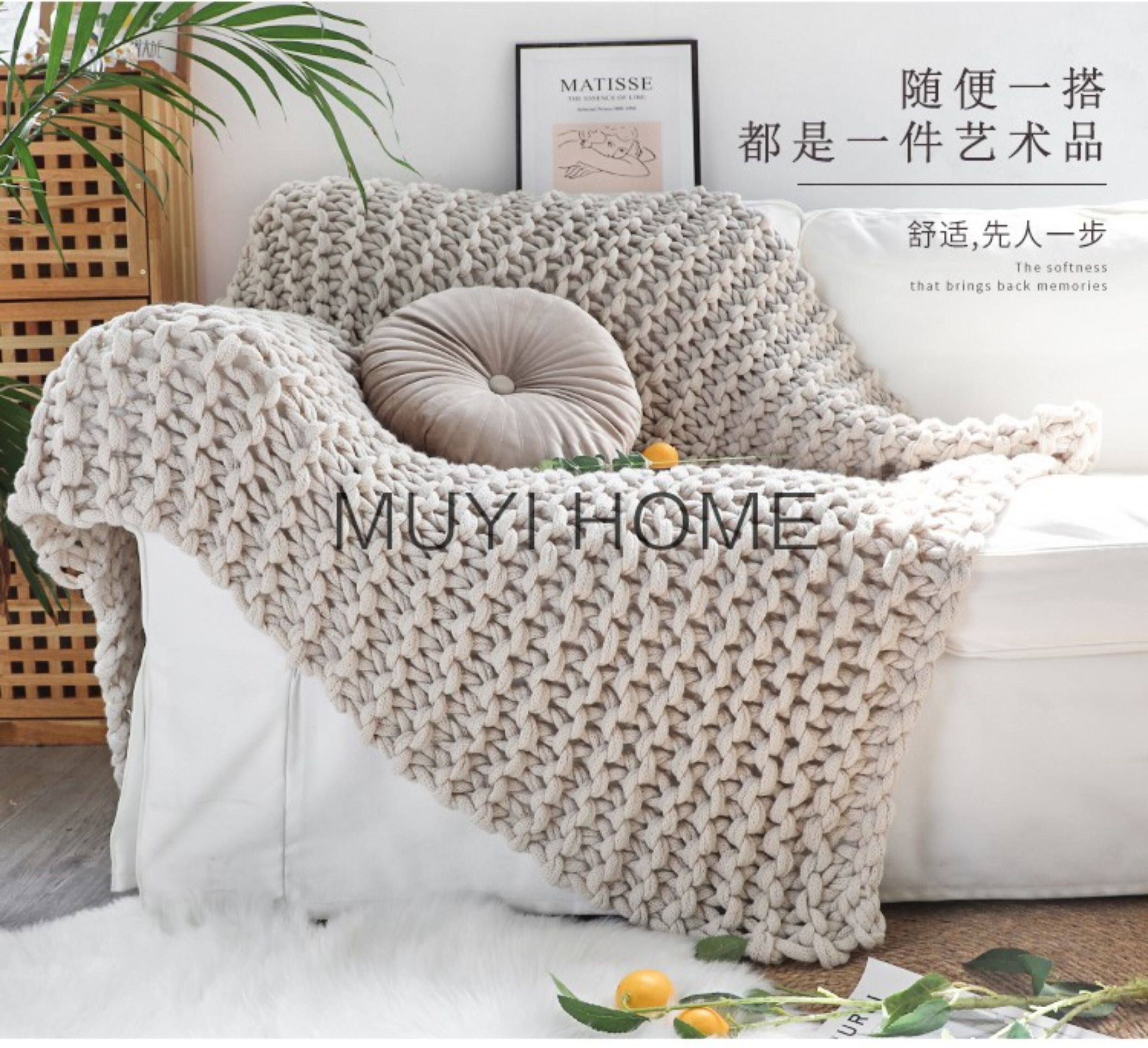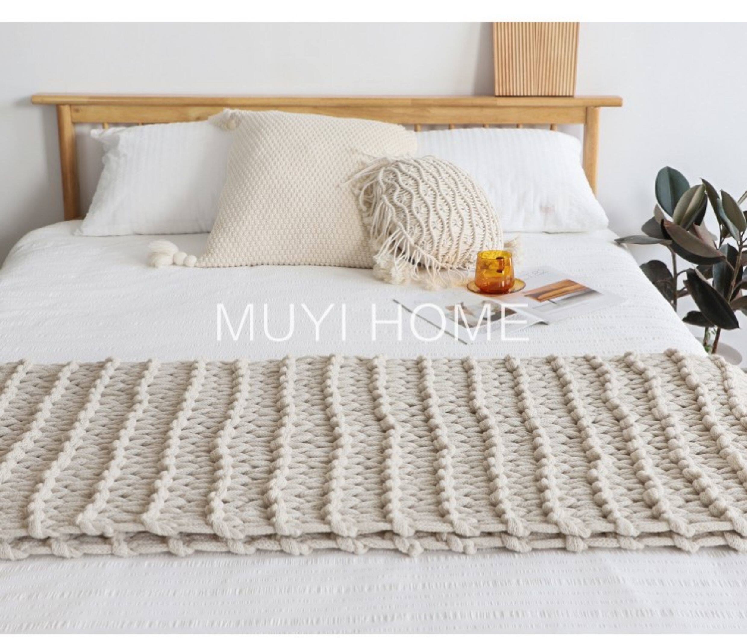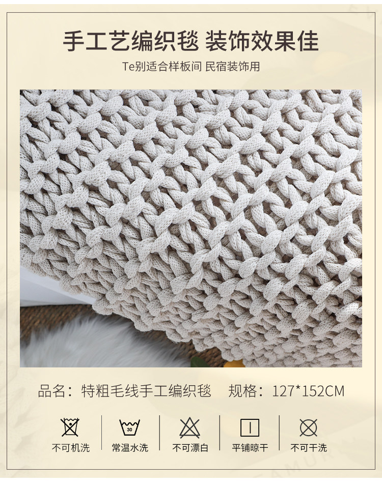 北歐INS網紅特粗毛線手工編織毯樣板間床尾裝飾毯沙發毯民宿床搭