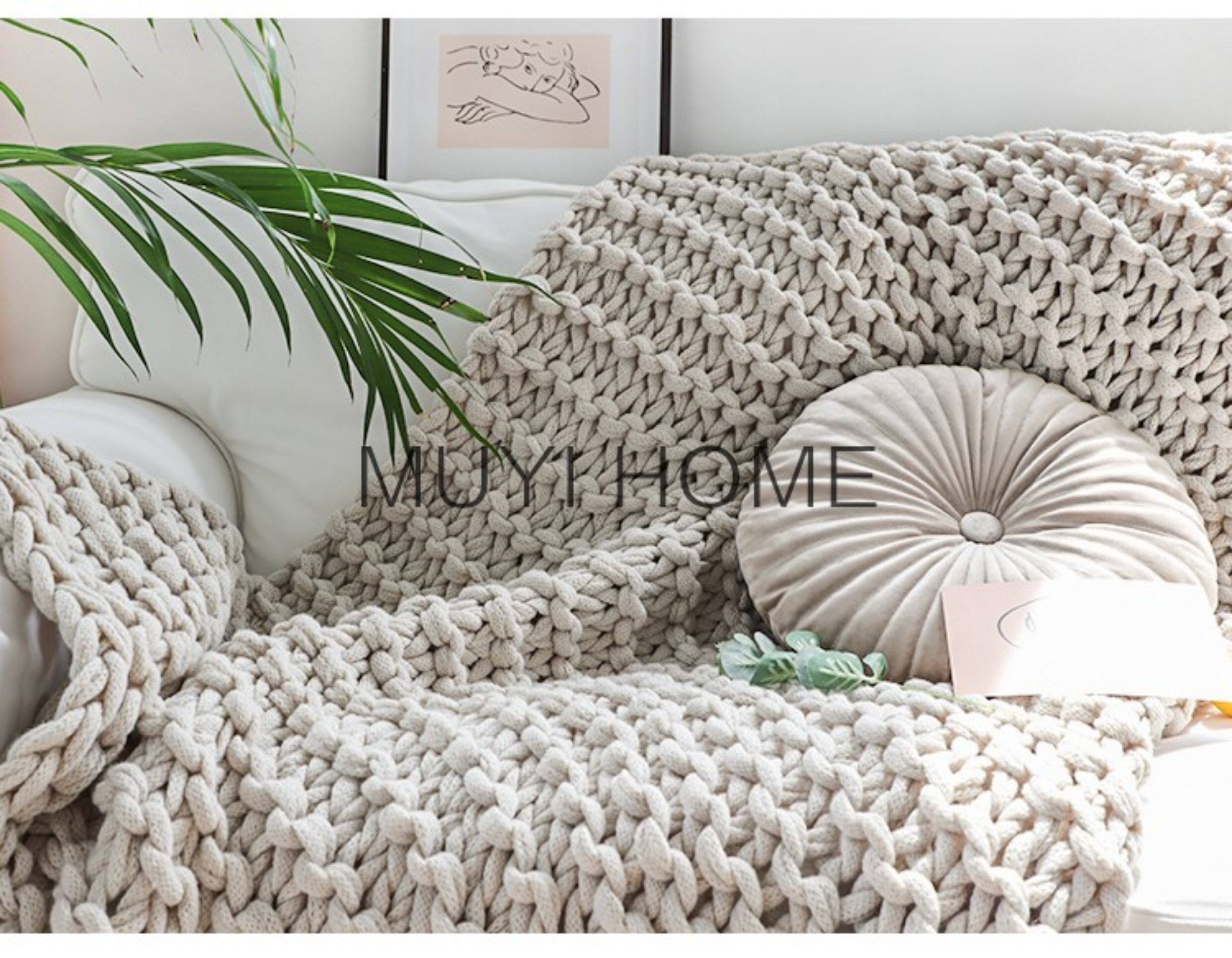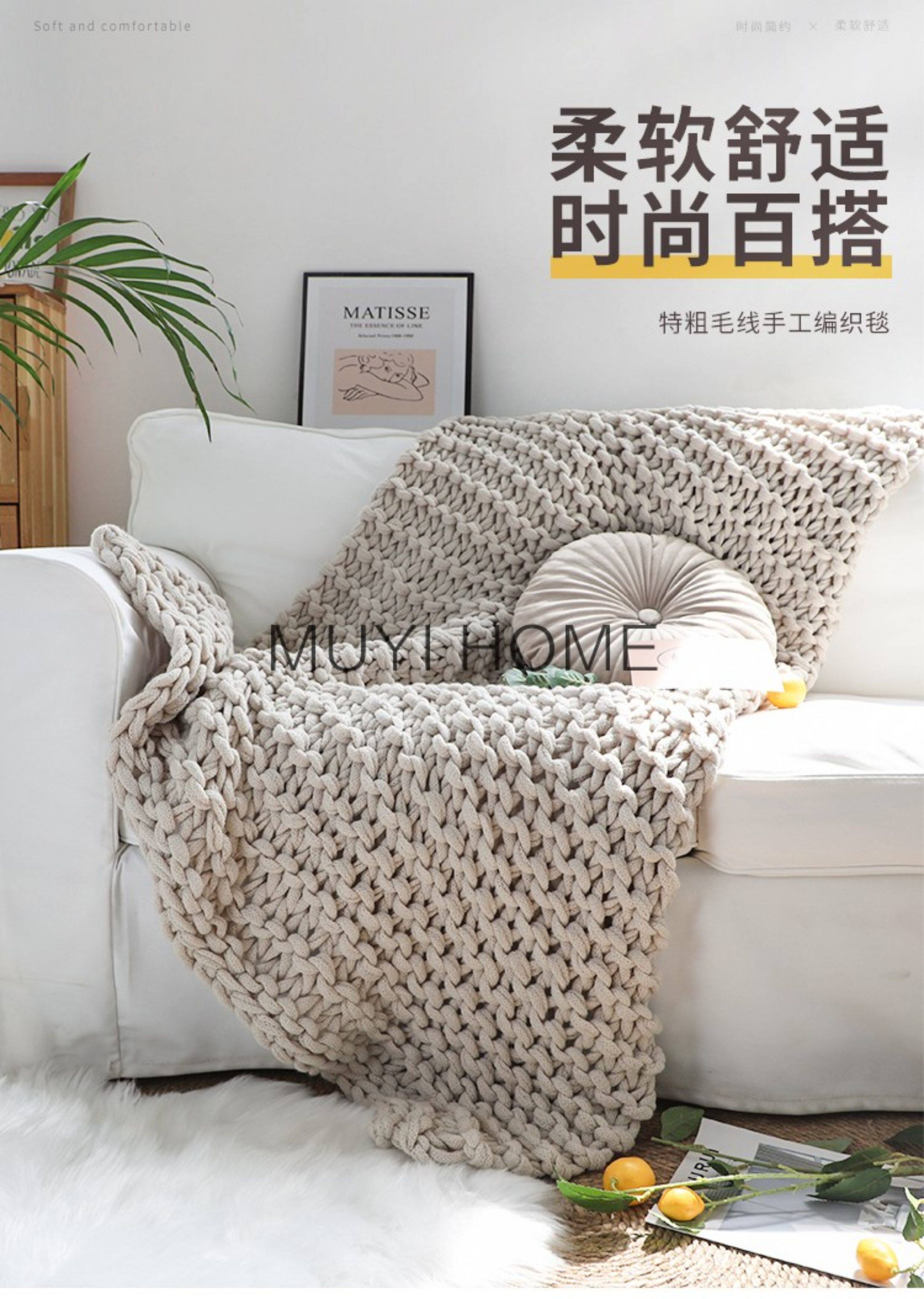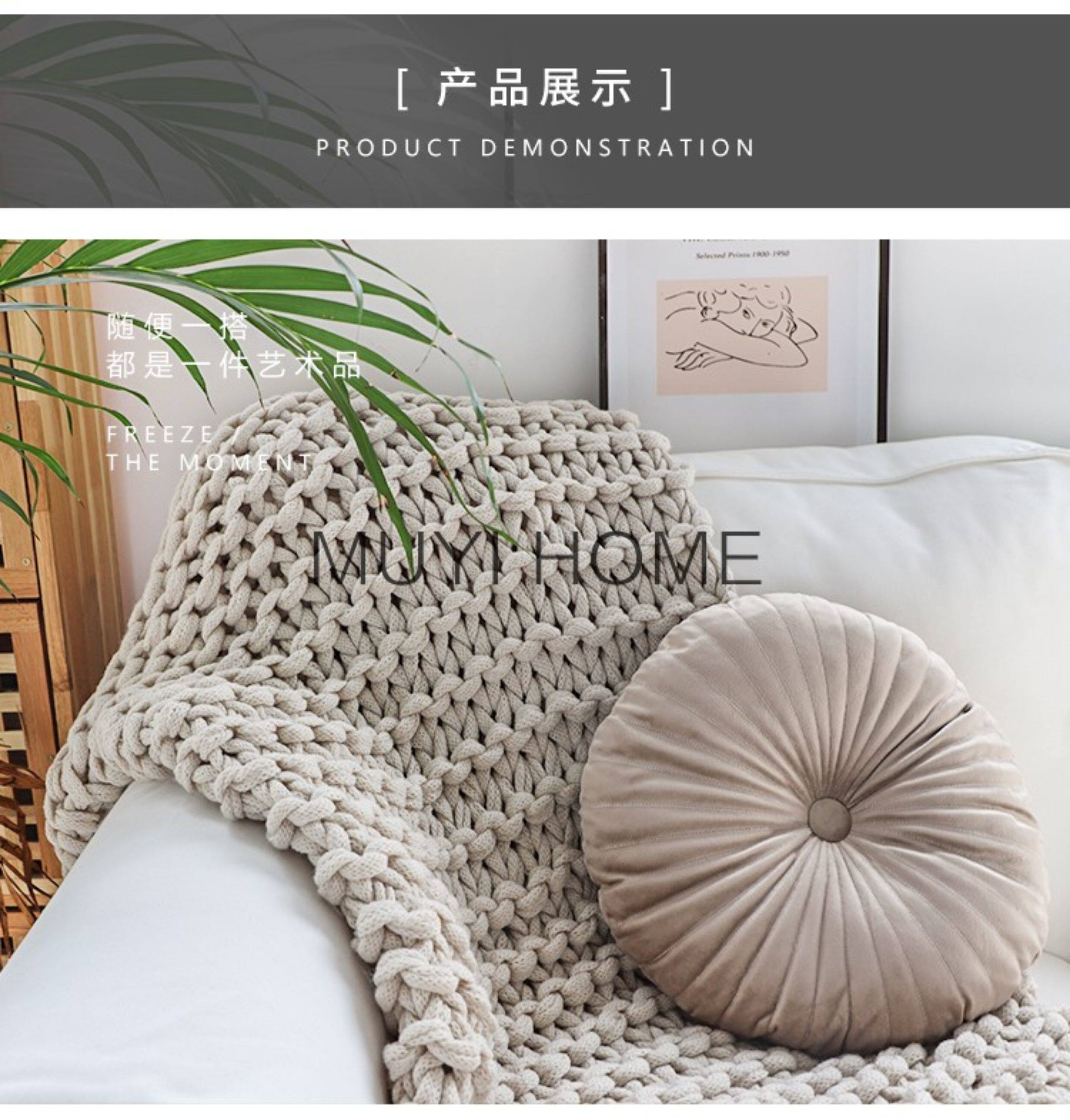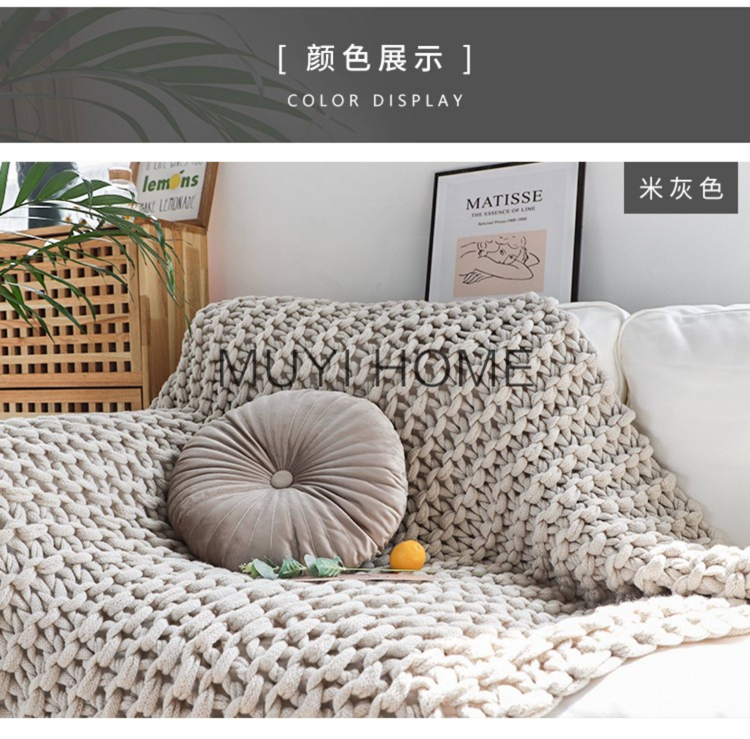 北歐INS網紅特粗毛線手工編織毯樣板間床尾裝飾毯沙發毯民宿床搭