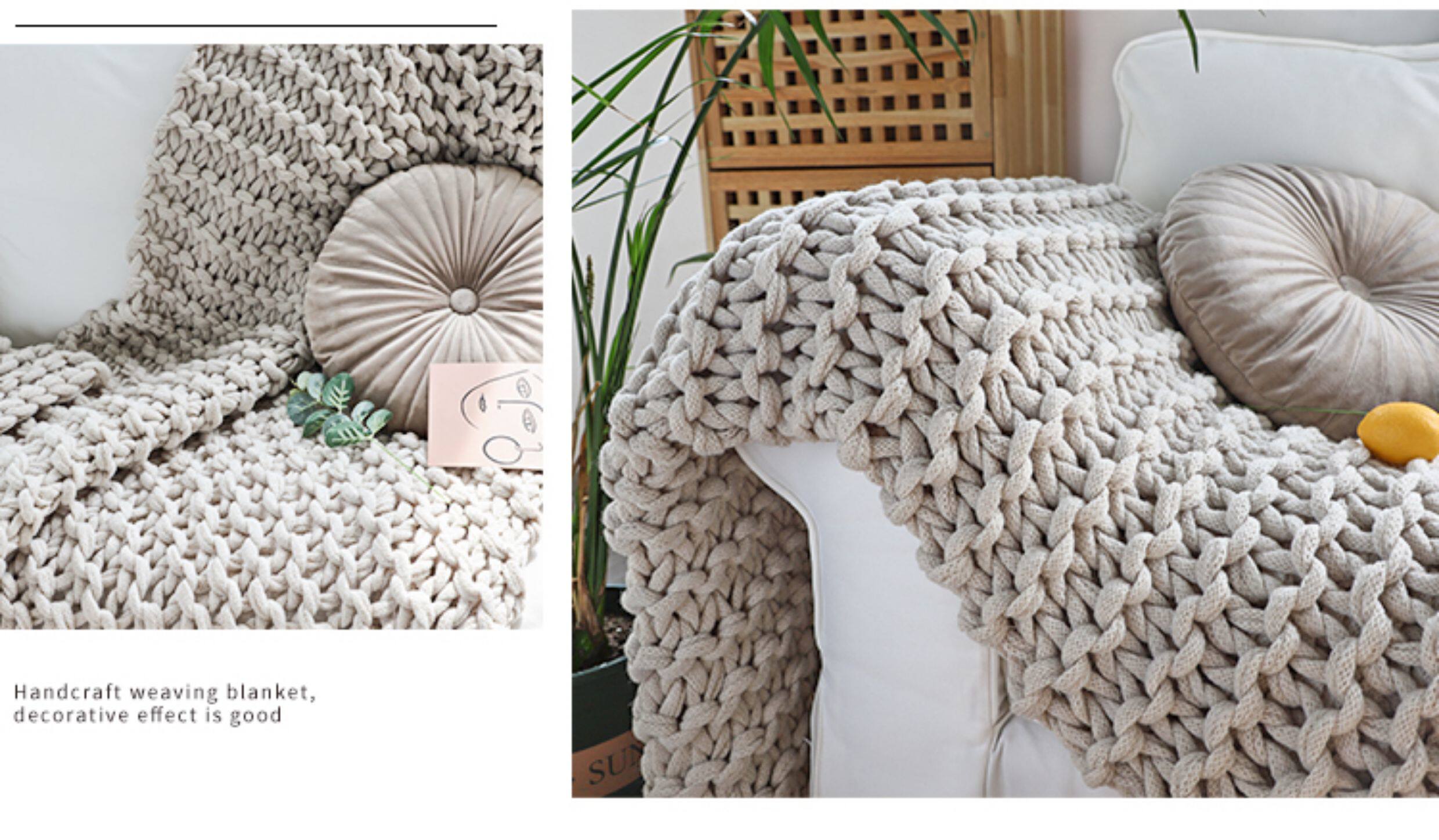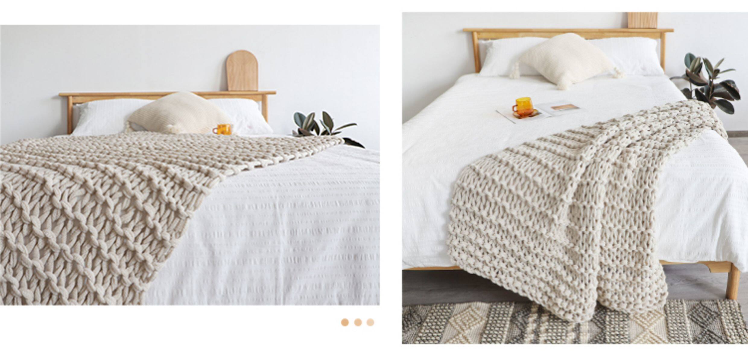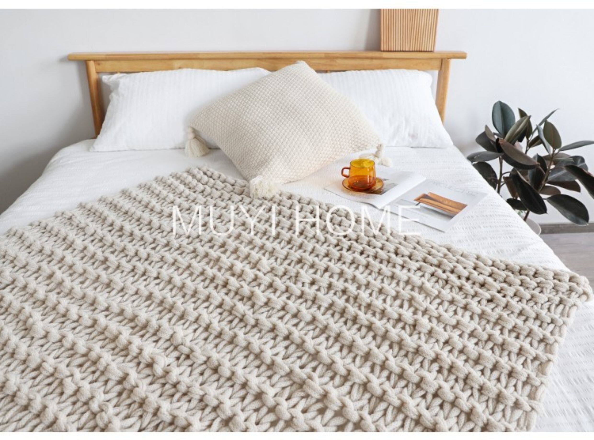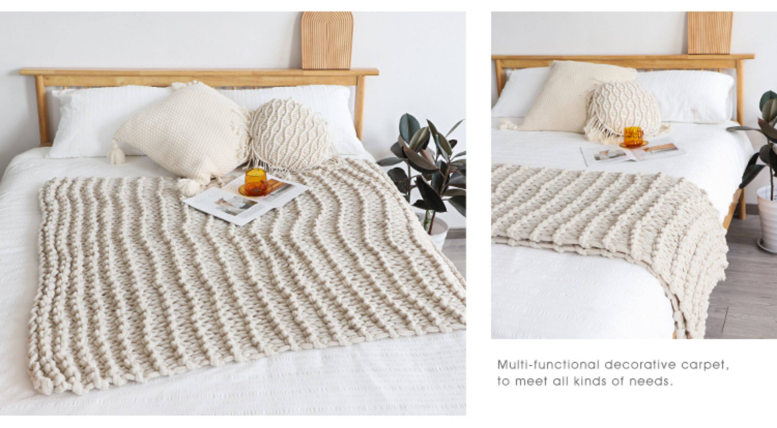 北歐INS網紅特粗毛線手工編織毯樣板間床尾裝飾毯沙發毯民宿床搭