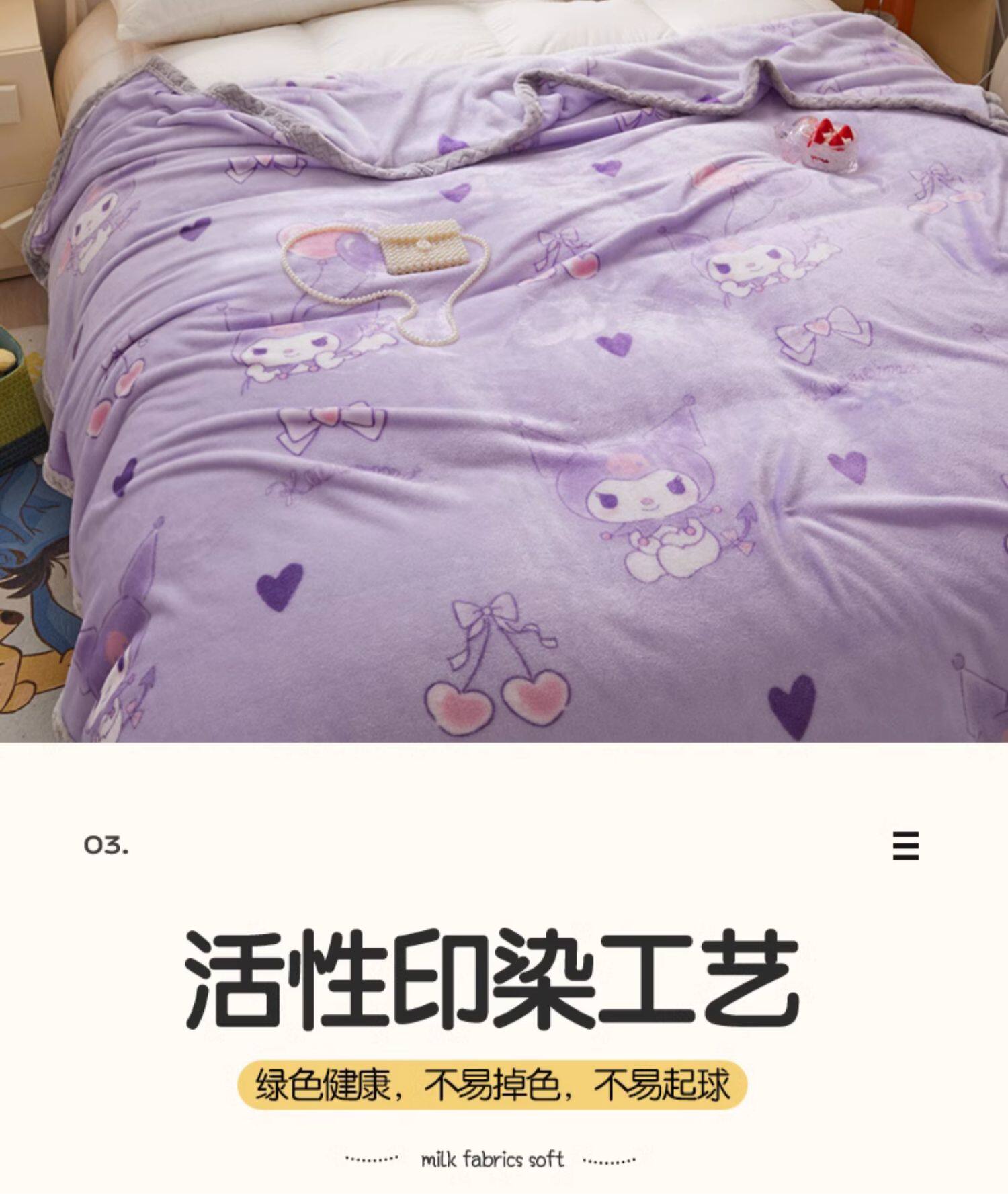 卡通雙面絨被毯加厚牛奶絨印花毛毯庫洛米辦公室蓋毯兒童午休毯子