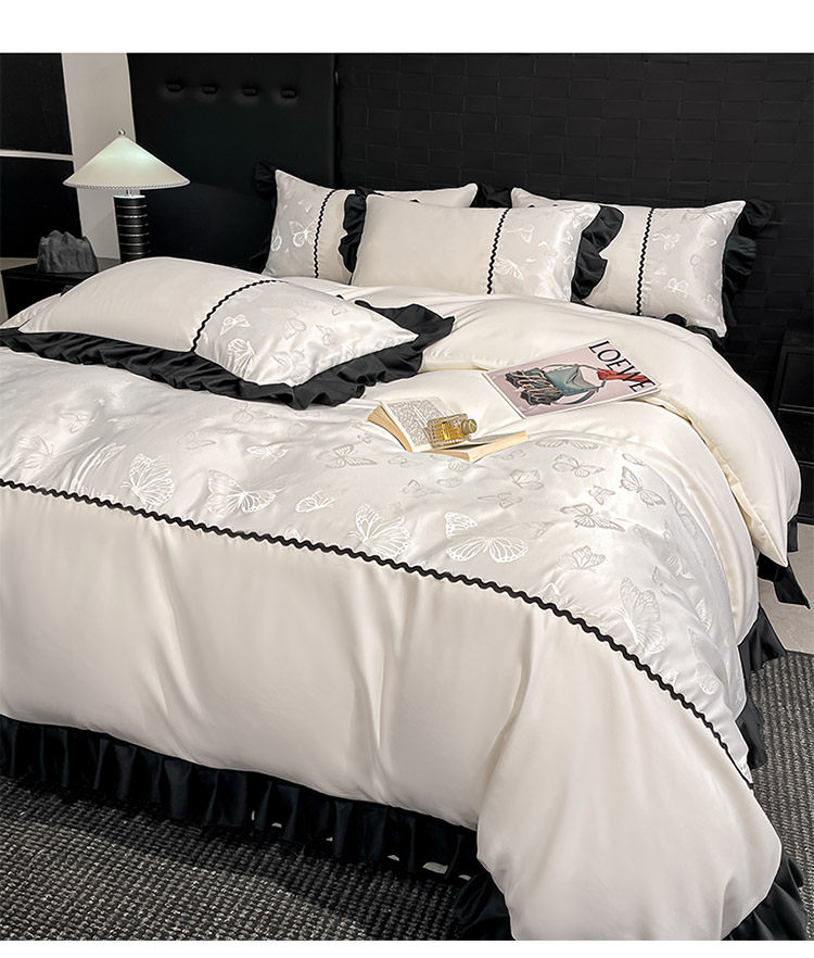 歐式冰絲四件套絲滑裸睡高級提花被套床單真絲輕奢高級感夏季床品