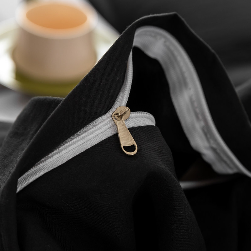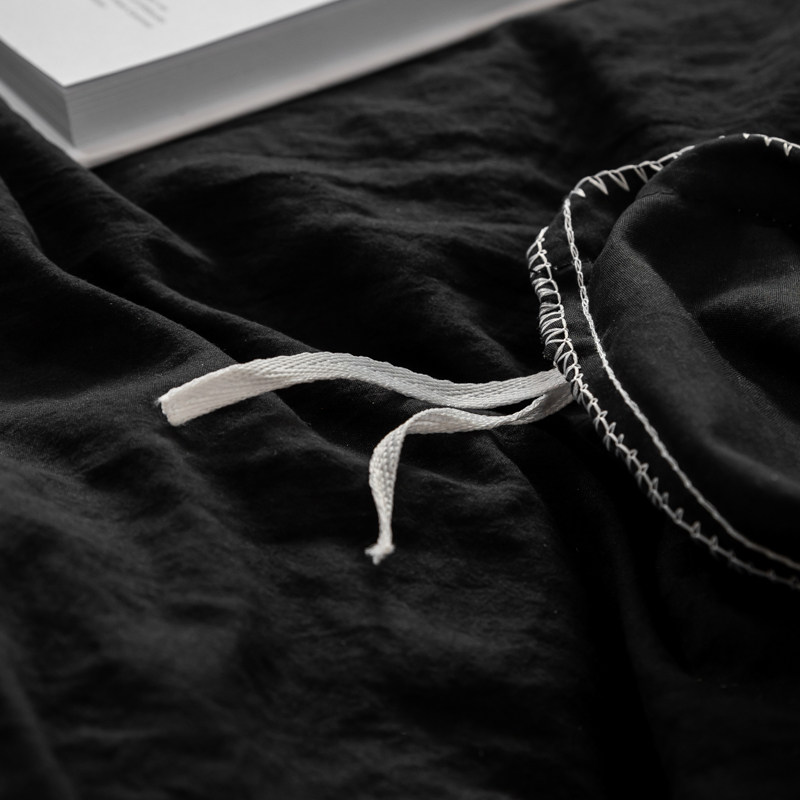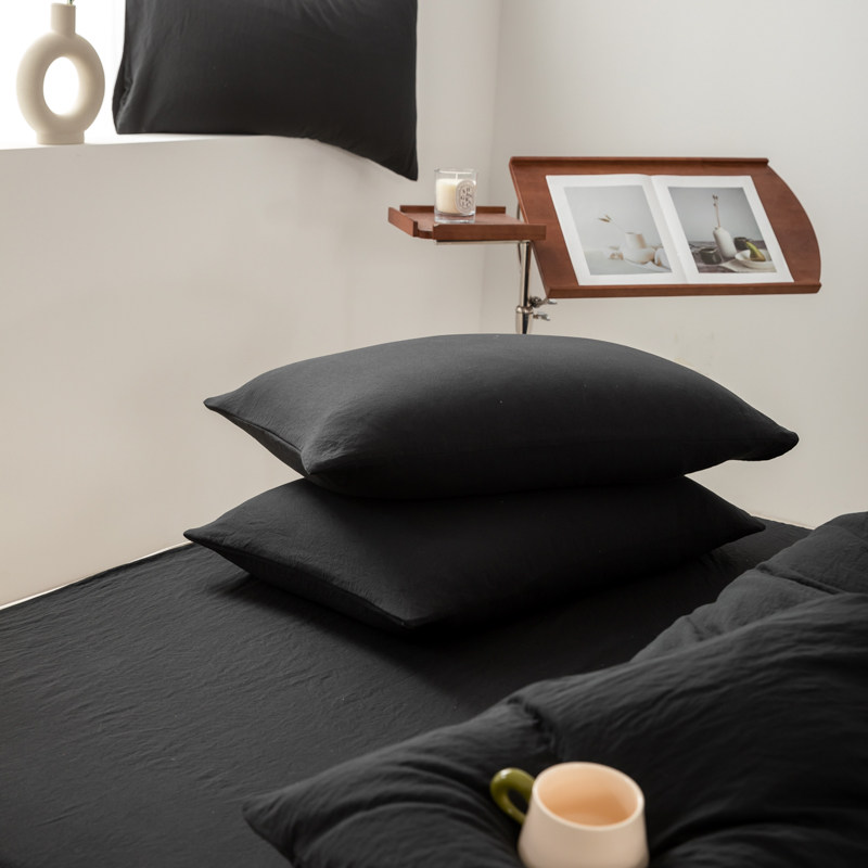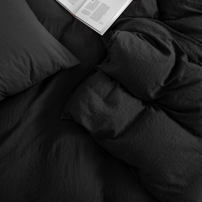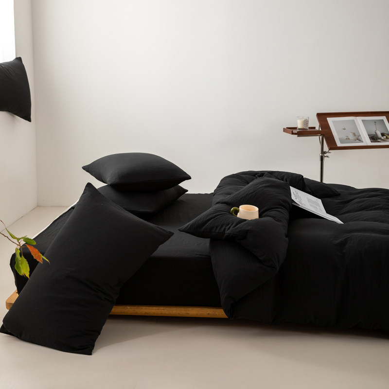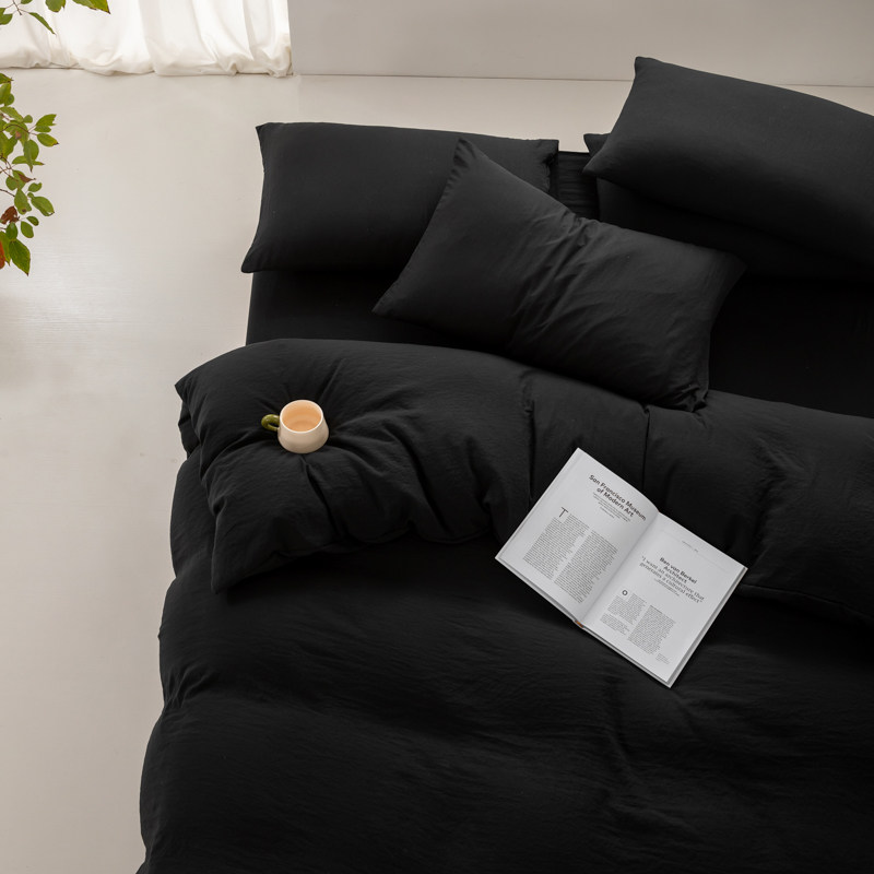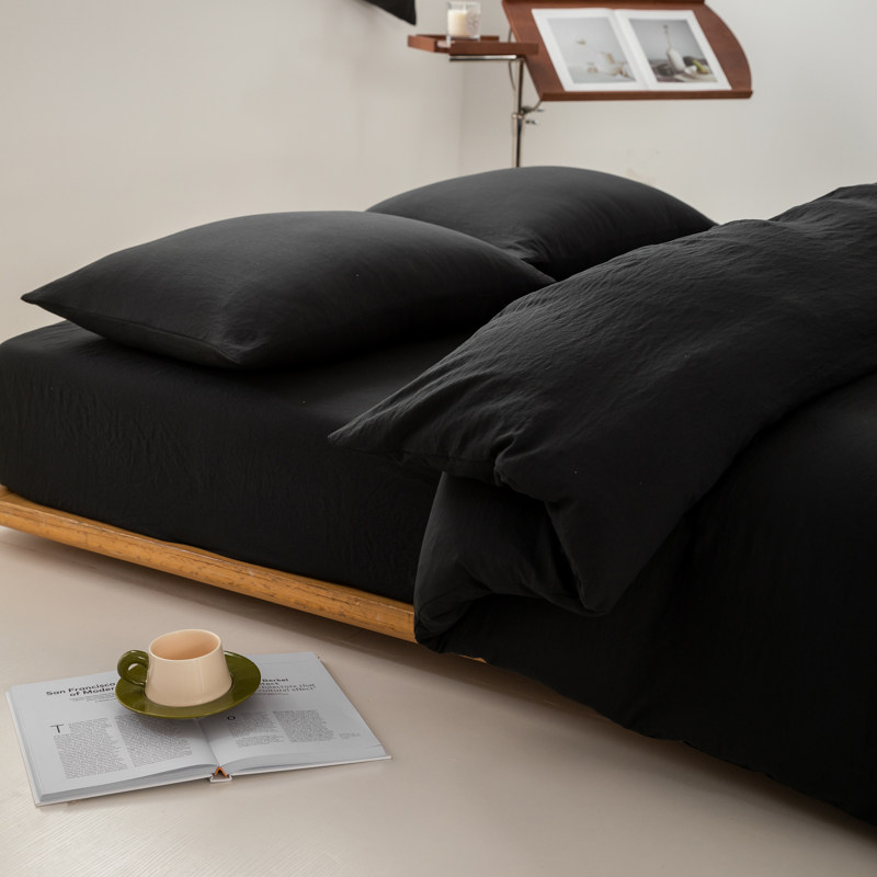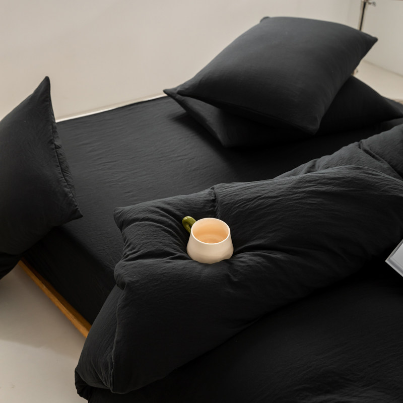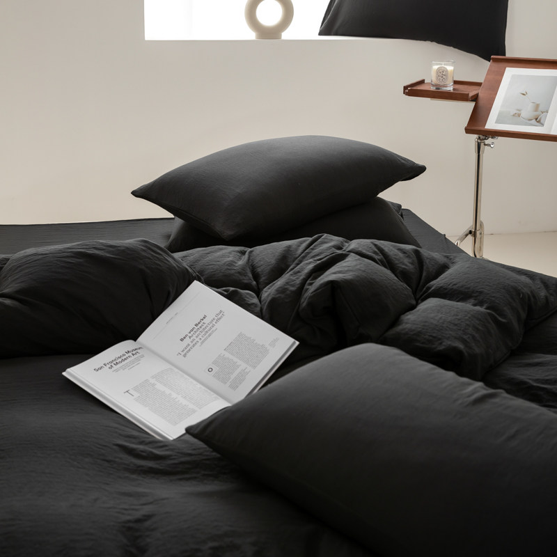 日式侘寂風黑色四件套水洗棉麻床品床包款床單被套學生宿捨三件套