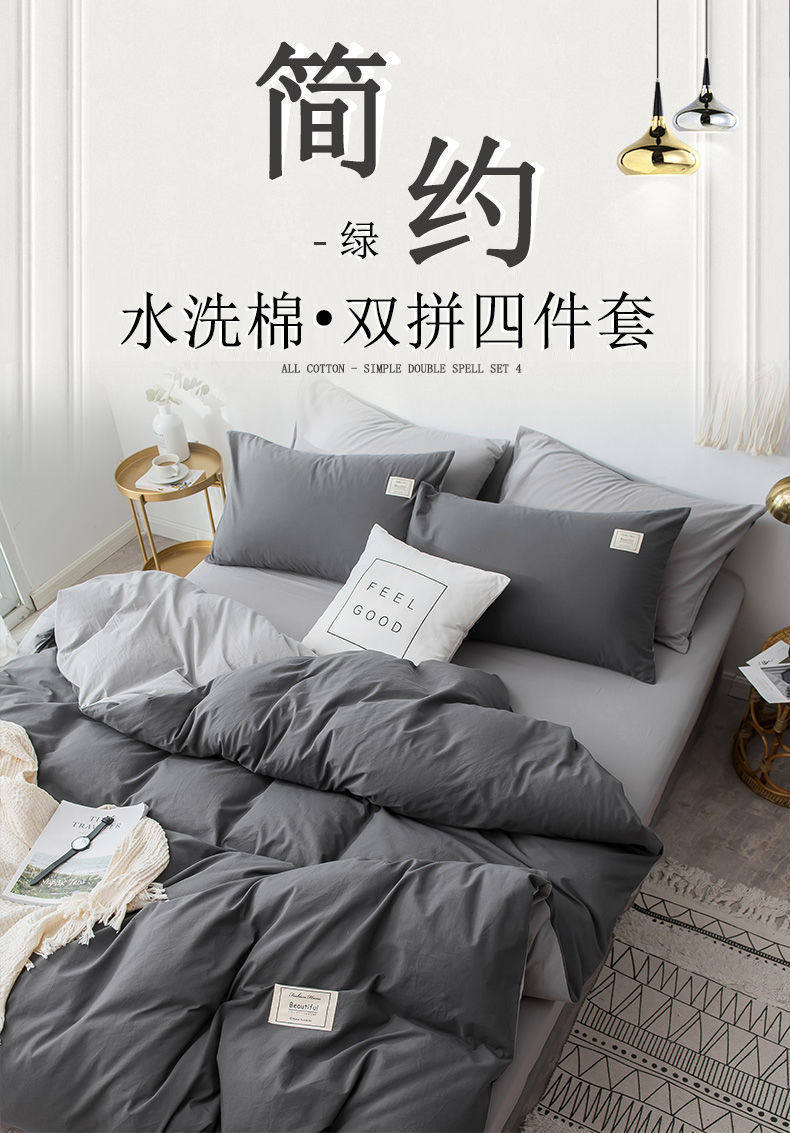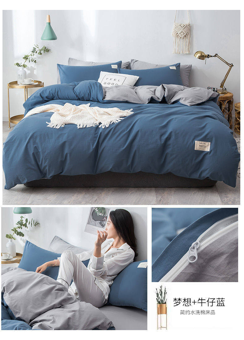 南極人北歐風四件套水洗棉被套網紅款床單學生宿捨三件套床上用品