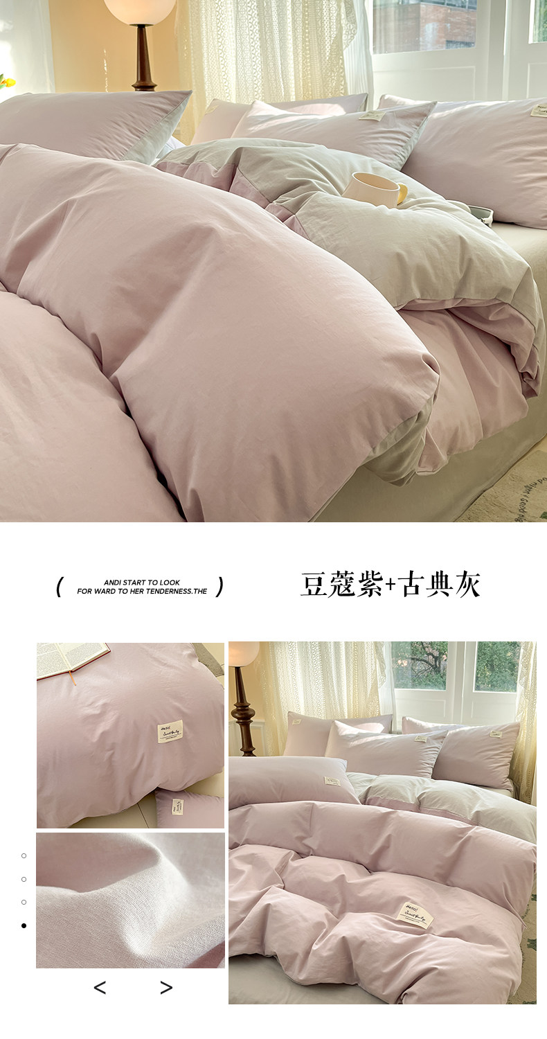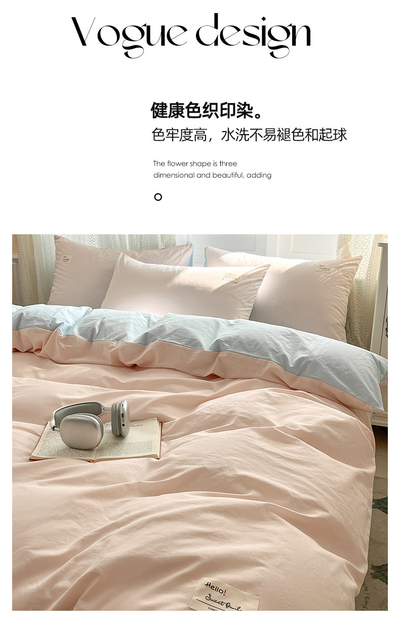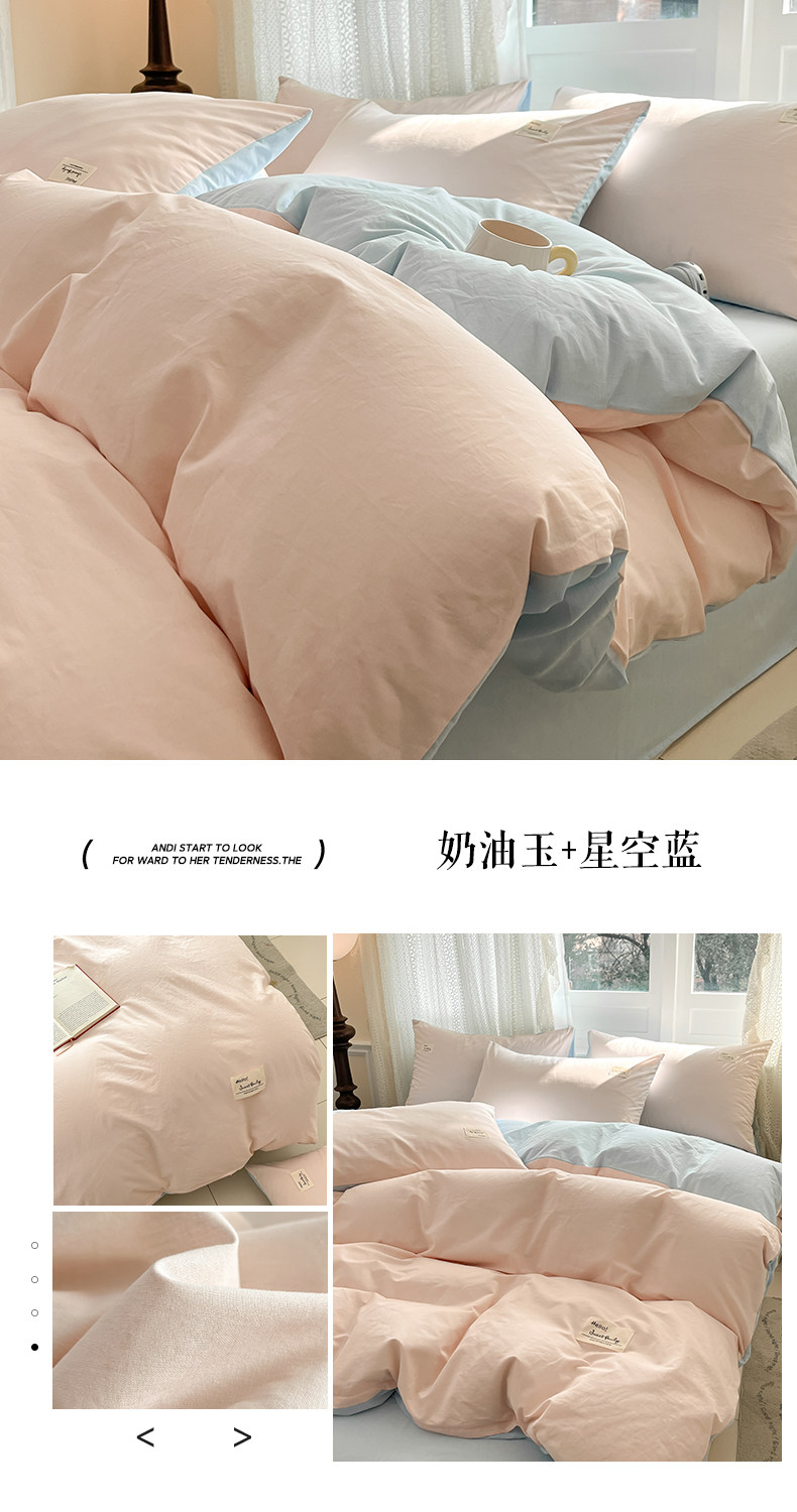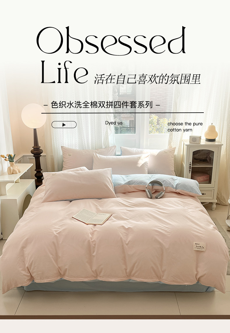 純色簡約100%全棉色織水洗棉四件套純棉床上用品被套床單人三件套