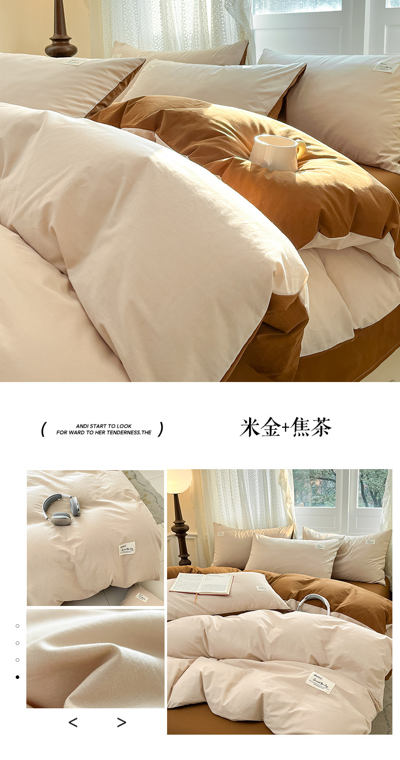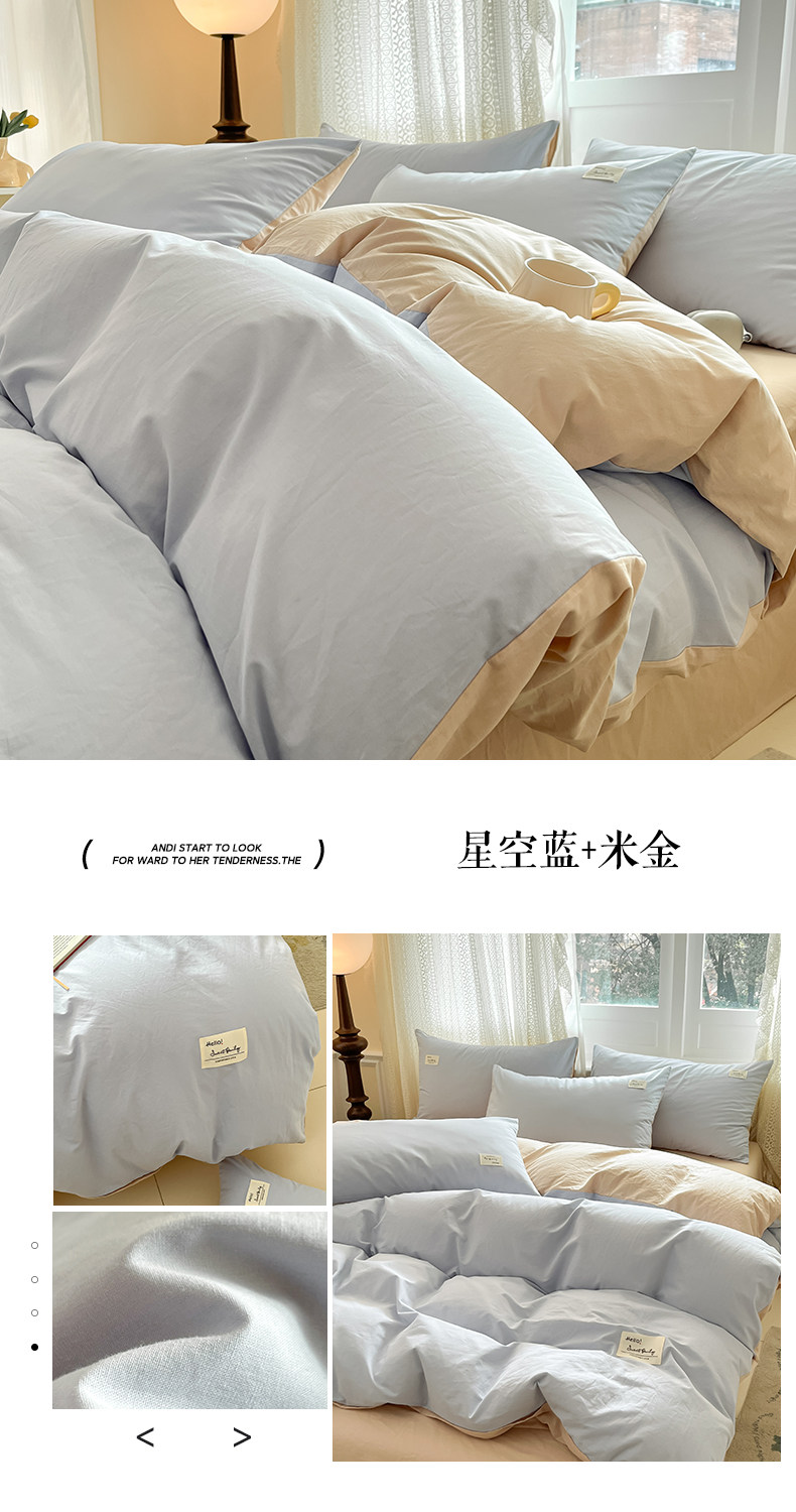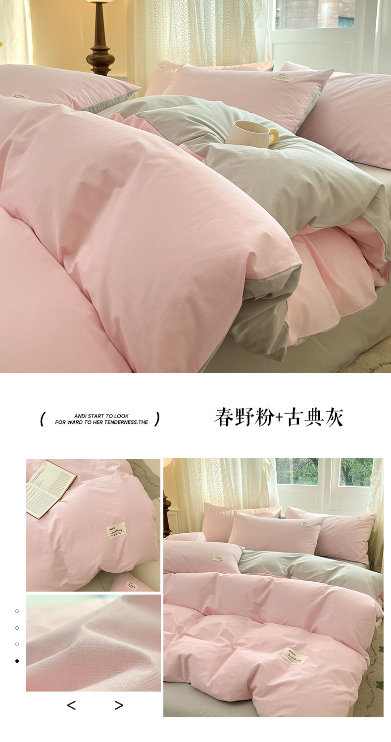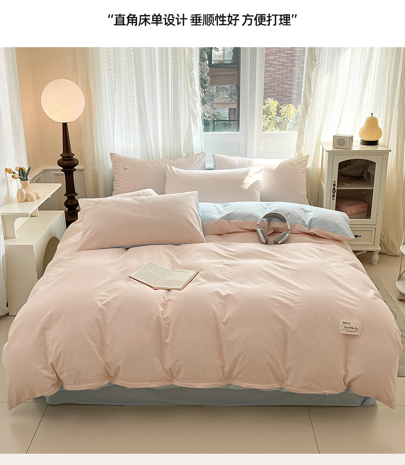 純色簡約100%全棉色織水洗棉四件套純棉床上用品被套床單人三件套