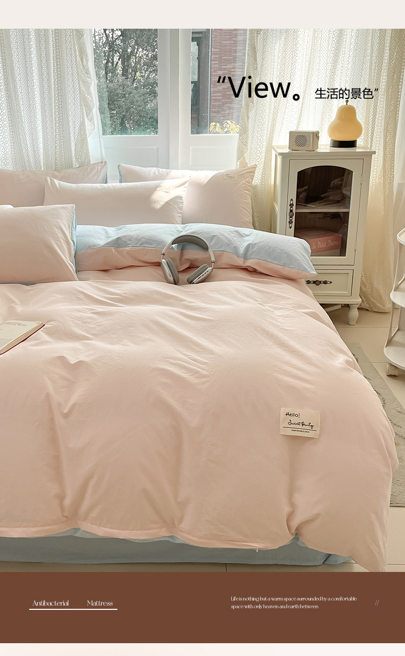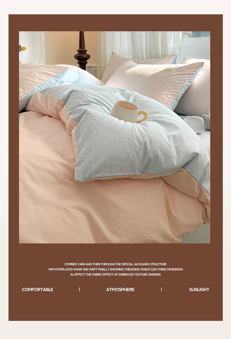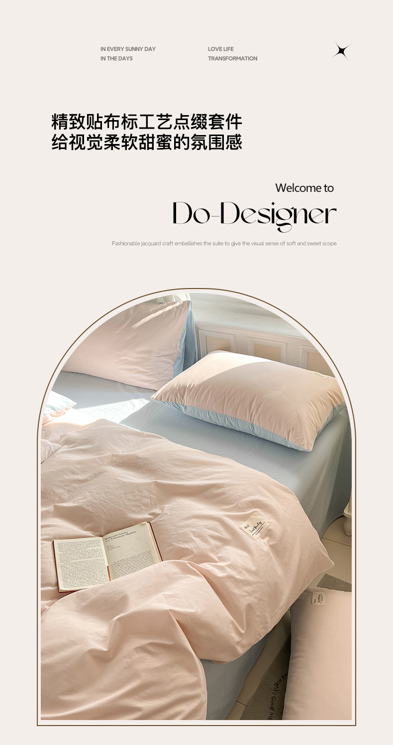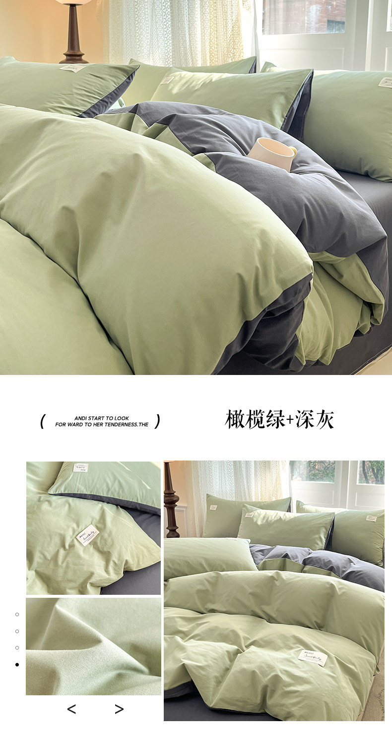 純色簡約100%全棉色織水洗棉四件套純棉床上用品被套床單人三件套