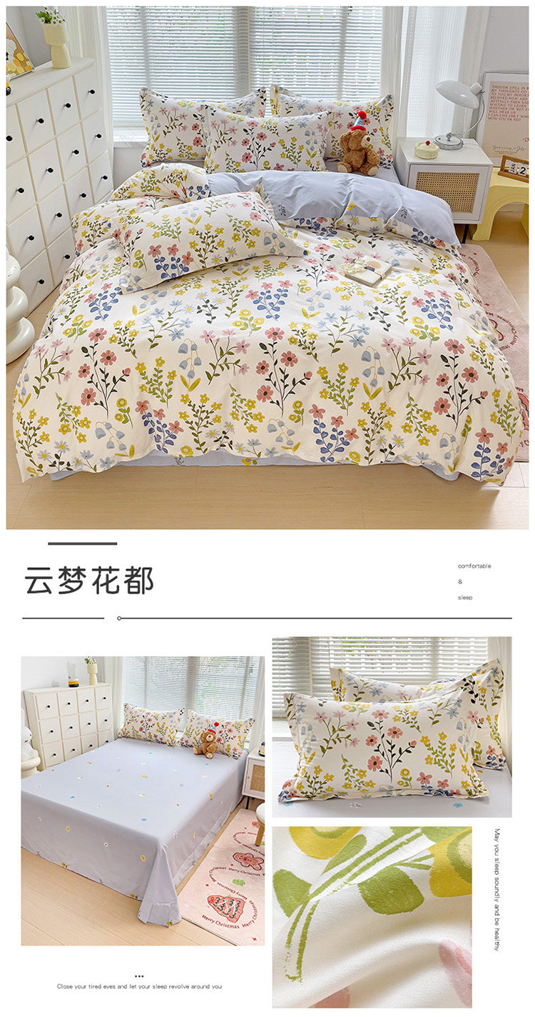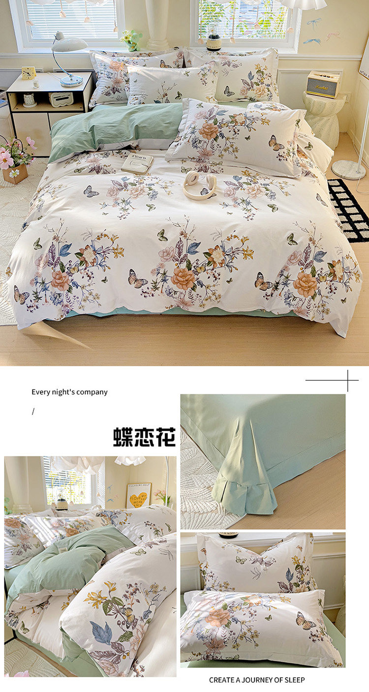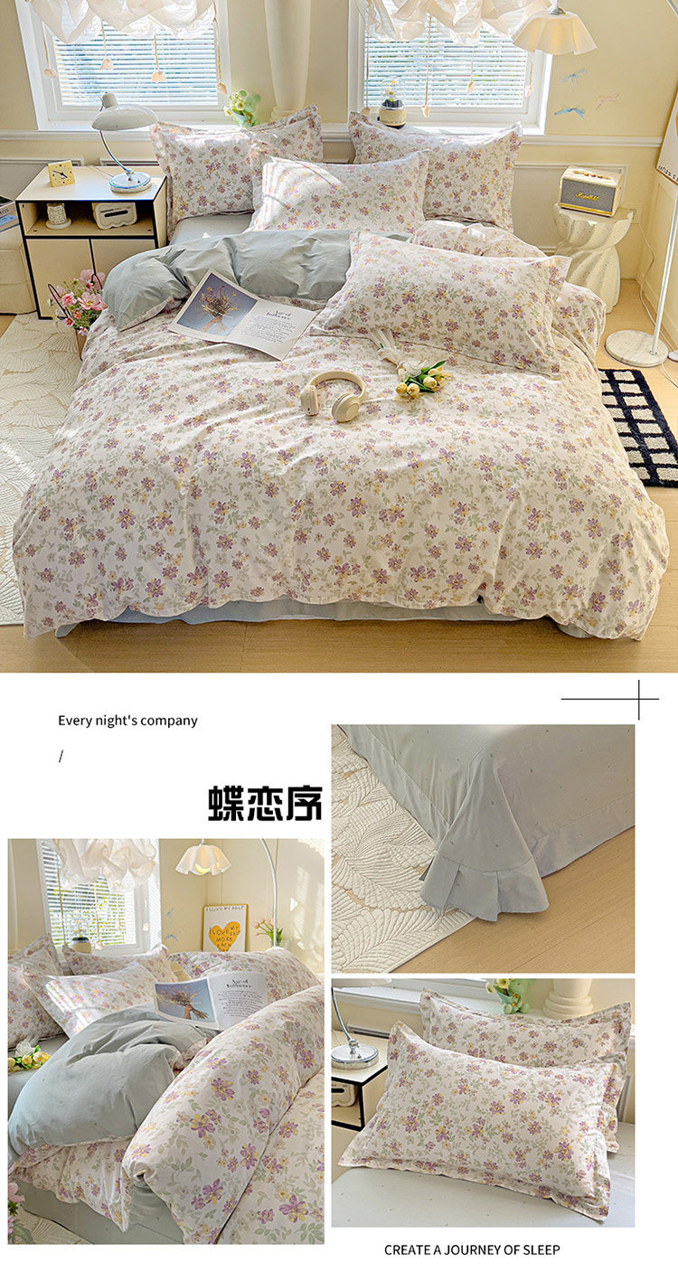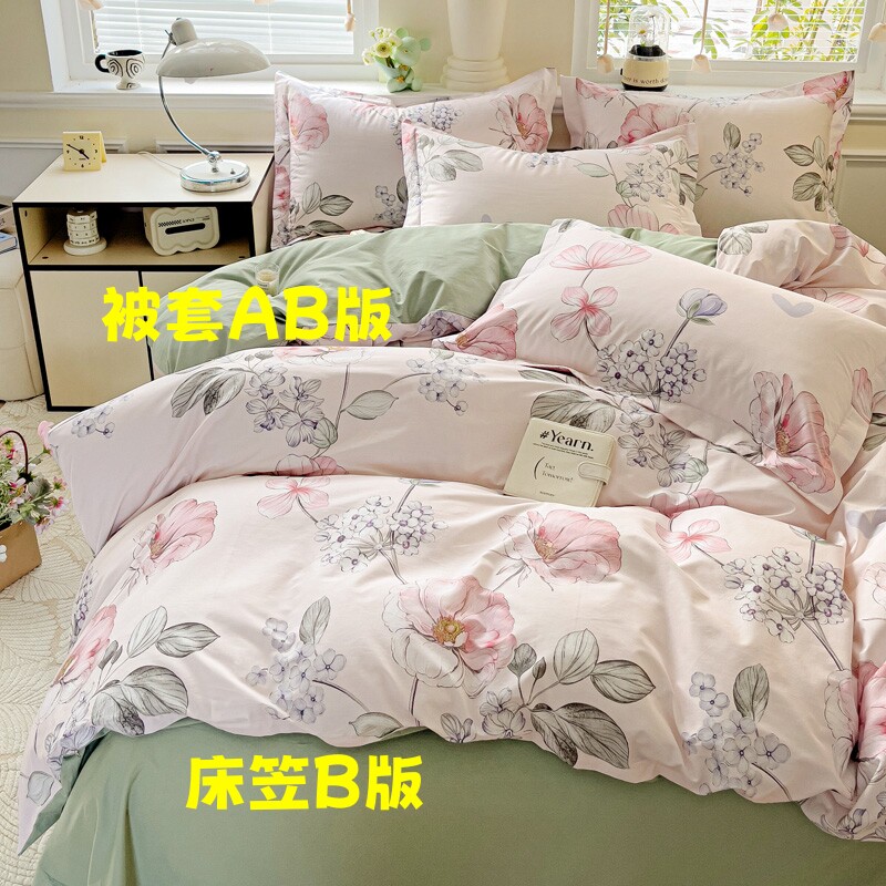 台灣尺寸1200針純棉床包套裝2/3/7/5/6.2尺碎花清新AB版床包組