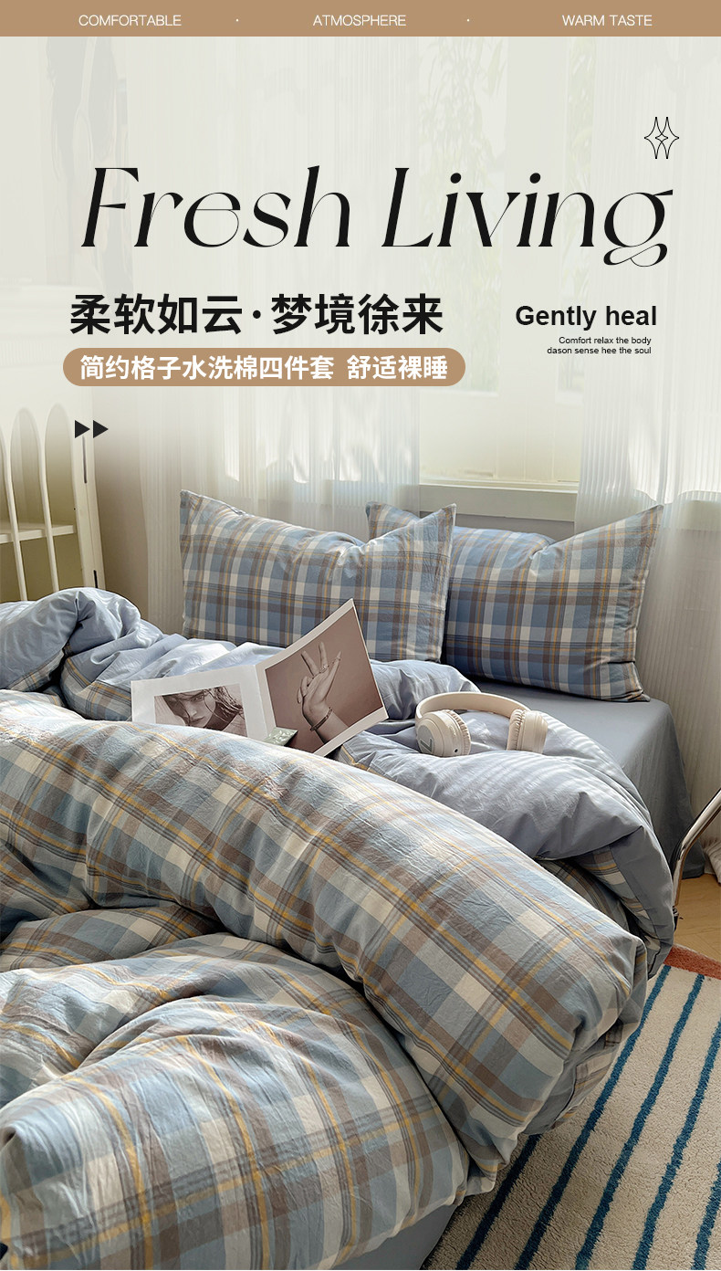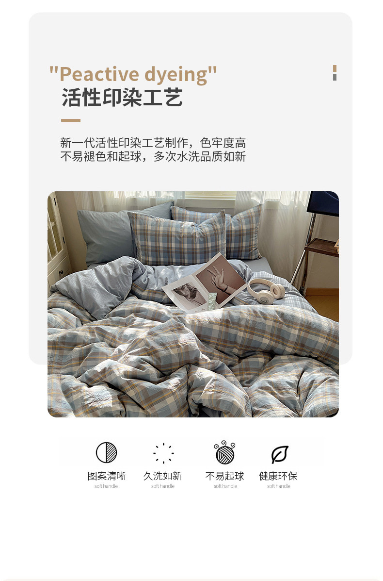 暮落灰床上四件套非純棉全棉2024新款被套夏天床單學生宿捨三件套