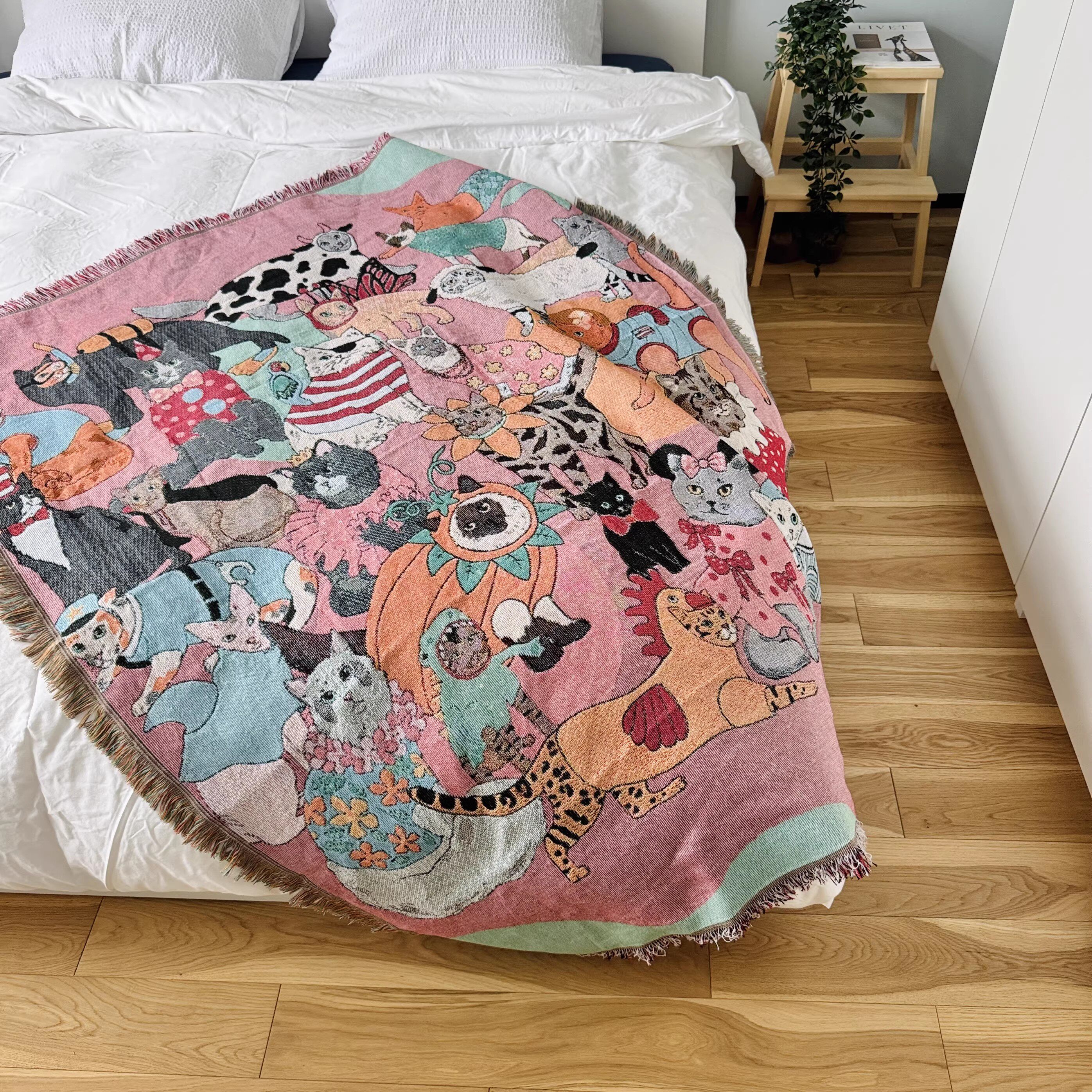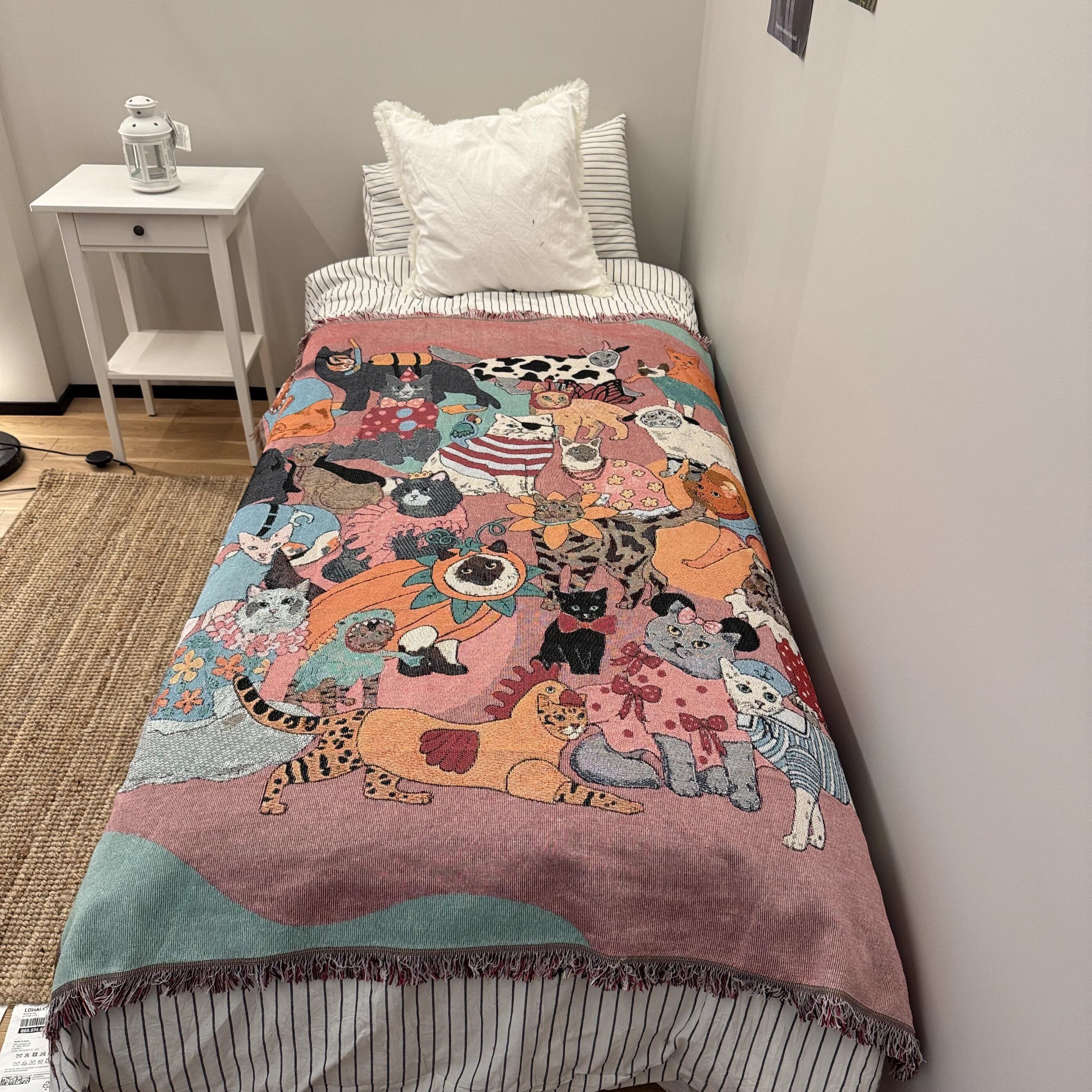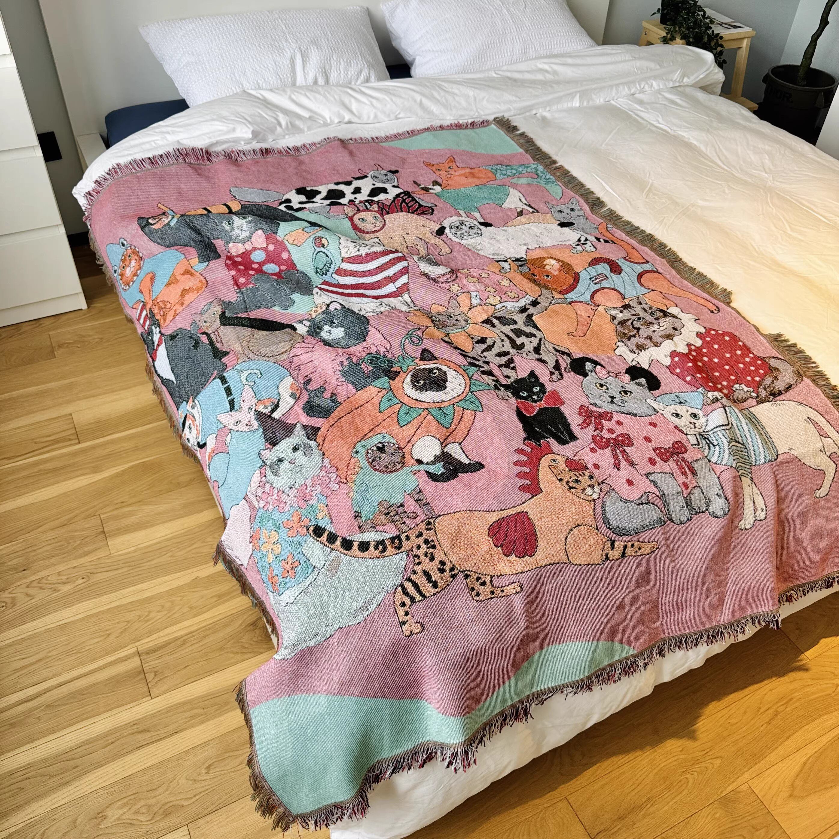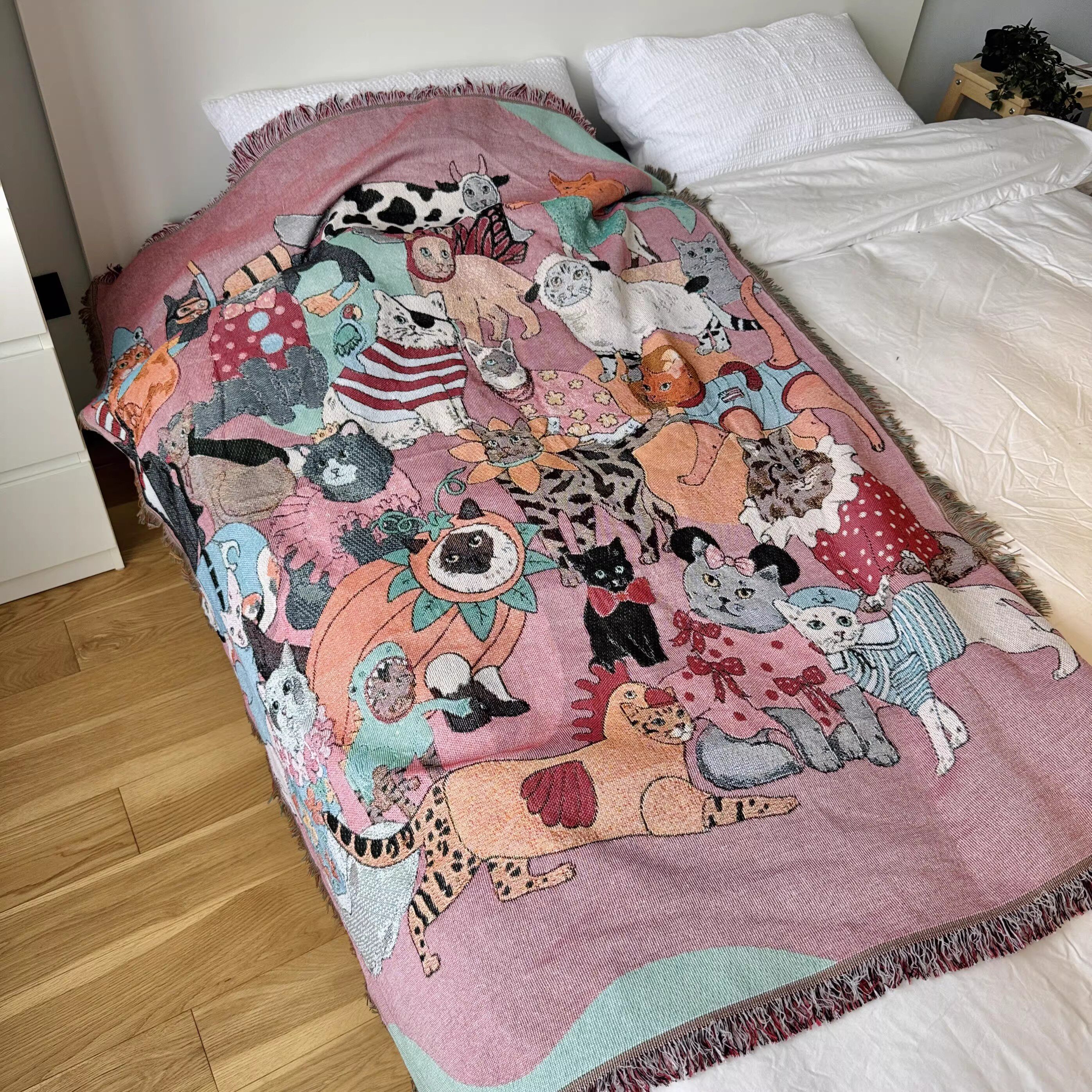 Karenmabon英國原單復古中古風毯掛毯粉色貓咪沙發裝飾毯