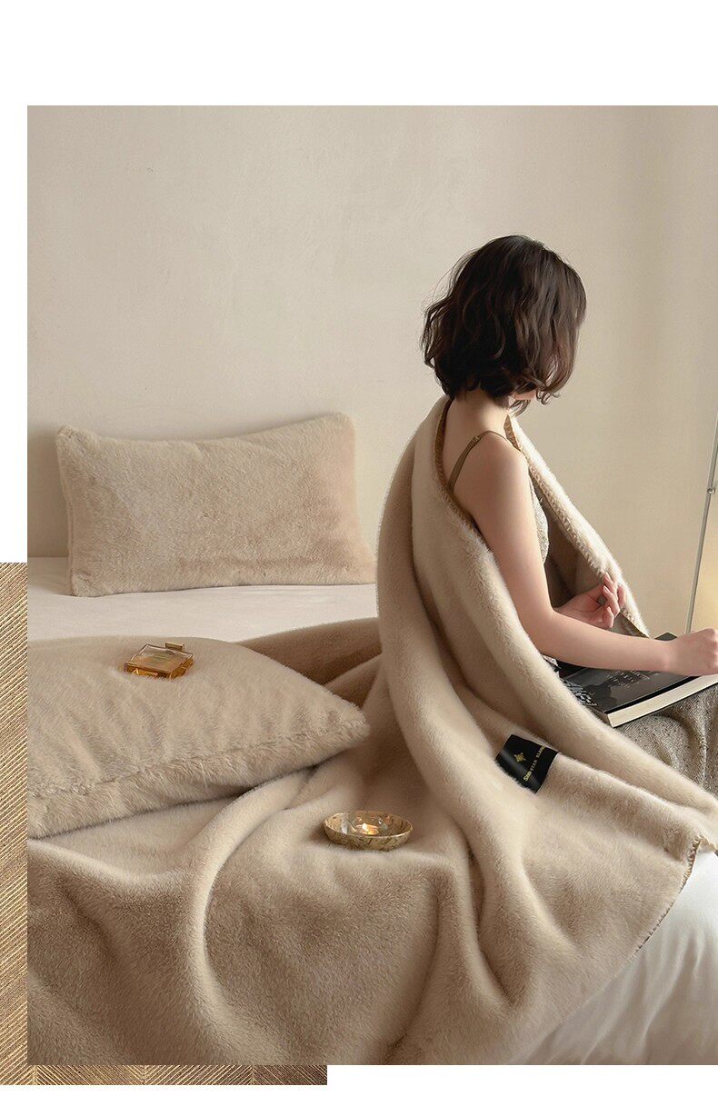 輕奢水貂兔絨毛毯冬季加厚2025新款高級氛圍感沙發毯子床上用蓋毯