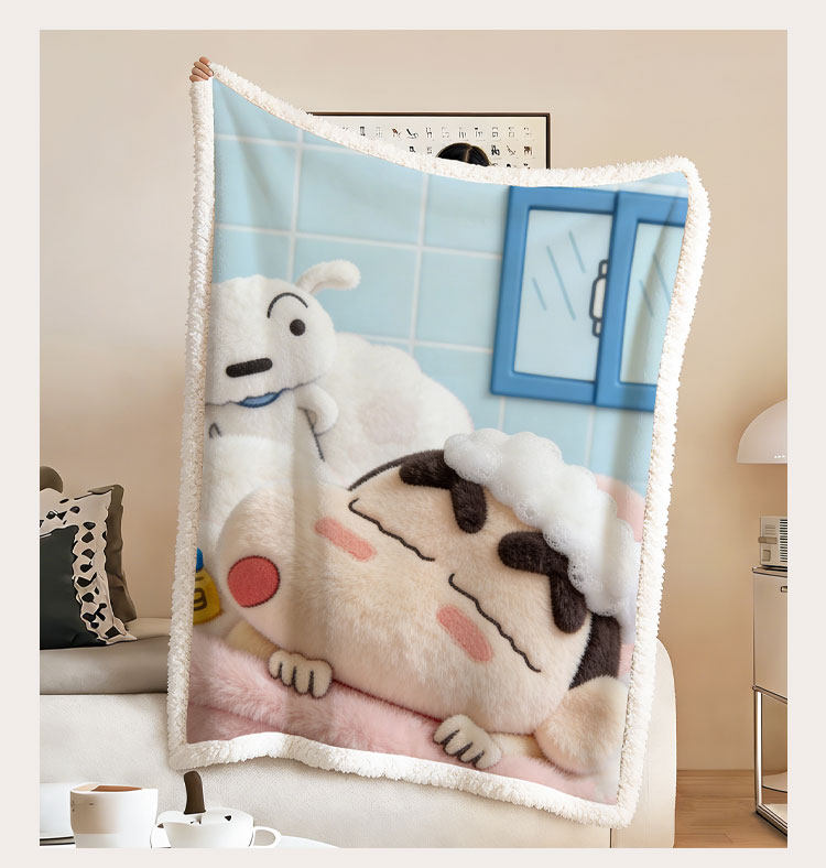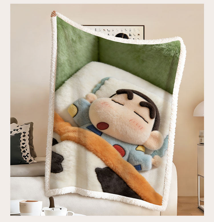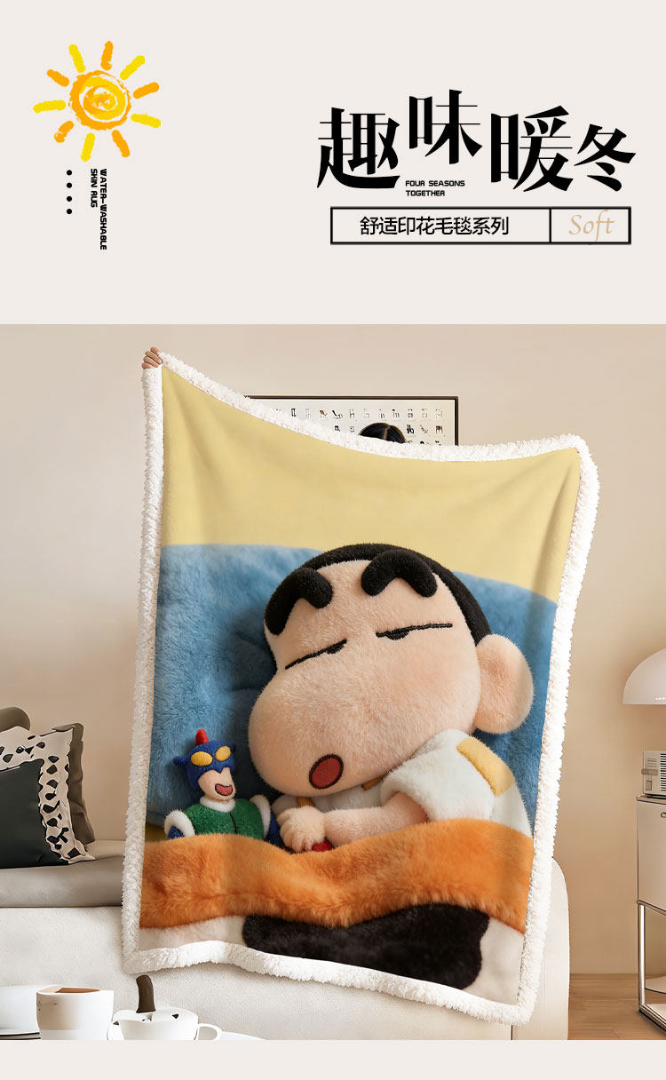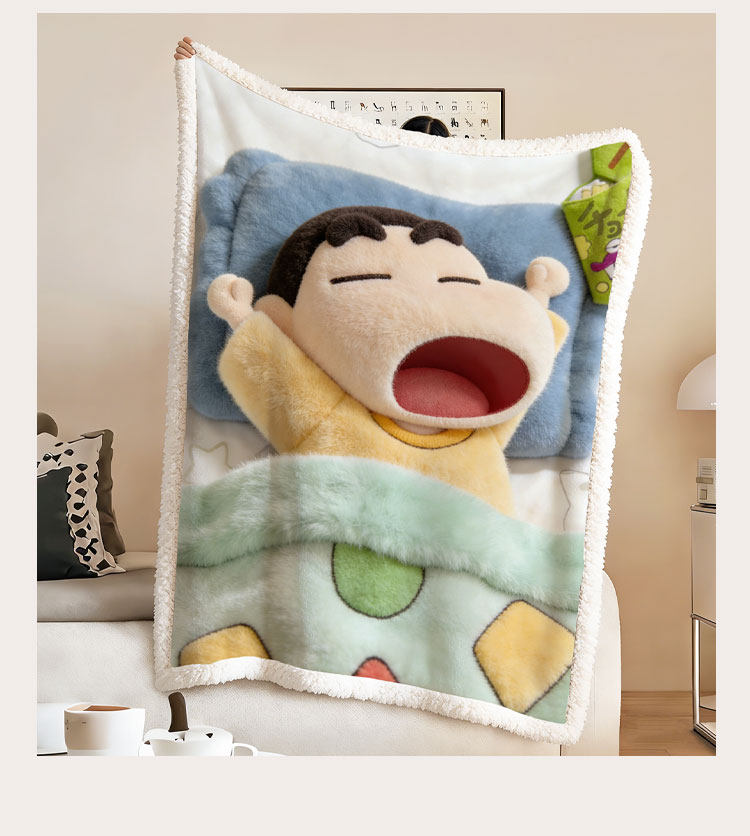 蠟筆小新3D立體視覺水晶絨毛毯卡通辦公室午睡毯幼兒園保暖蓋毯