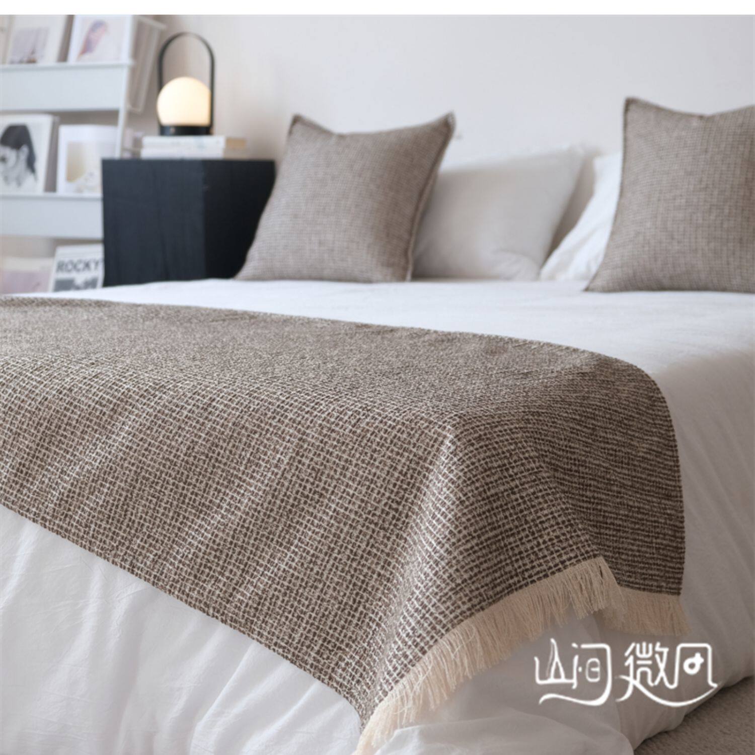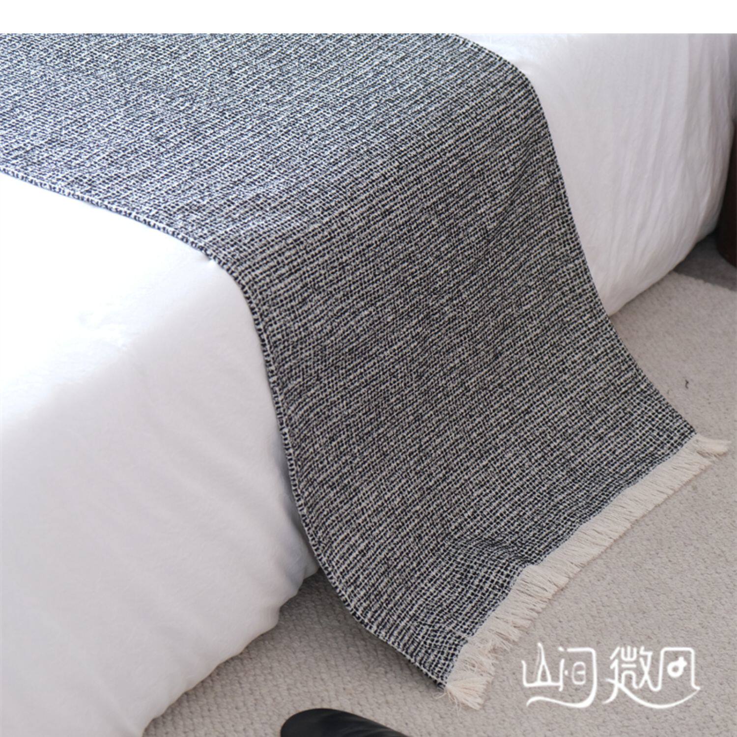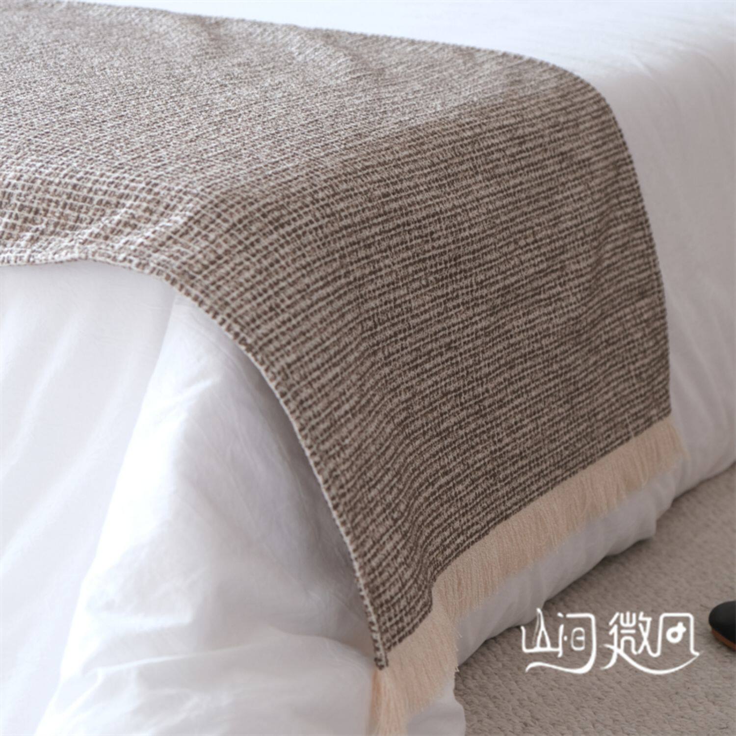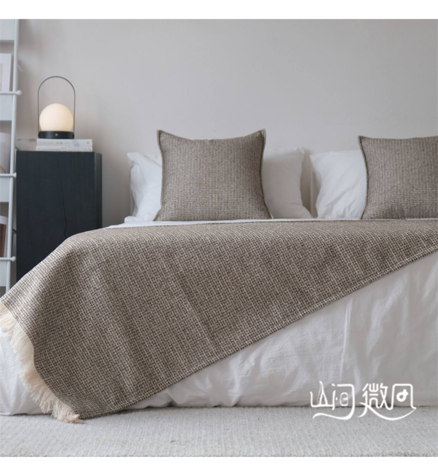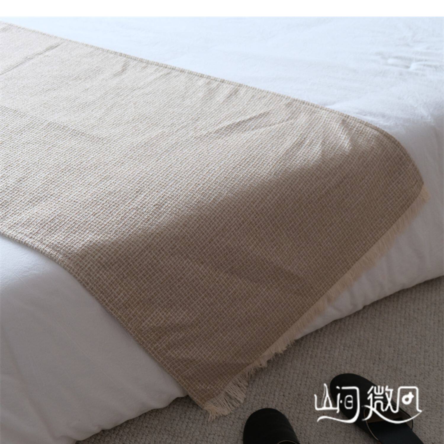 床尾毯咖色侘寂風中古風床尾巾搭毯搭巾新中式民宿酒店樣板間床旗