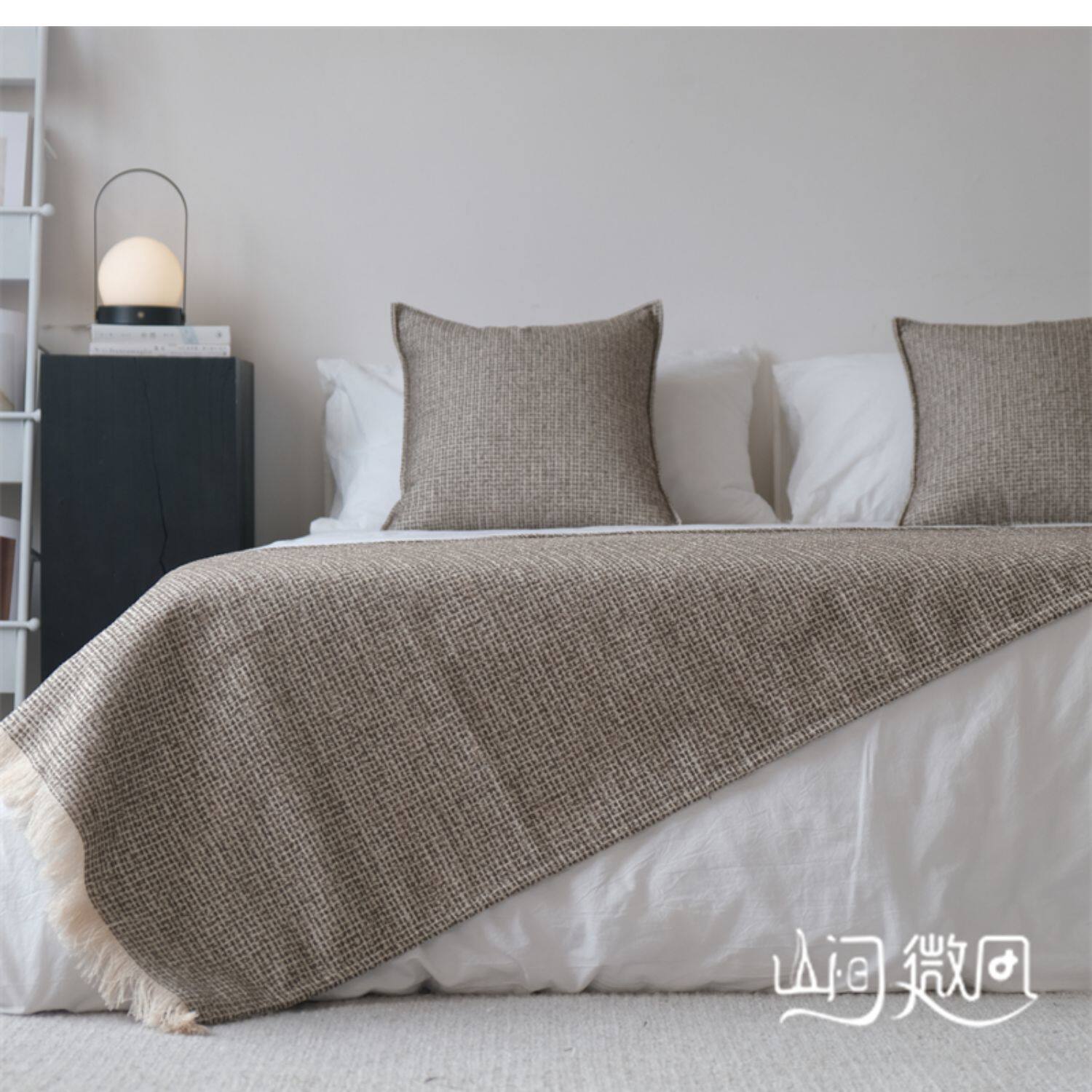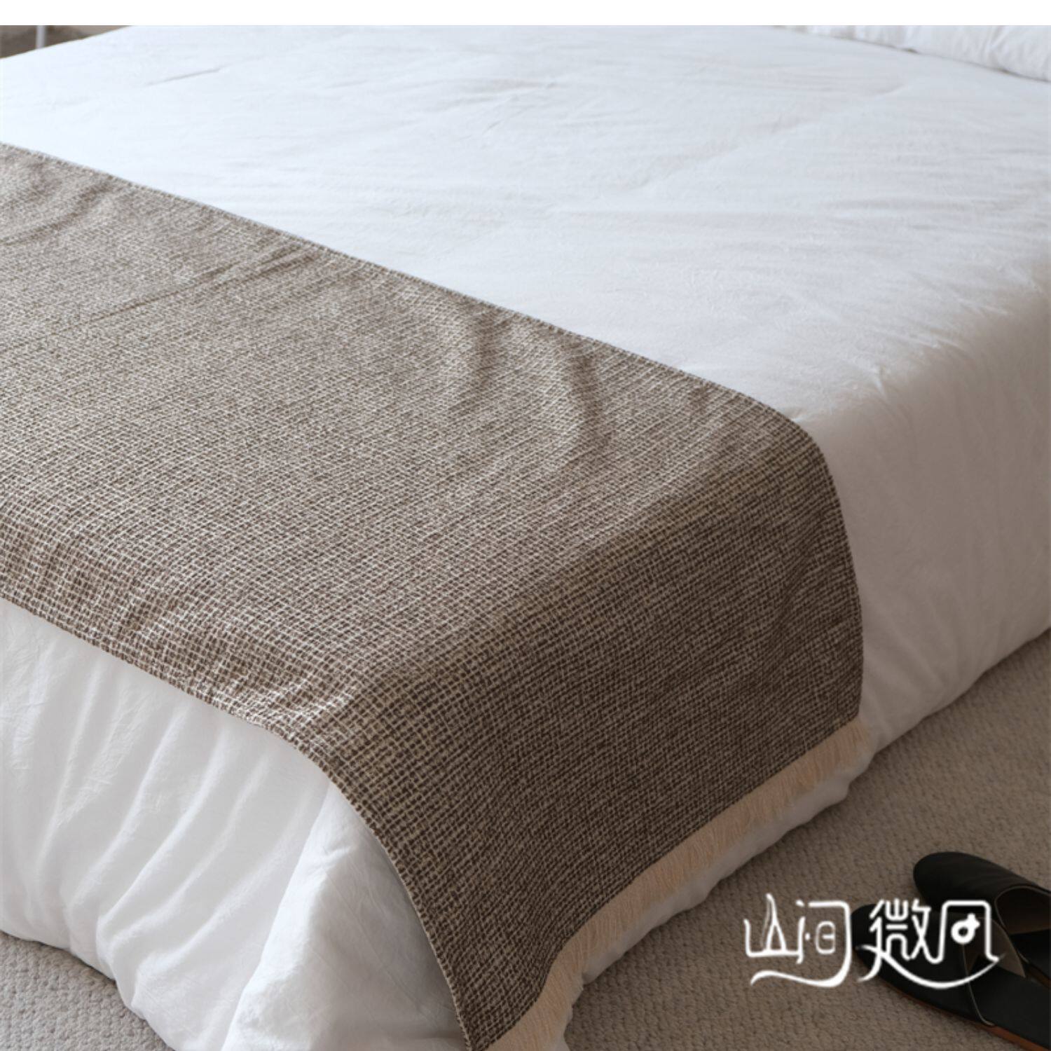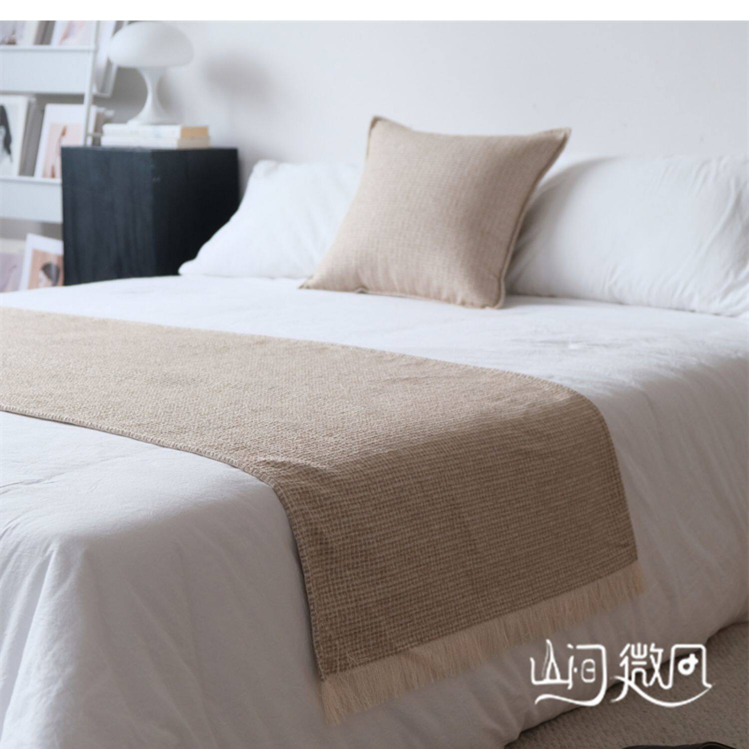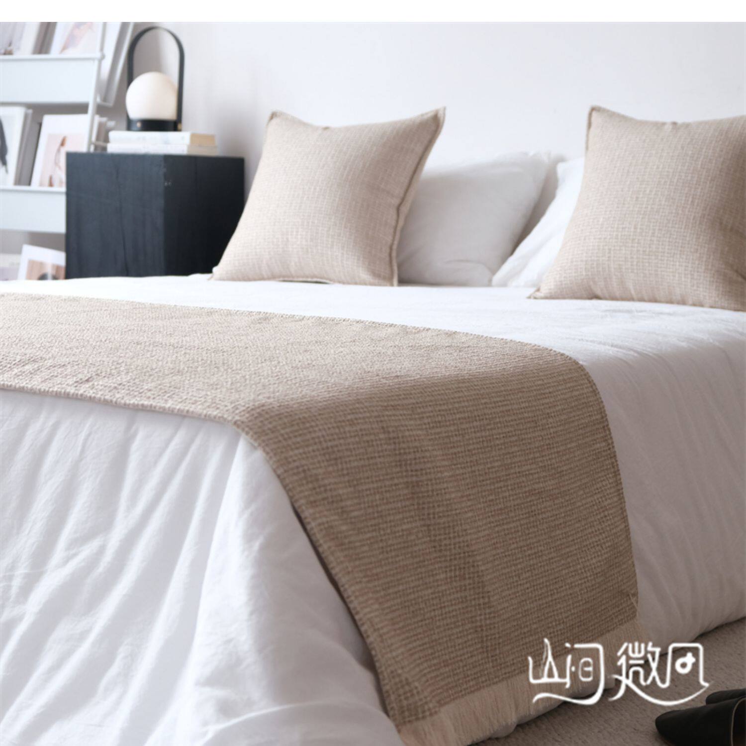 床尾毯咖色侘寂風中古風床尾巾搭毯搭巾新中式民宿酒店樣板間床旗