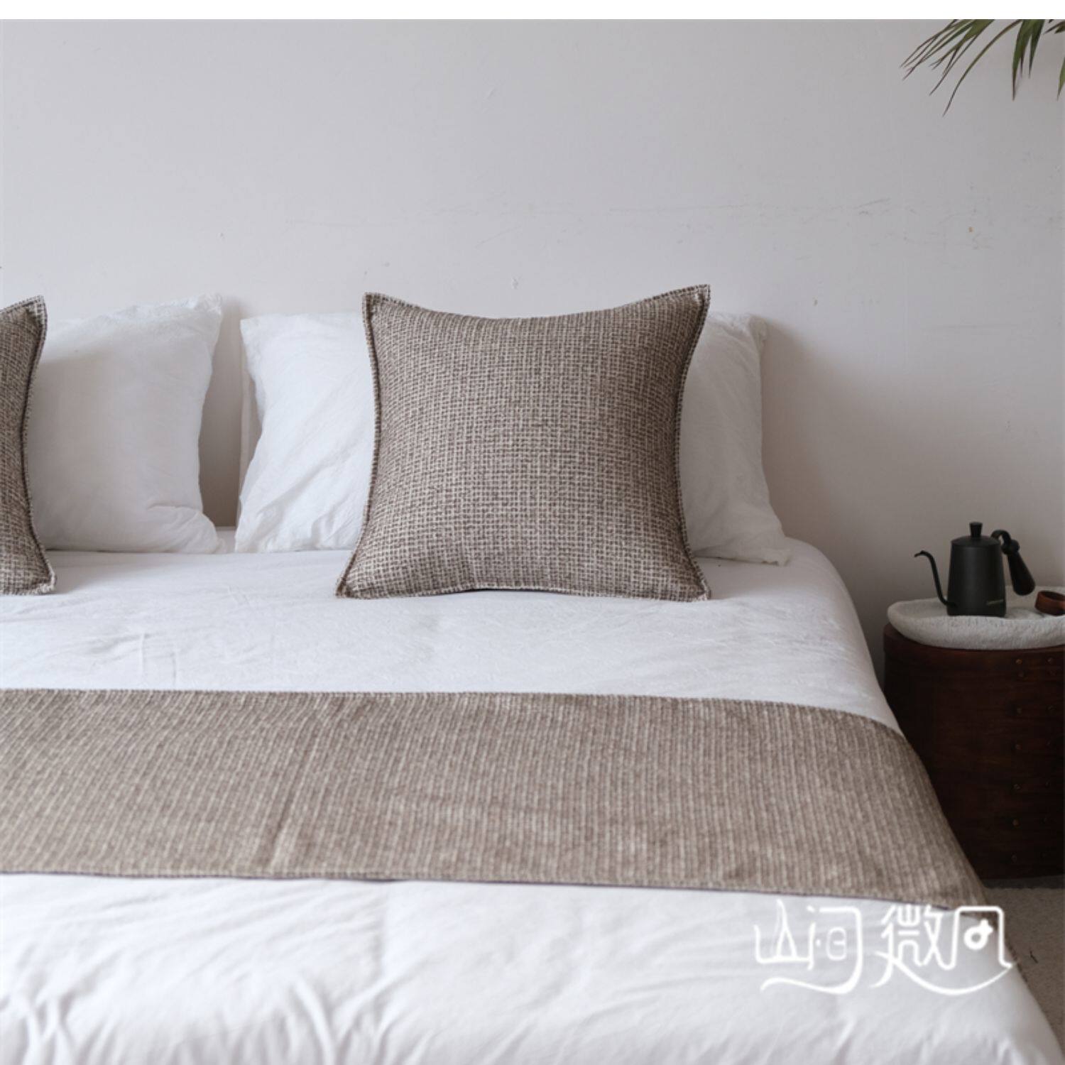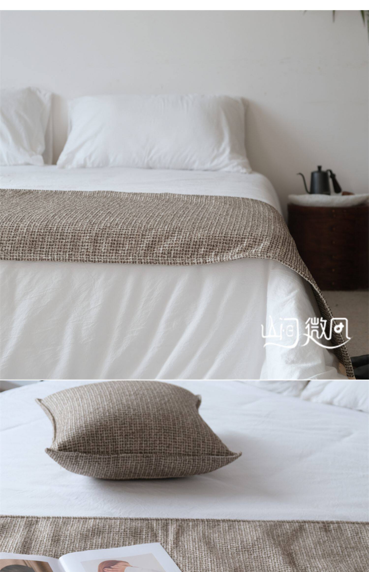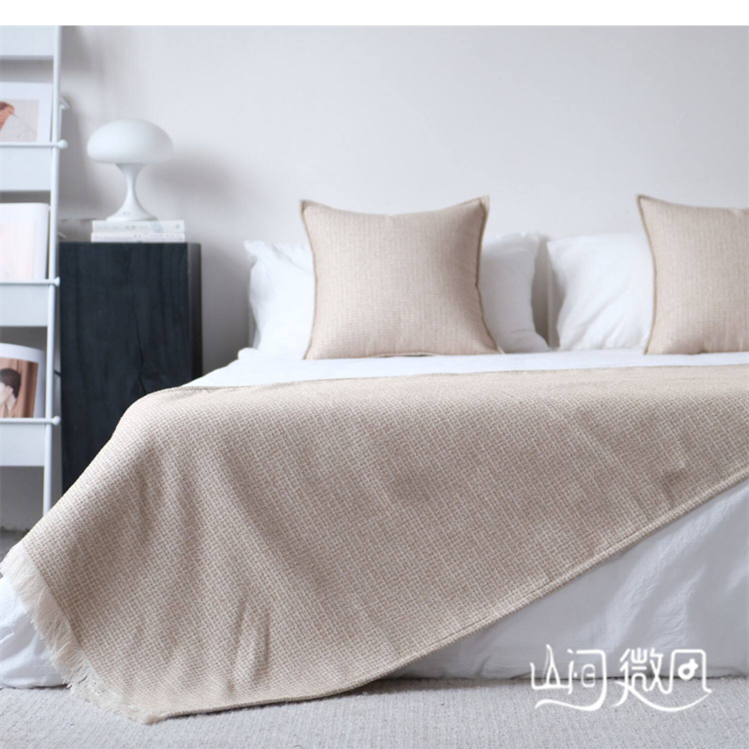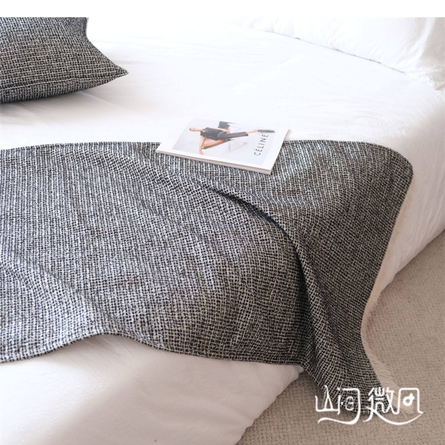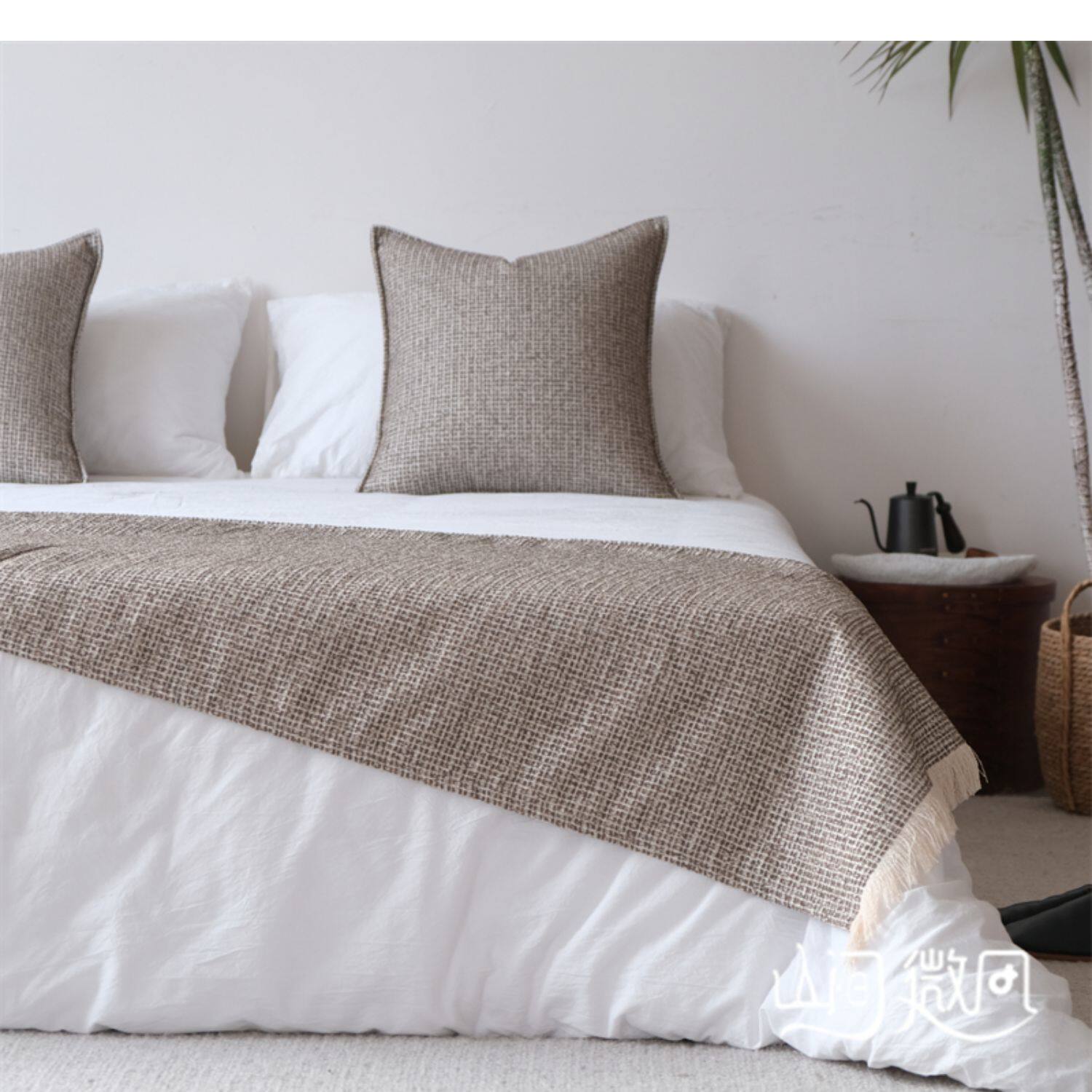 床尾毯咖色侘寂風中古風床尾巾搭毯搭巾新中式民宿酒店樣板間床旗