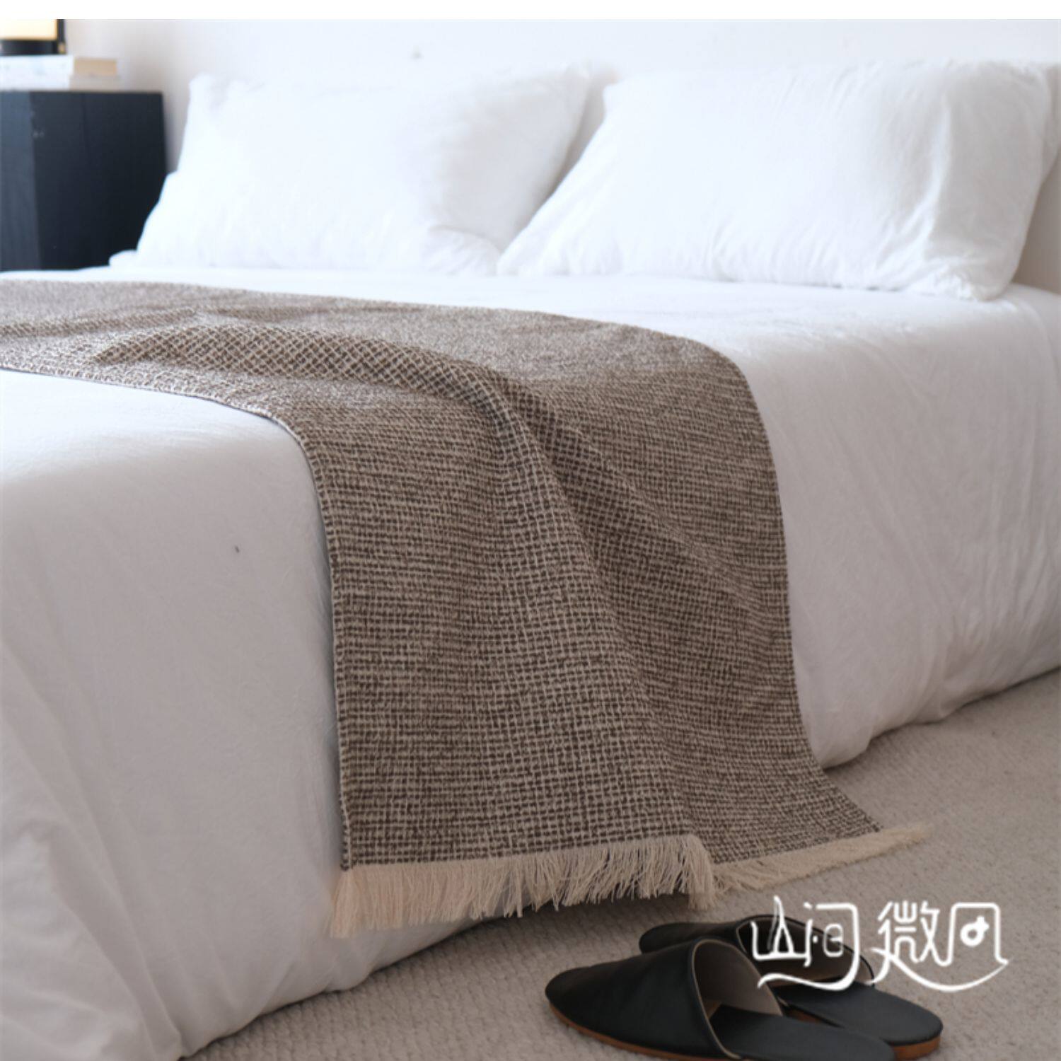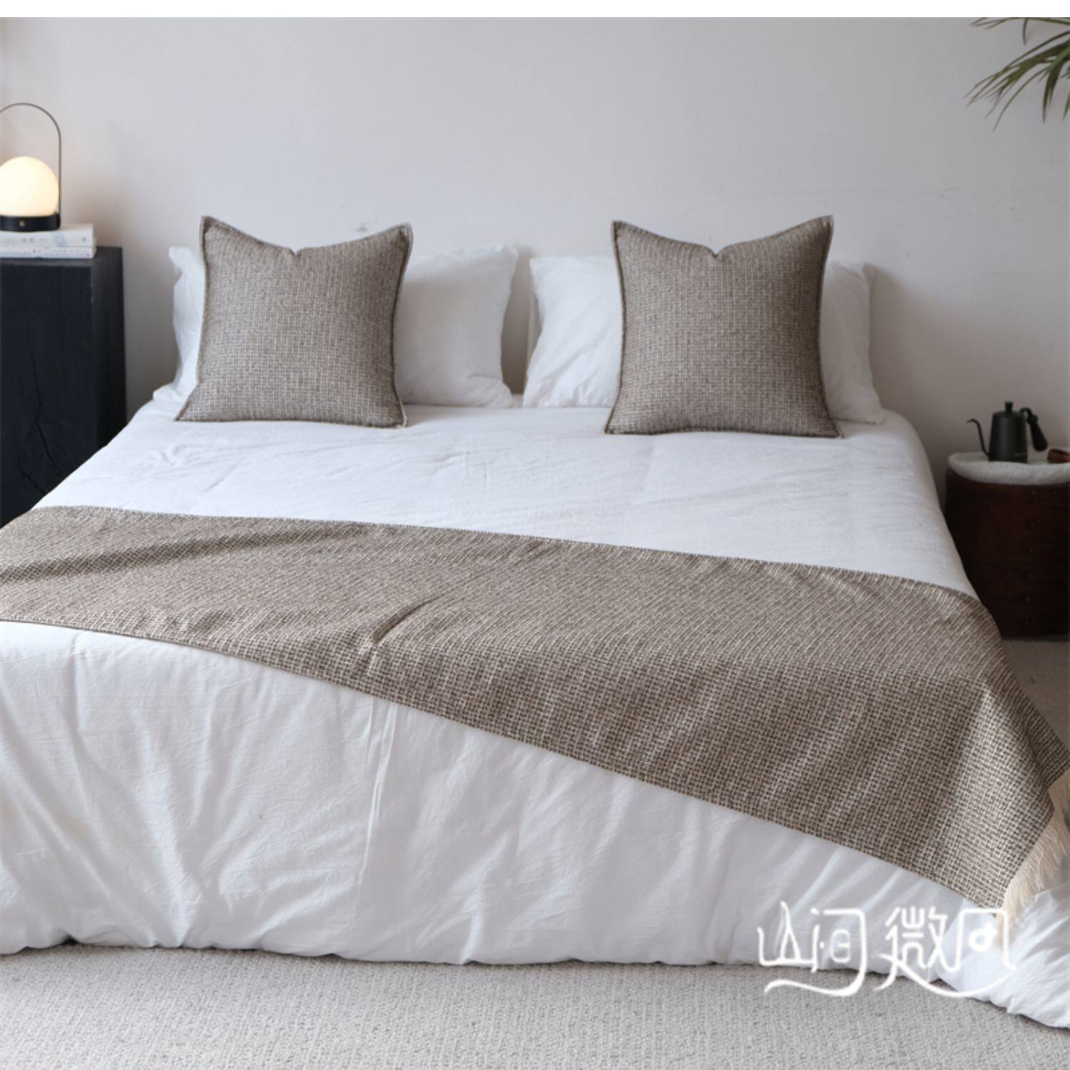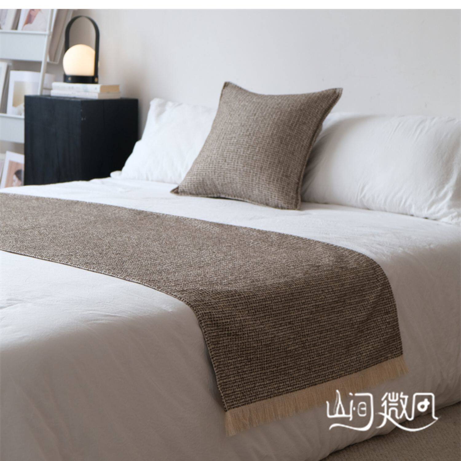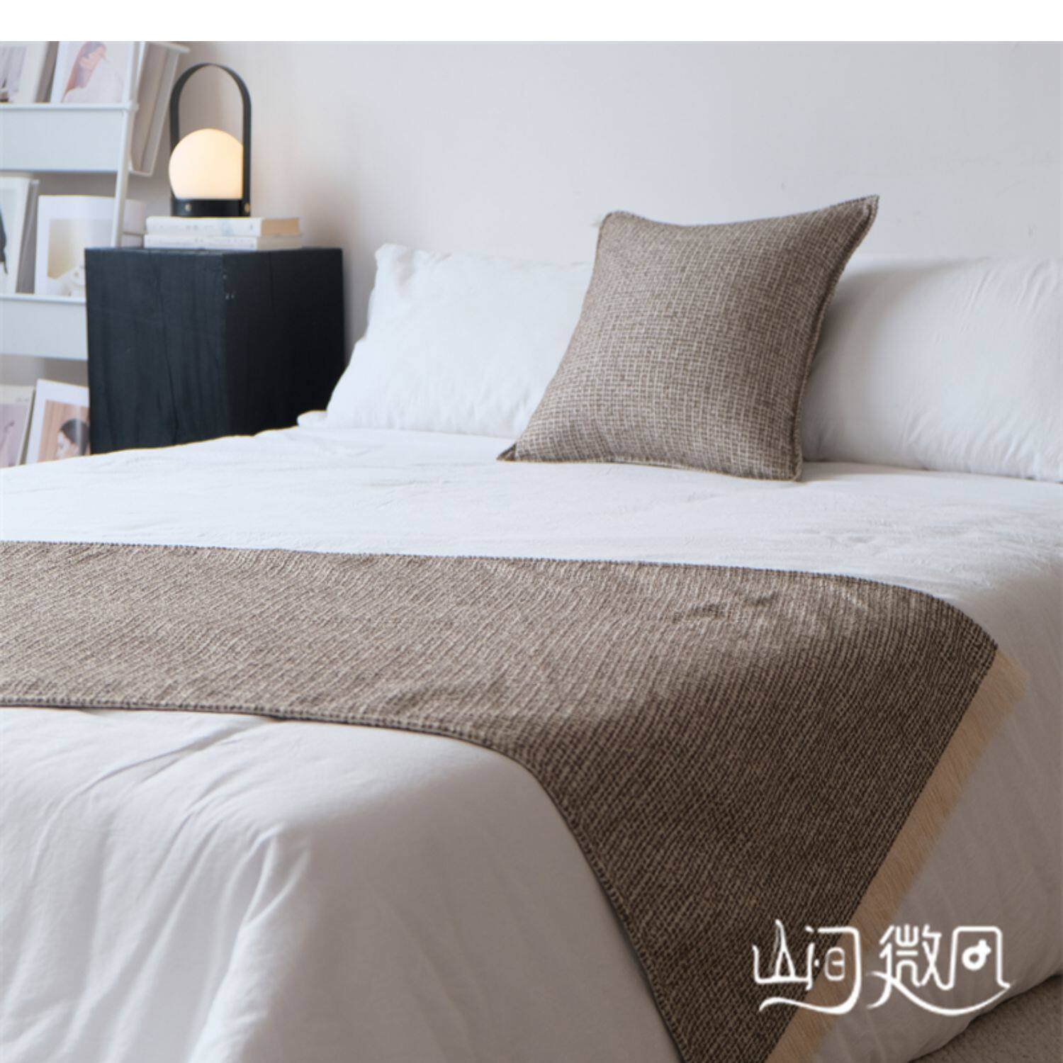 床尾毯咖色侘寂風中古風床尾巾搭毯搭巾新中式民宿酒店樣板間床旗